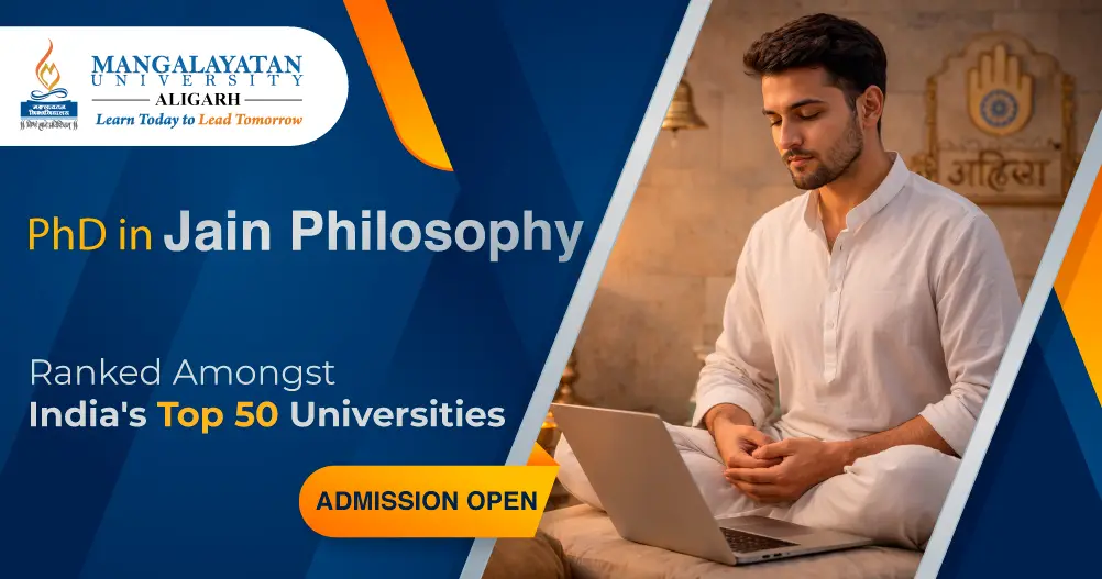 A PhD in Jain Philosophy Admission 2026 at Mangalayatan University is for candidates who have a strong academic background and intend to conduct research about the spiritual and intellectual traditions of the Jains. This doctoral program provides insights into classical Jain texts, doctrines, metaphysics, epistemology, and Jain cosmology.