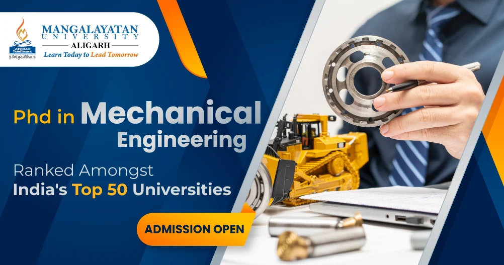 Mangalayatan University Aligarh is the best PhD in Mechanical Engineering College in Aligarh, Uttar Pradesh, which provides excellent instruction, knowledgeable faculty, and cutting-edge labs. With a thorough curriculum centred on practical applications, it equips students for fulfilling careers. The university, the top-ranking Doctorate in Mechanical Engineering admission Institute in Aligarh, India, encourages creativity, research, and hands-on learning to prepare its graduates for the workforce.