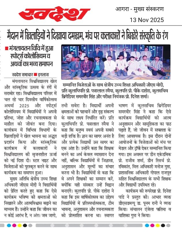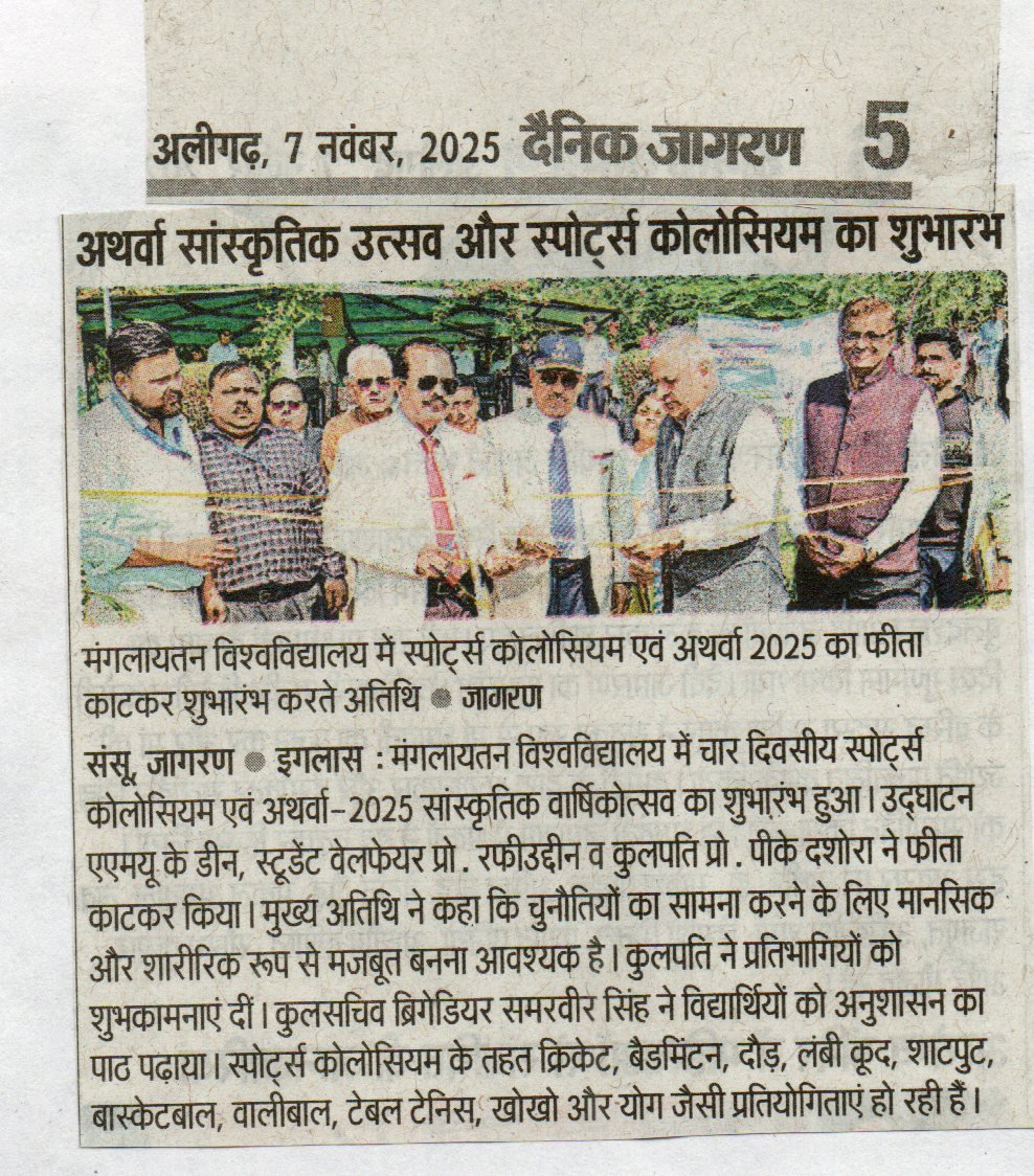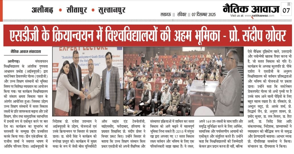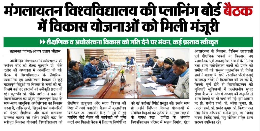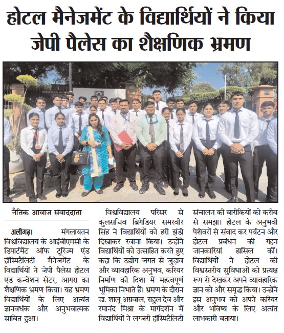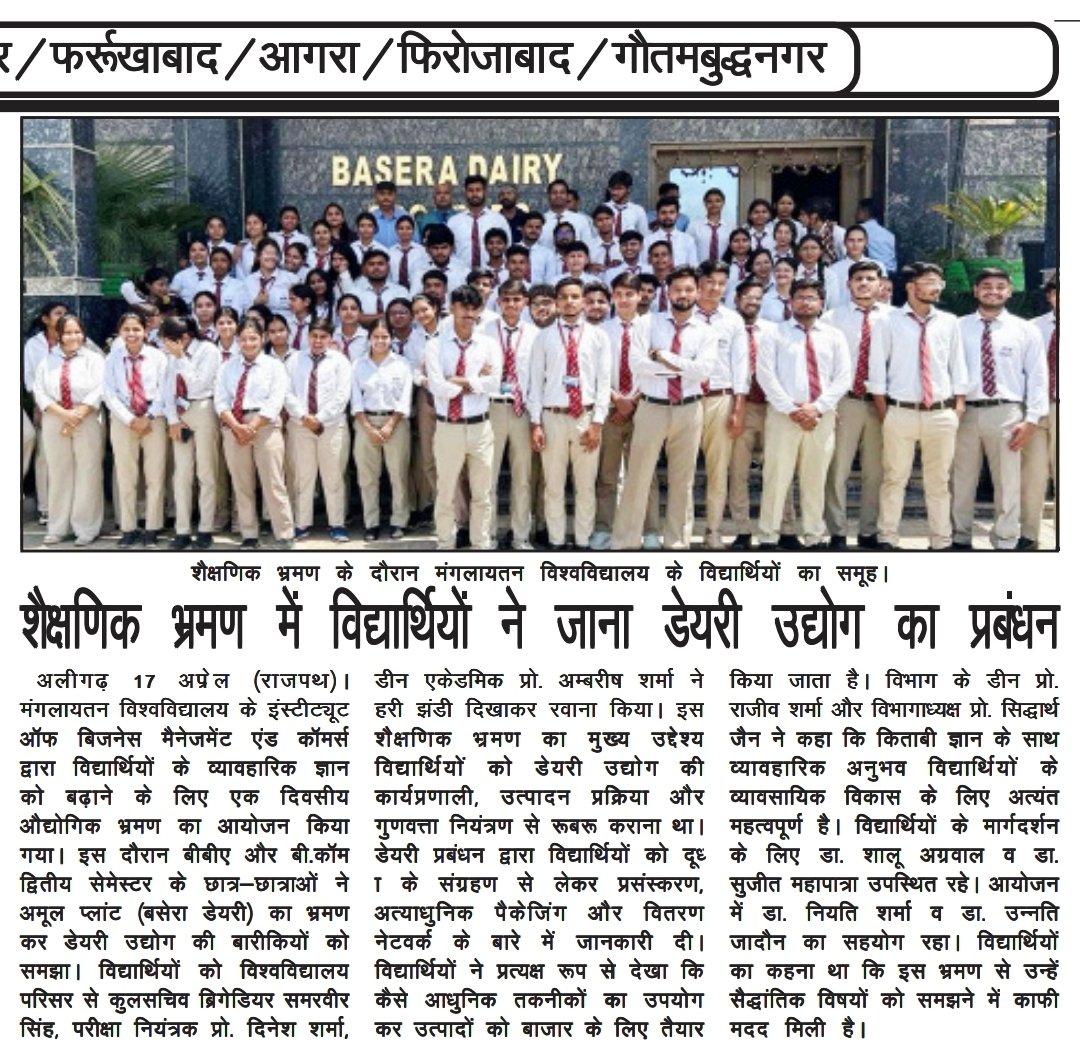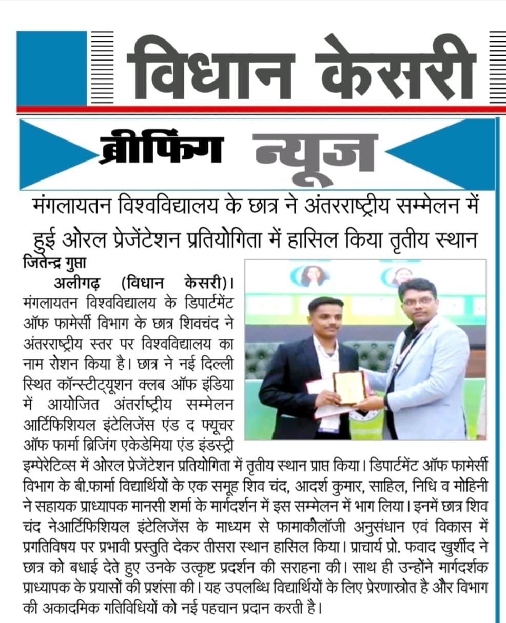 Mangalayatan University garnered significant attention in media with a feature highlighting departmental programs, community initiatives and activities. The article praised the university's commitment to academic excellence and its role in empowering academic units and their students through various skill development workshops and internships. Notably, the piece discussed the institution's efforts in promoting sustainable practices on campus, including eco-friendly initiatives that resonate with the university's mission to foster responsible citizens.This press clipping not only reflects the university's achievements but also its dedication to creating a vibrant learning environment, positioning Mangalayatan University as a cornerstone of educational development in the region. The coverage has sparked interest among prospective students and parents alike.