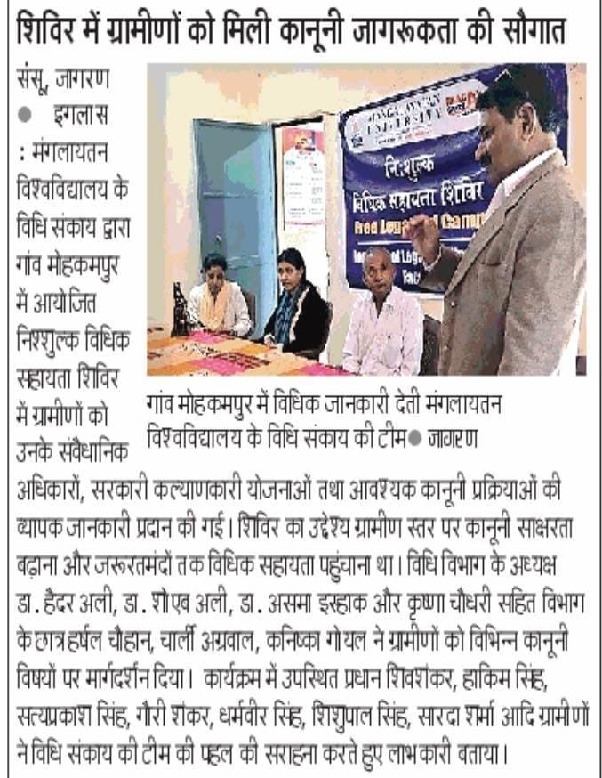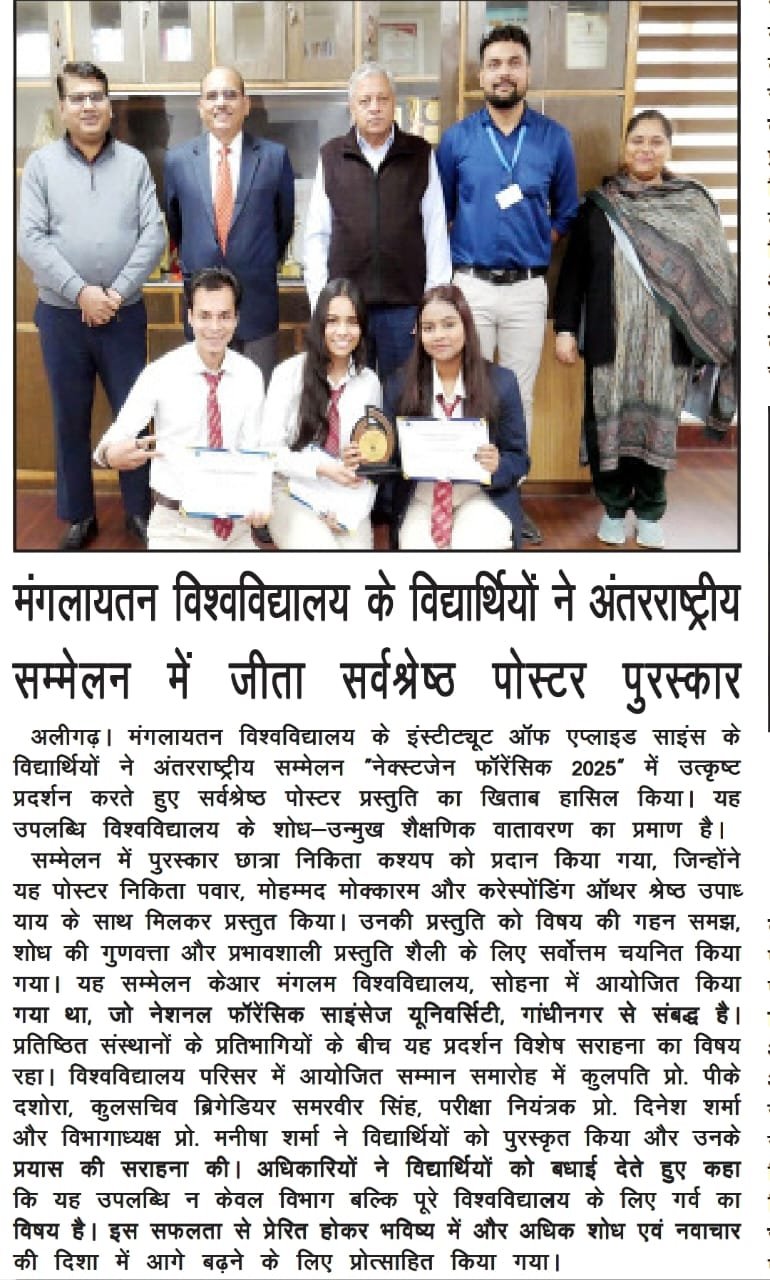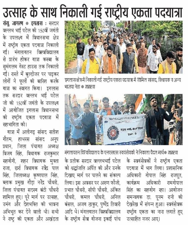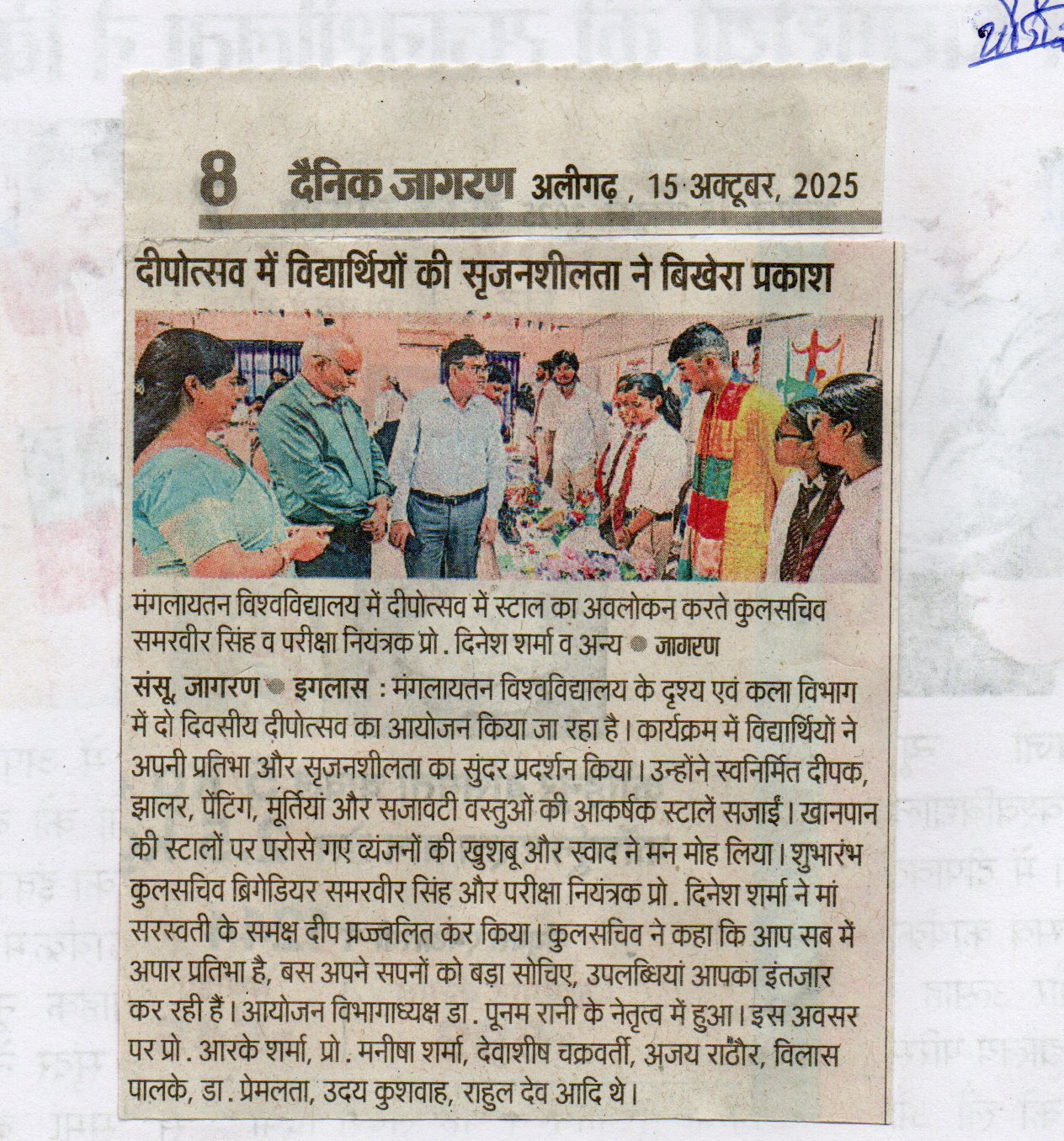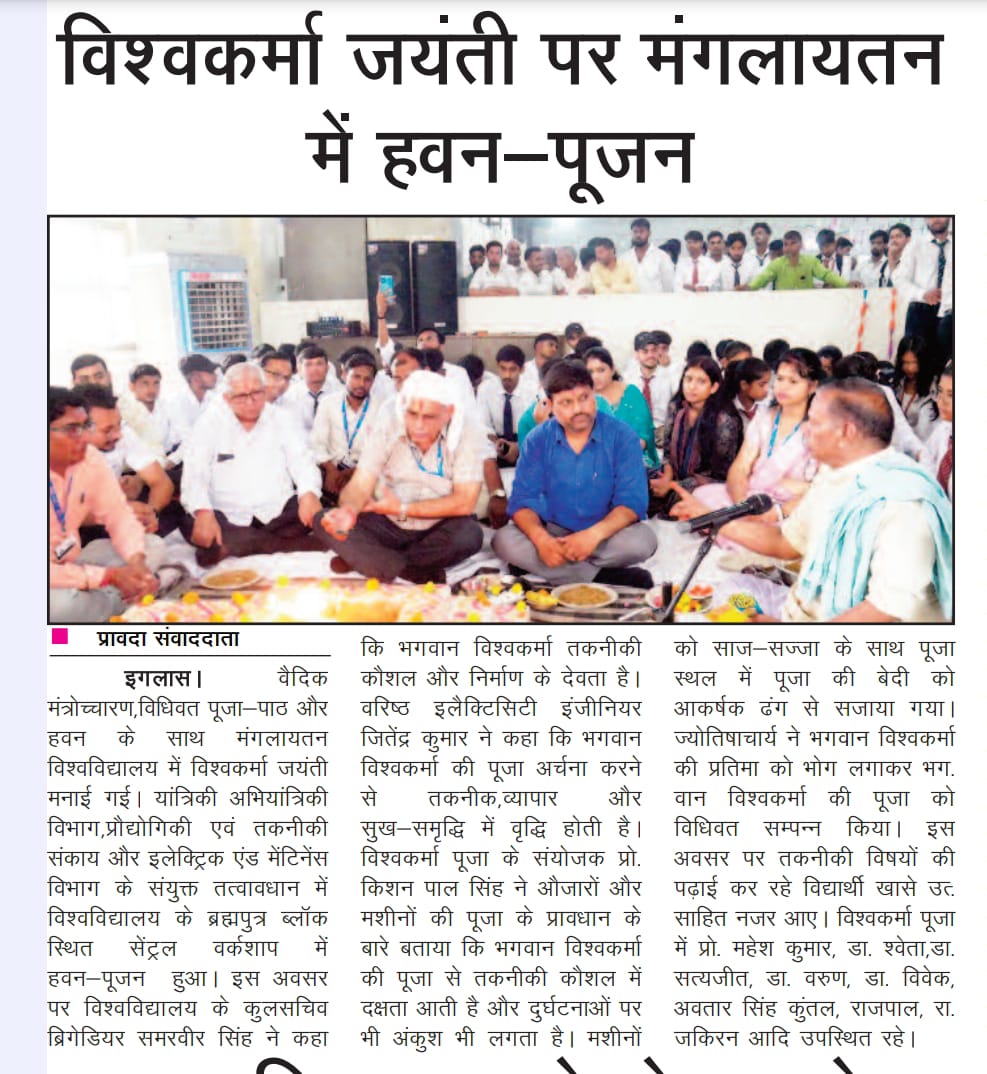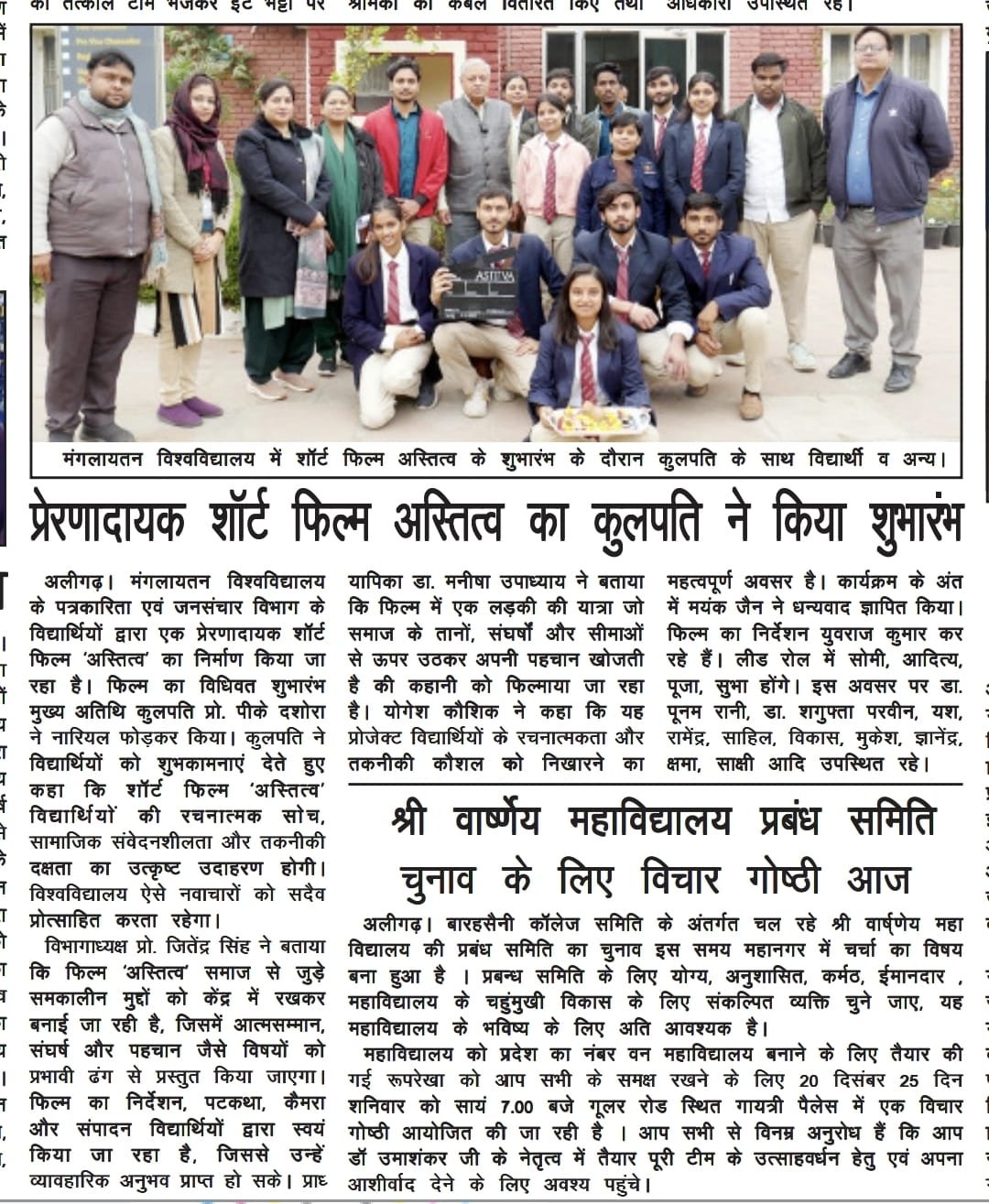 Mangalayatan University garnered significant attention in media with a feature highlighting departmental programs, community initiatives and activities. The article praised the university's commitment to academic excellence and its role in empowering academic units and their students through various skill development workshops and internships. Notably, the piece discussed the institution's efforts in promoting sustainable practices on campus, including eco-friendly initiatives that resonate with the university's mission to foster responsible citizens.This press clipping not only reflects the university's achievements but also its dedication to creating a vibrant learning environment, positioning Mangalayatan University as a cornerstone of educational development in the region. The coverage has sparked interest among prospective students and parents alike.