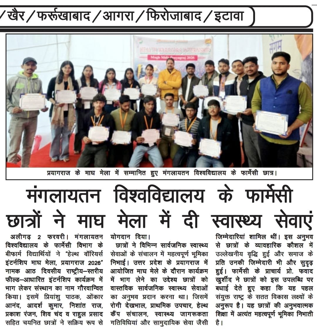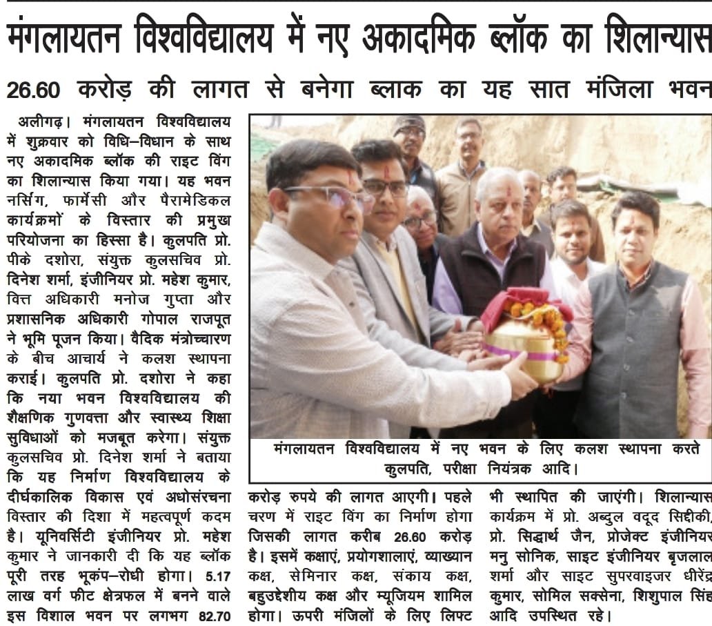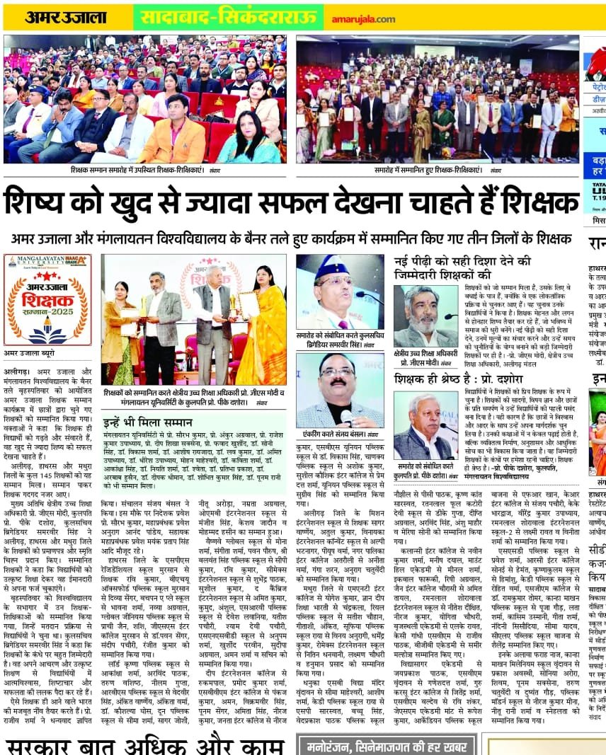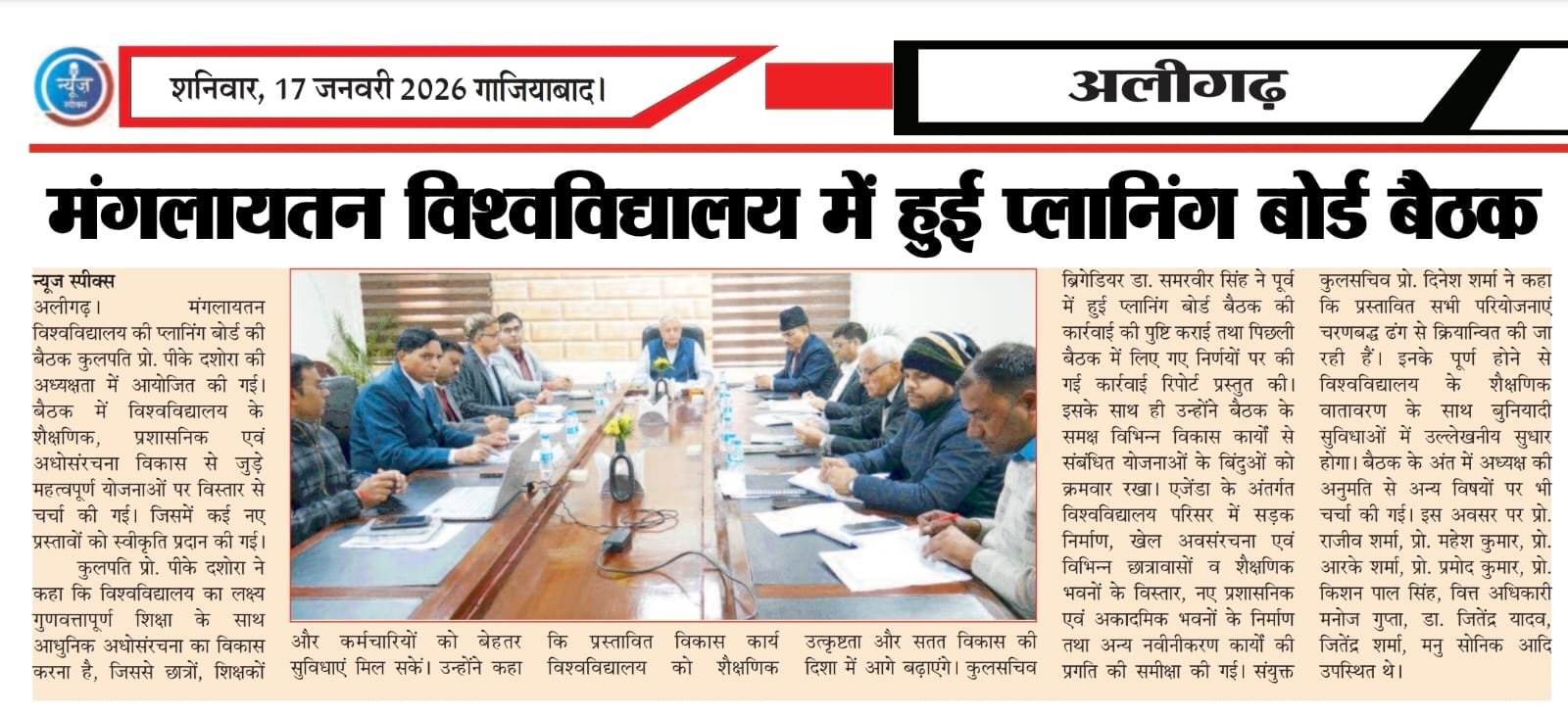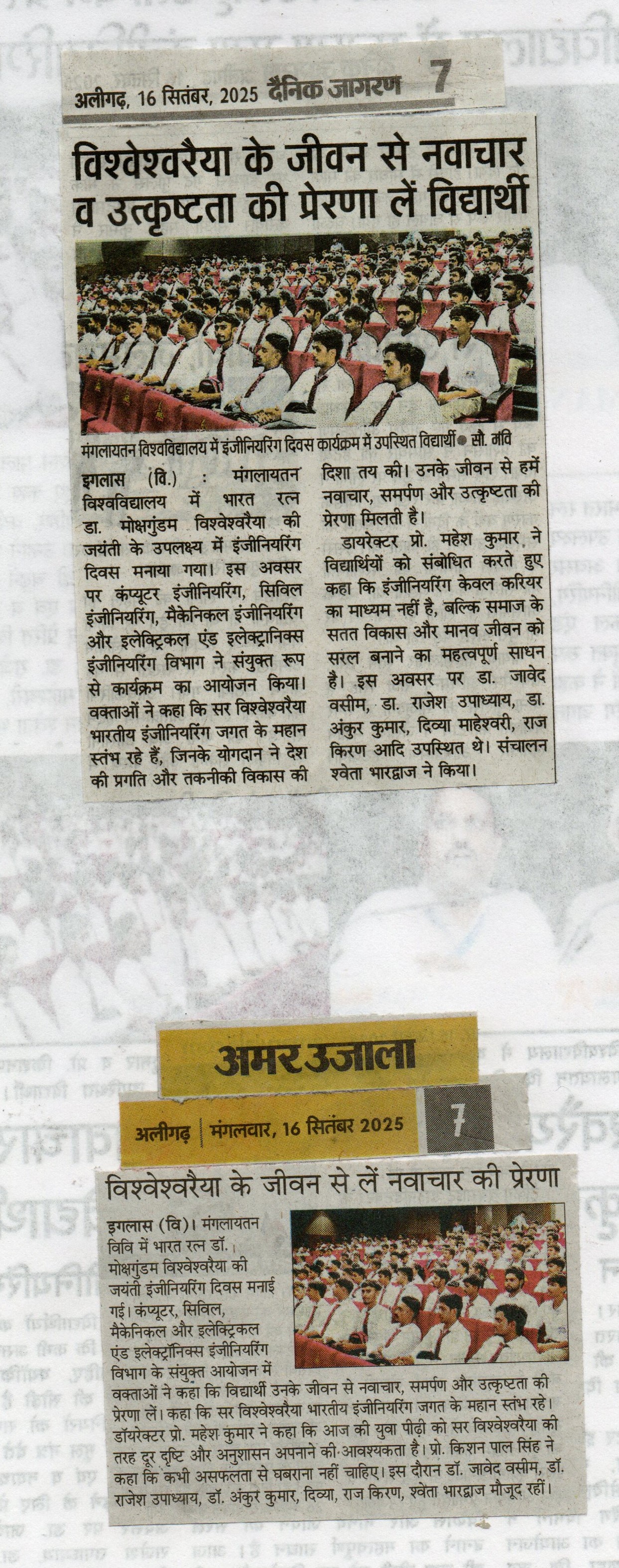 Mangalayatan University garnered significant attention in media with a feature highlighting departmental programs, community initiatives and activities. The article praised the university's commitment to academic excellence and its role in empowering academic units and their students through various skill development workshops and internships. Notably, the piece discussed the institution's efforts in promoting sustainable practices on campus, including eco-friendly initiatives that resonate with the university's mission to foster responsible citizens.This press clipping not only reflects the university's achievements but also its dedication to creating a vibrant learning environment, positioning Mangalayatan University as a cornerstone of educational development in the region. The coverage has sparked interest among prospective students and parents alike.