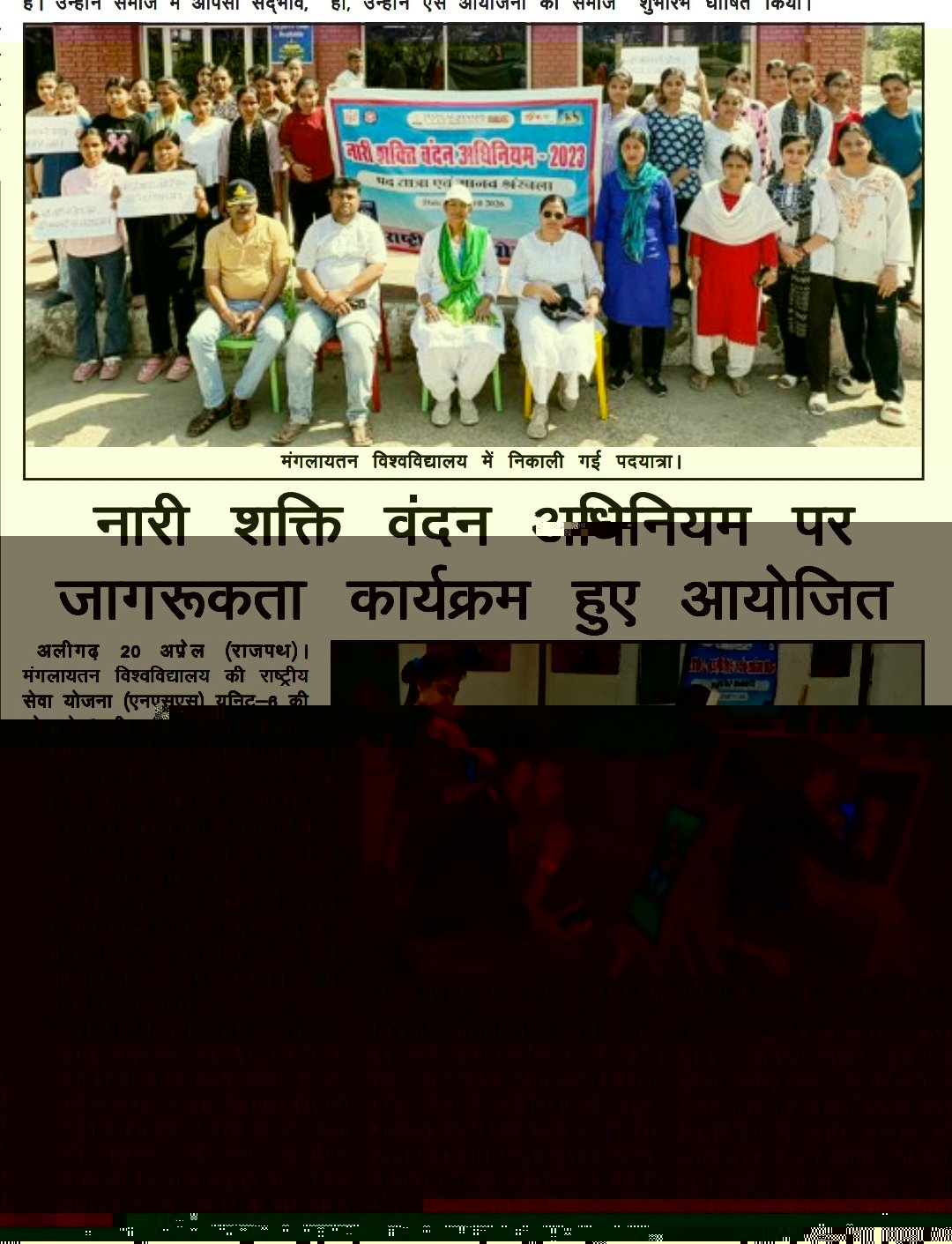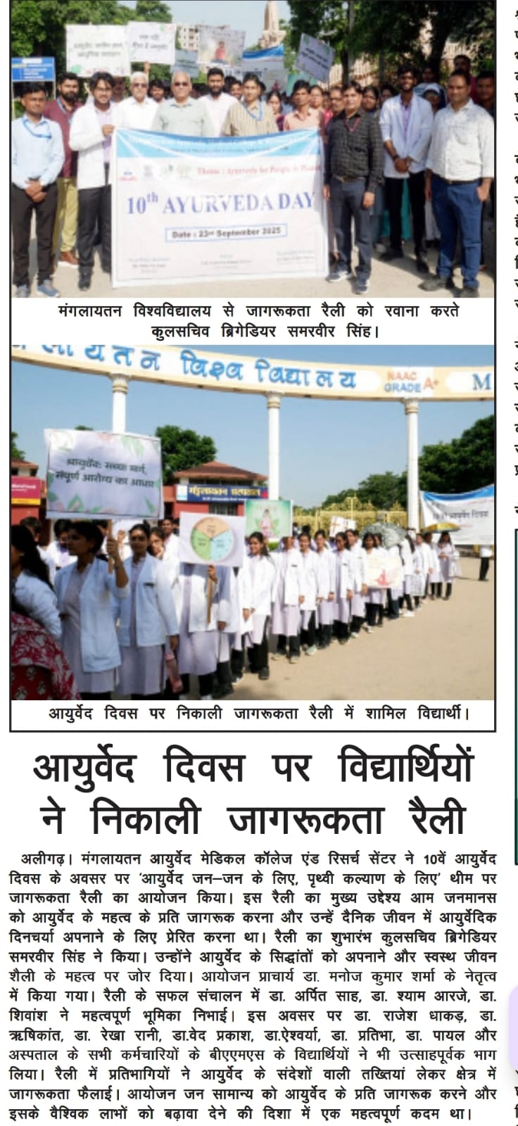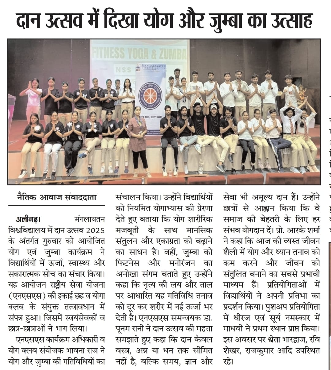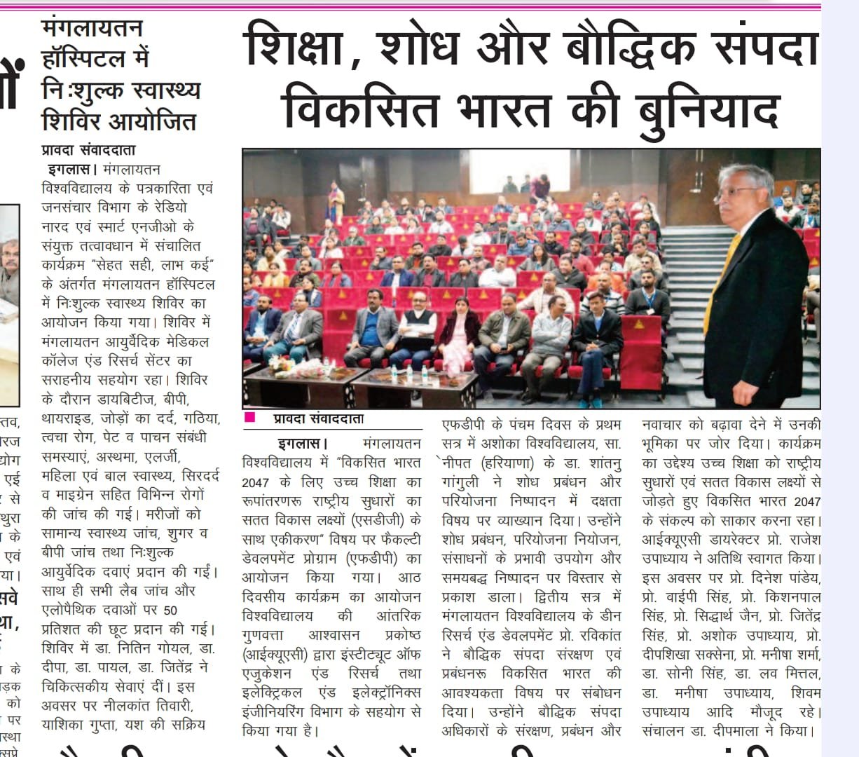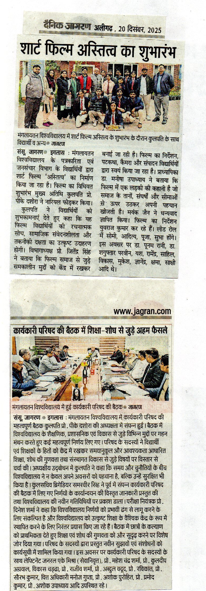 Mangalayatan University garnered significant attention in media with a feature highlighting departmental programs, community initiatives and activities. The article praised the university's commitment to academic excellence and its role in empowering academic units and their students through various skill development workshops and internships. Notably, the piece discussed the institution's efforts in promoting sustainable practices on campus, including eco-friendly initiatives that resonate with the university's mission to foster responsible citizens.This press clipping not only reflects the university's achievements but also its dedication to creating a vibrant learning environment, positioning Mangalayatan University as a cornerstone of educational development in the region. The coverage has sparked interest among prospective students and parents alike.