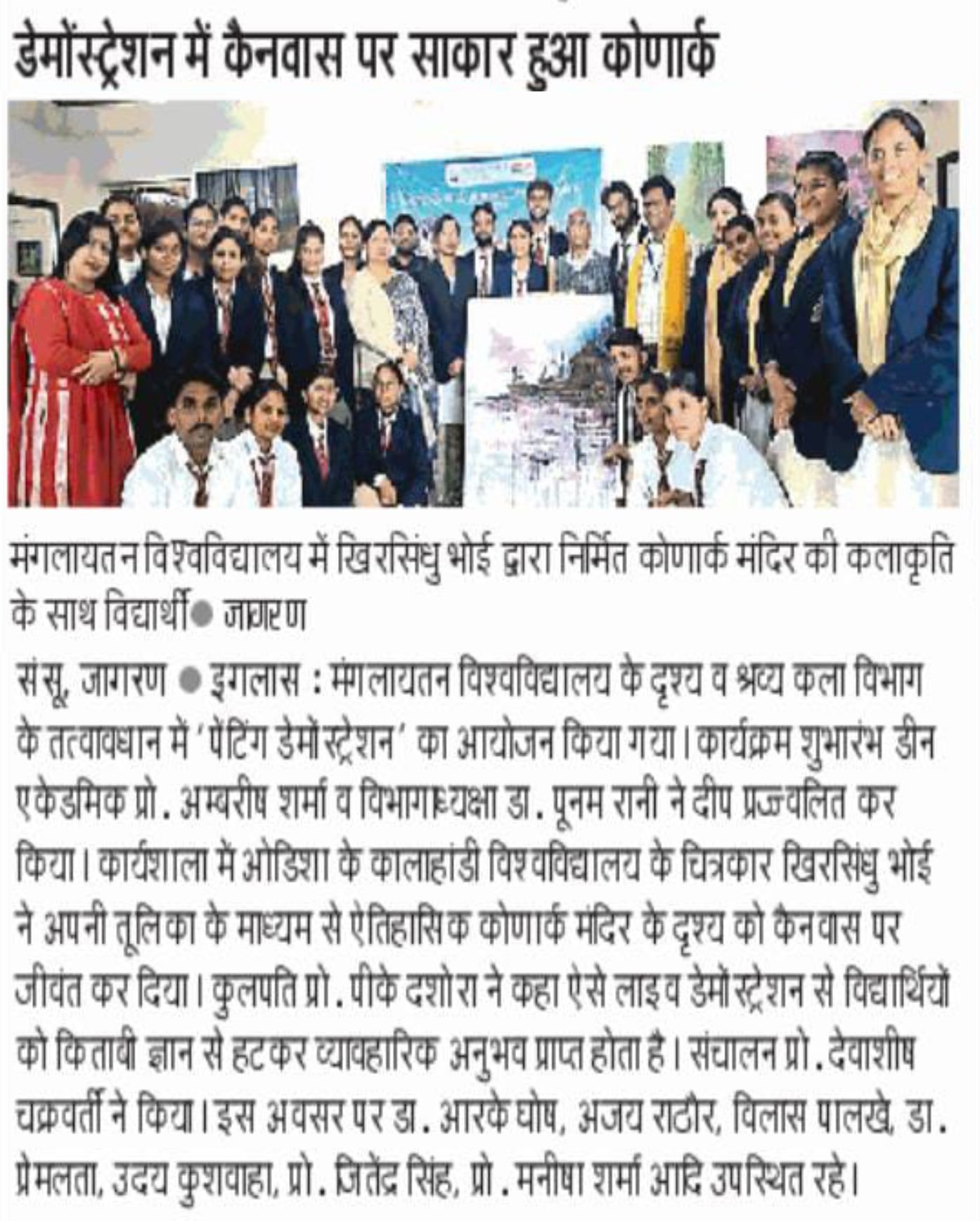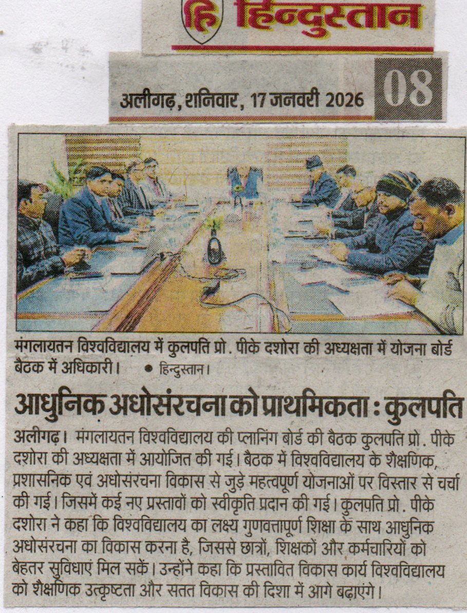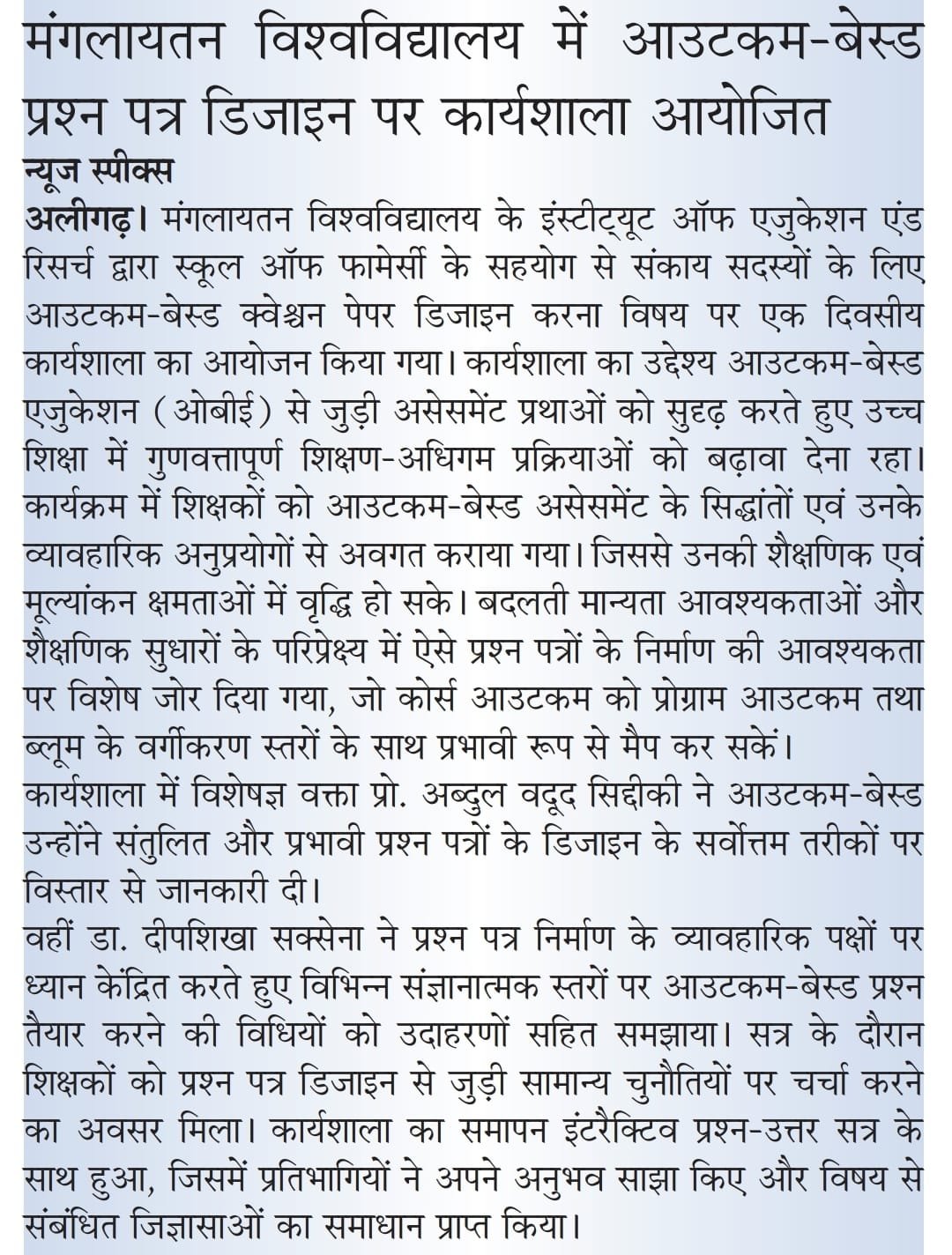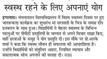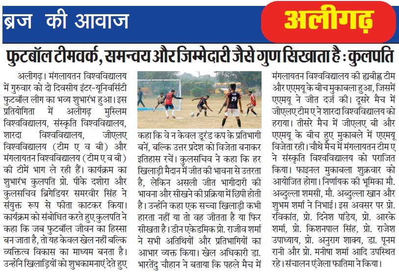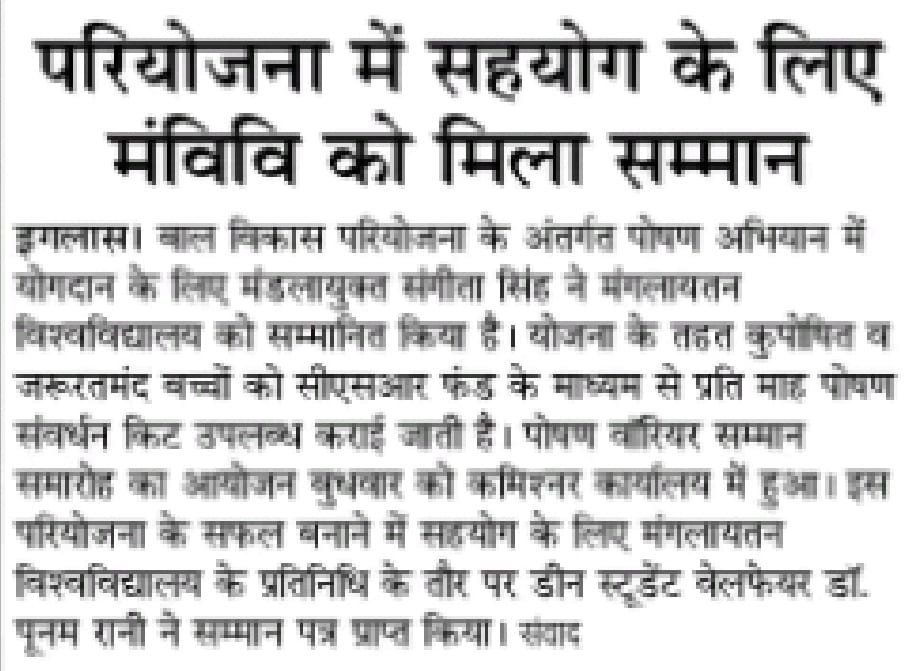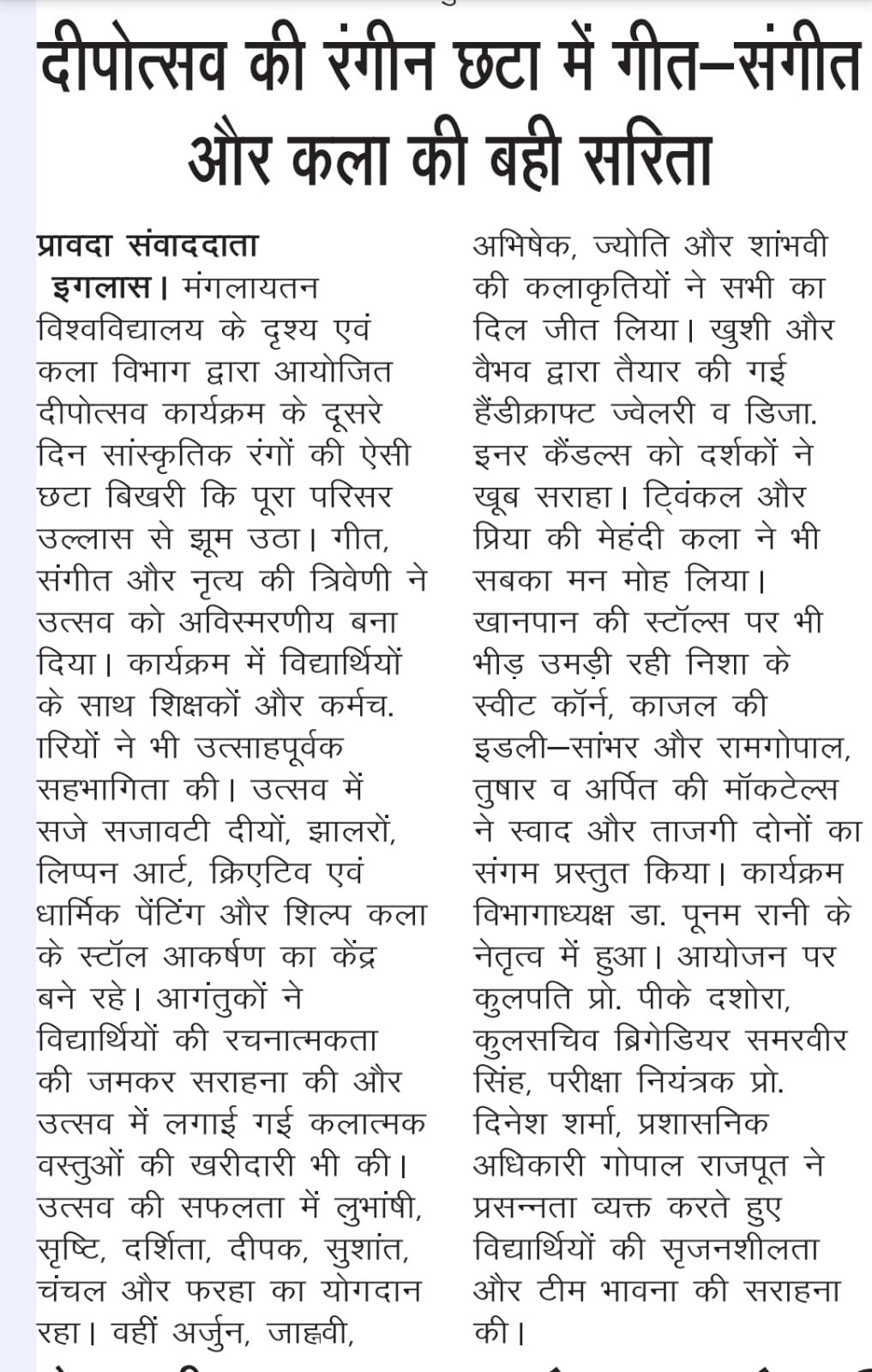 Mangalayatan University garnered significant attention in media with a feature highlighting departmental programs, community initiatives and activities. The article praised the university's commitment to academic excellence and its role in empowering academic units and their students through various skill development workshops and internships. Notably, the piece discussed the institution's efforts in promoting sustainable practices on campus, including eco-friendly initiatives that resonate with the university's mission to foster responsible citizens.This press clipping not only reflects the university's achievements but also its dedication to creating a vibrant learning environment, positioning Mangalayatan University as a cornerstone of educational development in the region. The coverage has sparked interest among prospective students and parents alike.