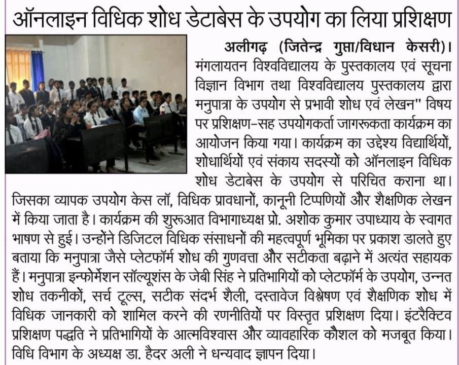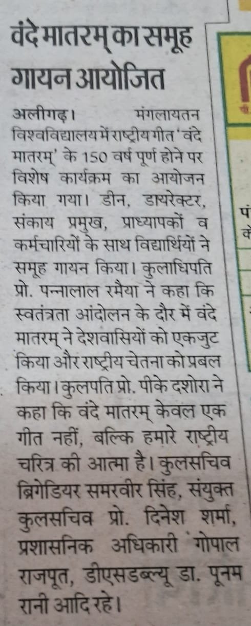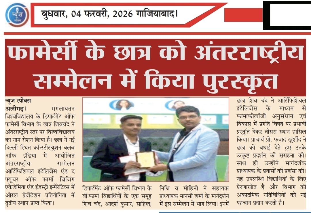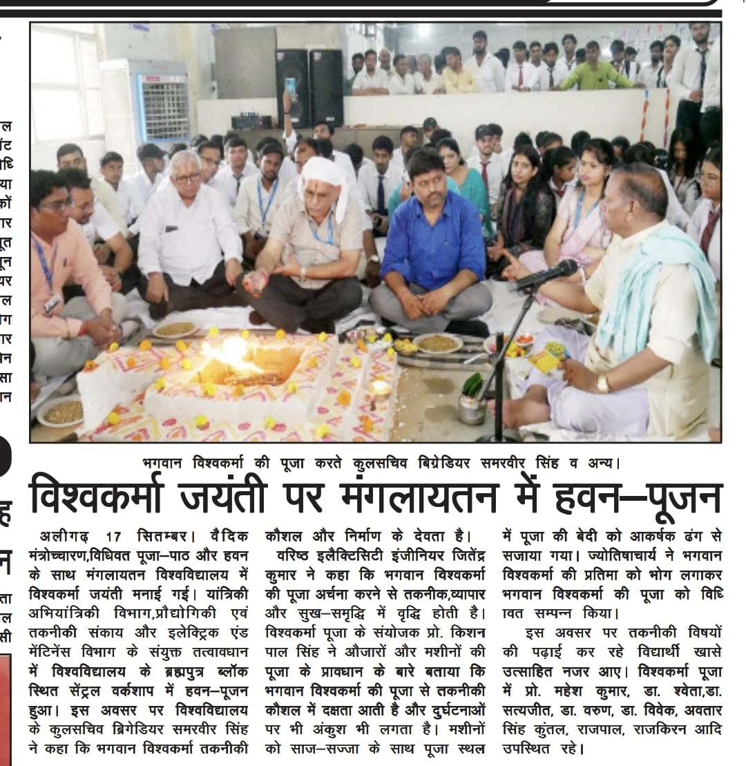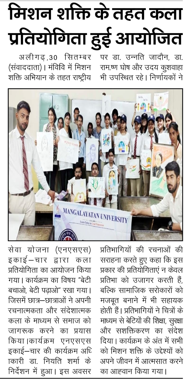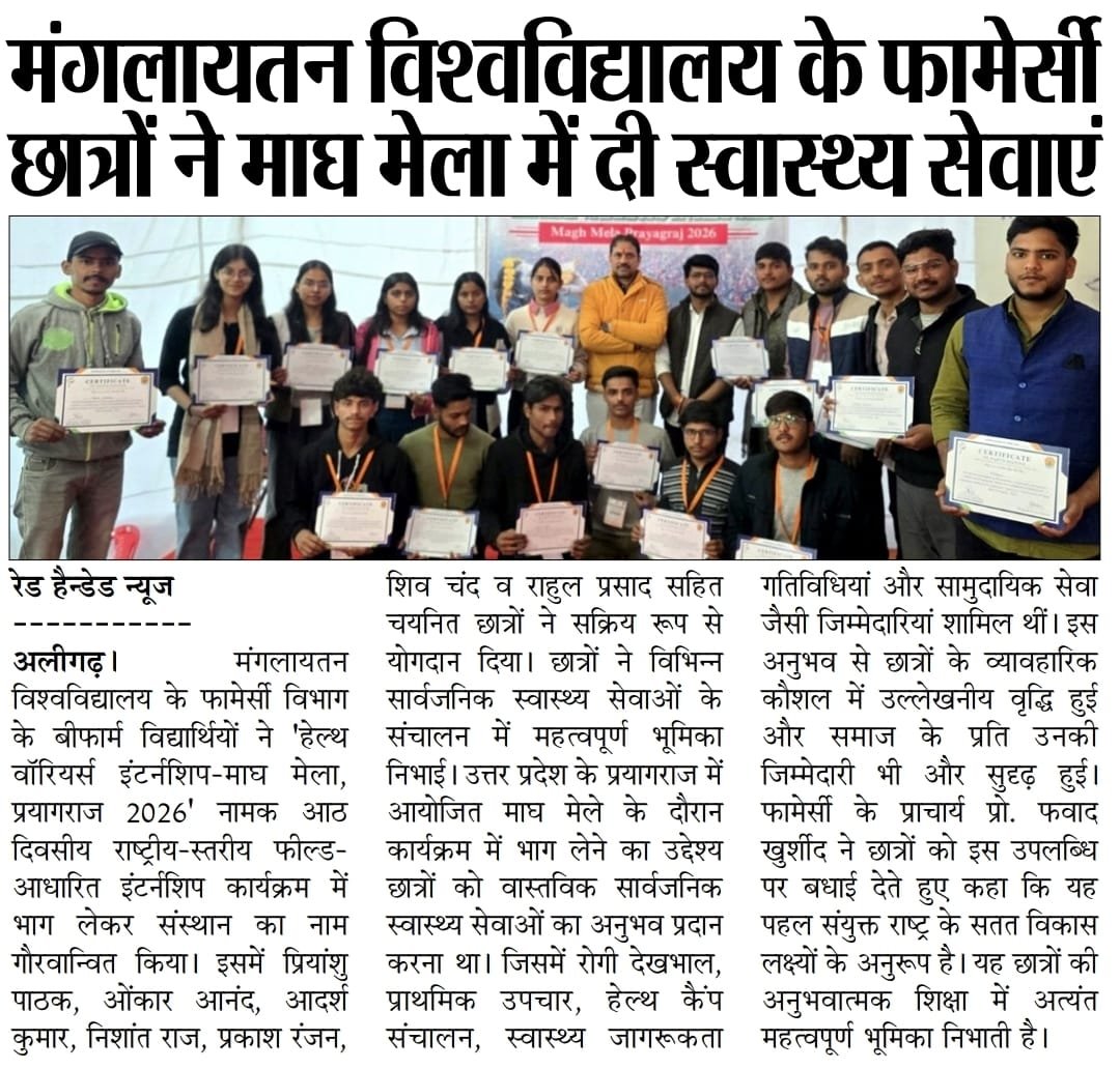 Mangalayatan University garnered significant attention in media with a feature highlighting departmental programs, community initiatives and activities. The article praised the university's commitment to academic excellence and its role in empowering academic units and their students through various skill development workshops and internships. Notably, the piece discussed the institution's efforts in promoting sustainable practices on campus, including eco-friendly initiatives that resonate with the university's mission to foster responsible citizens.This press clipping not only reflects the university's achievements but also its dedication to creating a vibrant learning environment, positioning Mangalayatan University as a cornerstone of educational development in the region. The coverage has sparked interest among prospective students and parents alike.