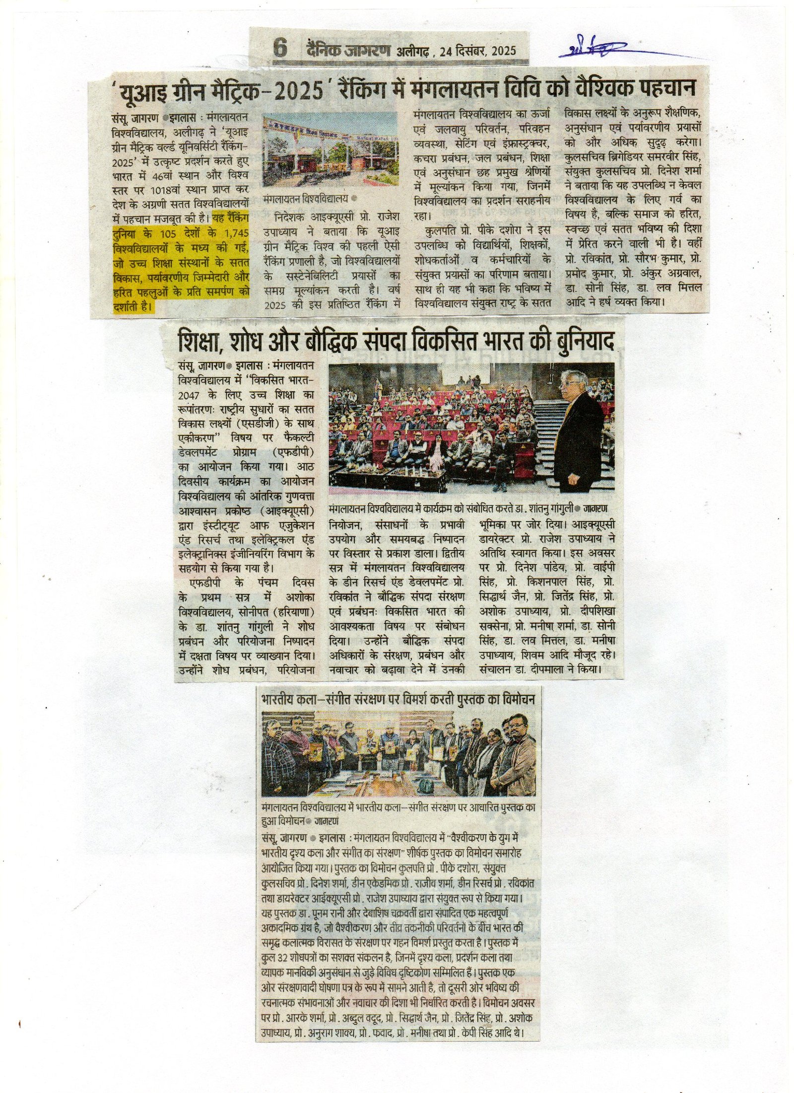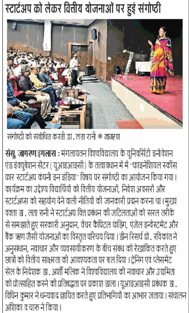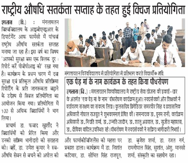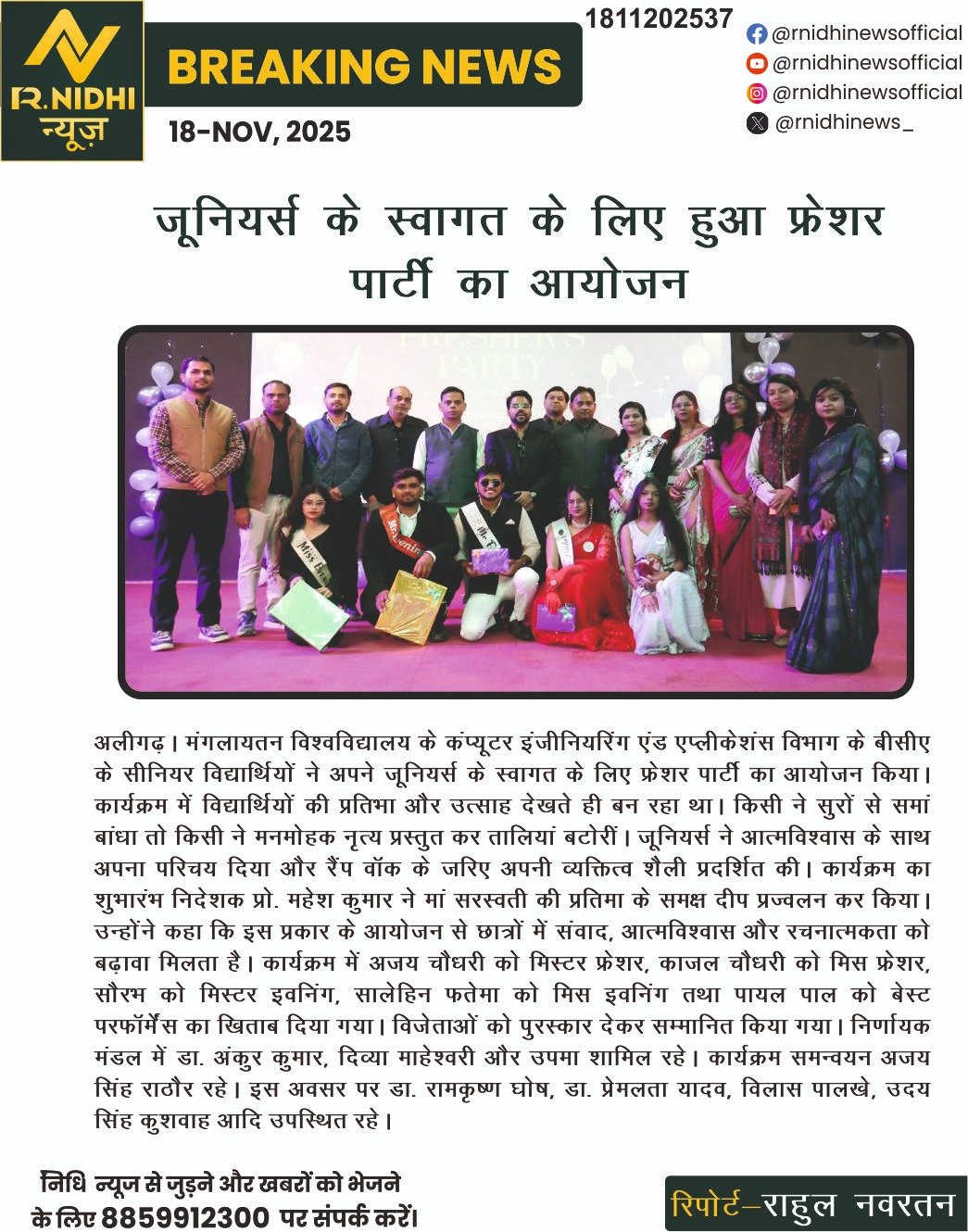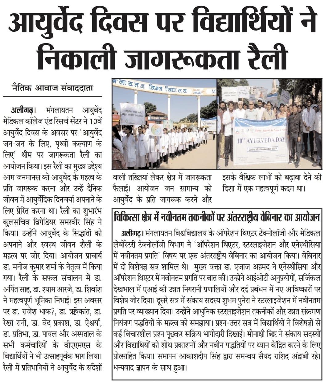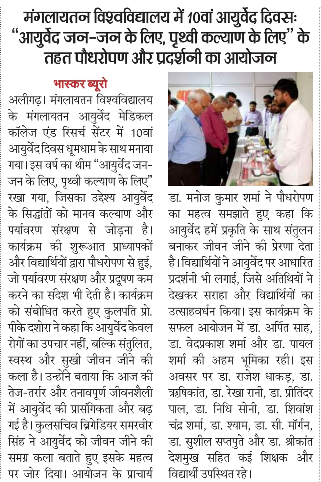 Mangalayatan University garnered significant attention in media with a feature highlighting departmental programs, community initiatives and activities. The article praised the university's commitment to academic excellence and its role in empowering academic units and their students through various skill development workshops and internships. Notably, the piece discussed the institution's efforts in promoting sustainable practices on campus, including eco-friendly initiatives that resonate with the university's mission to foster responsible citizens.This press clipping not only reflects the university's achievements but also its dedication to creating a vibrant learning environment, positioning Mangalayatan University as a cornerstone of educational development in the region. The coverage has sparked interest among prospective students and parents alike.