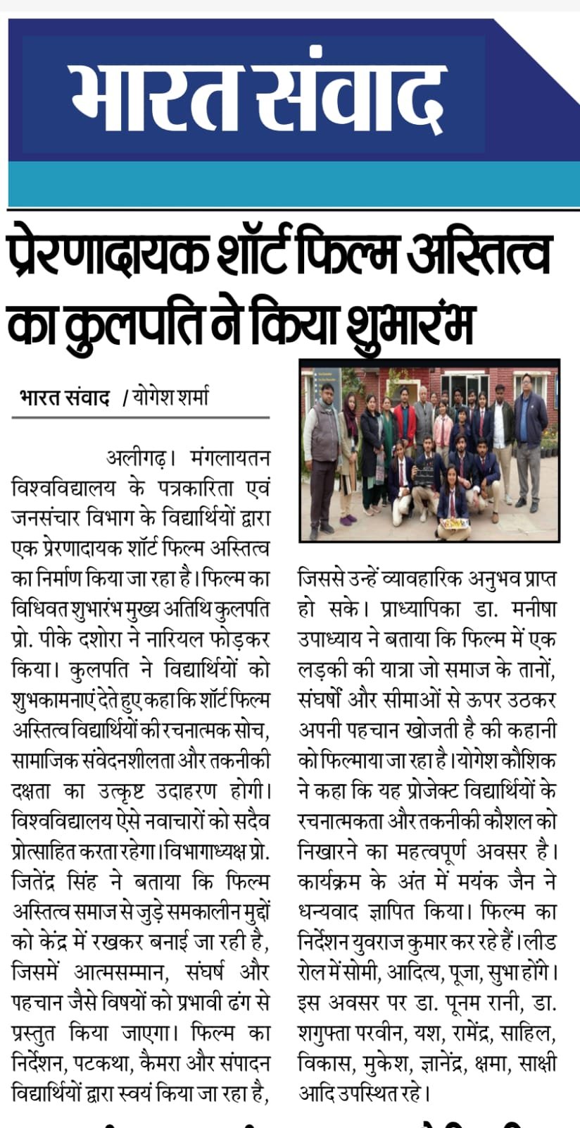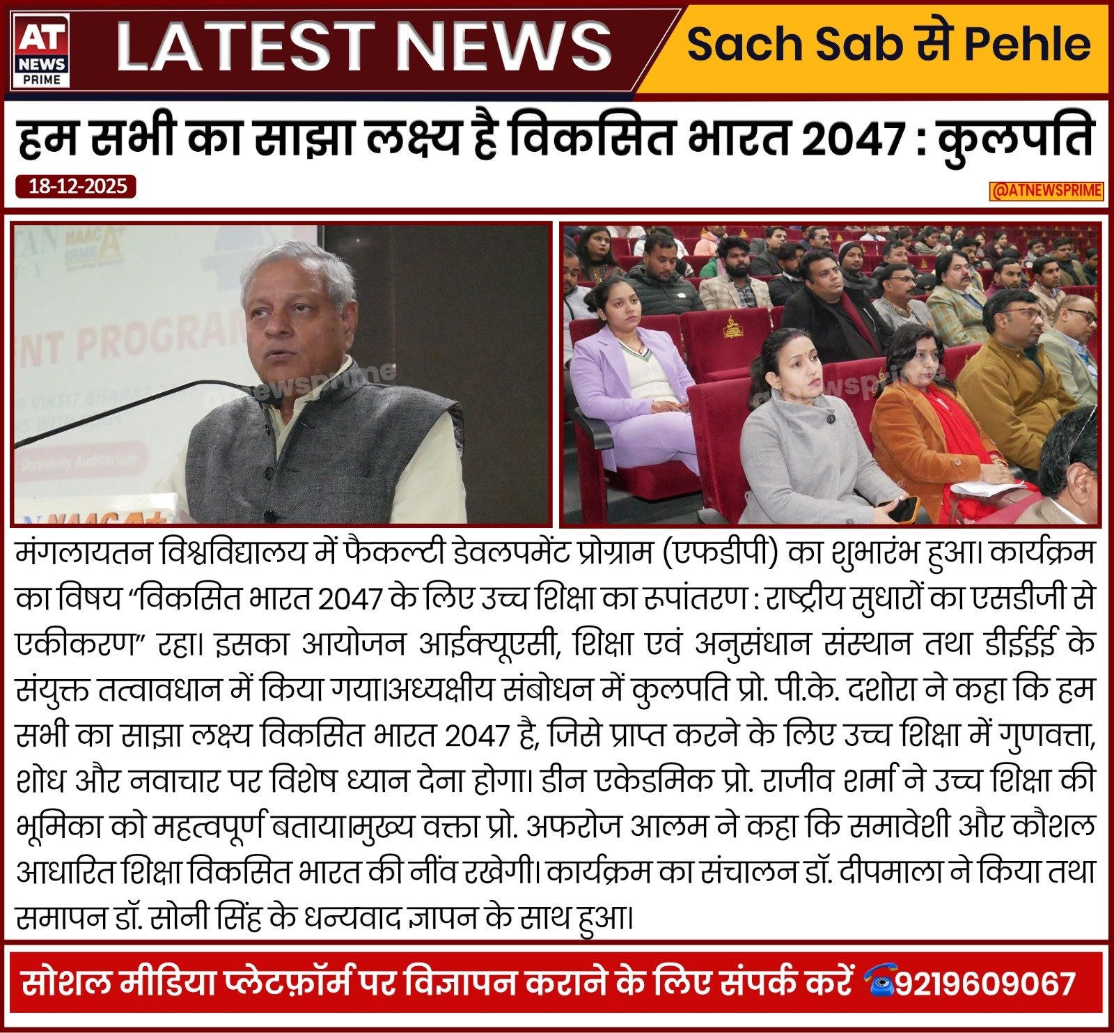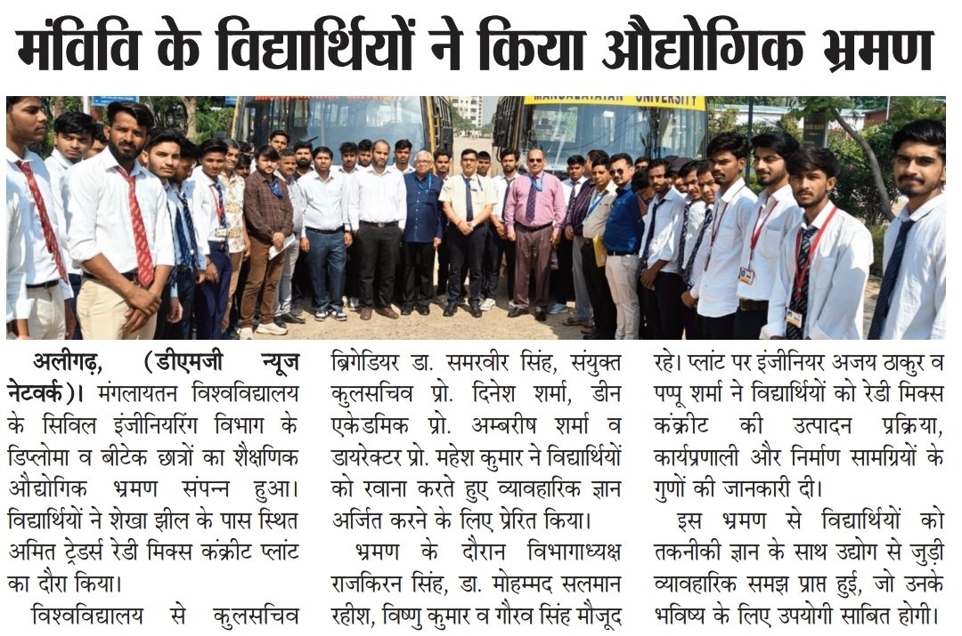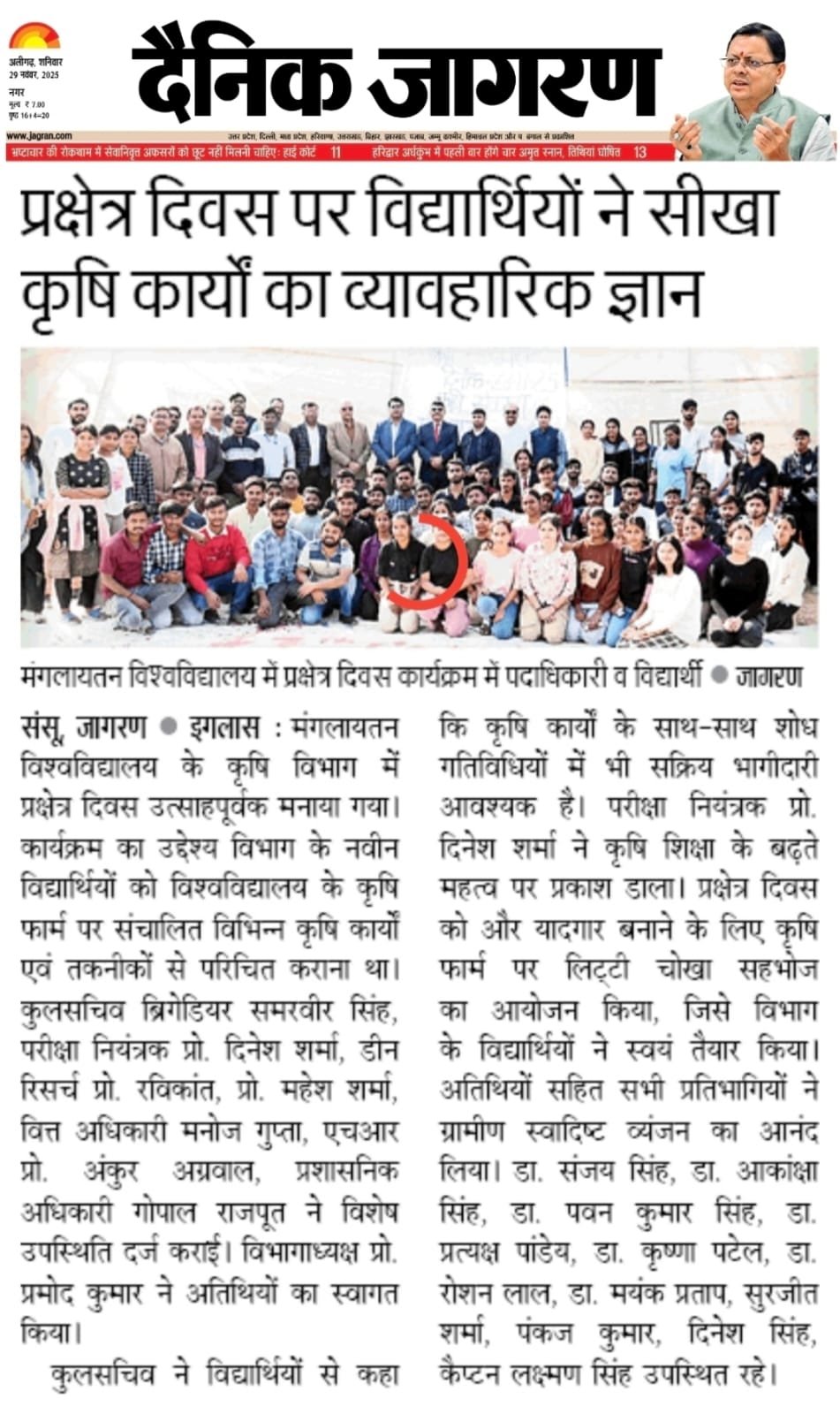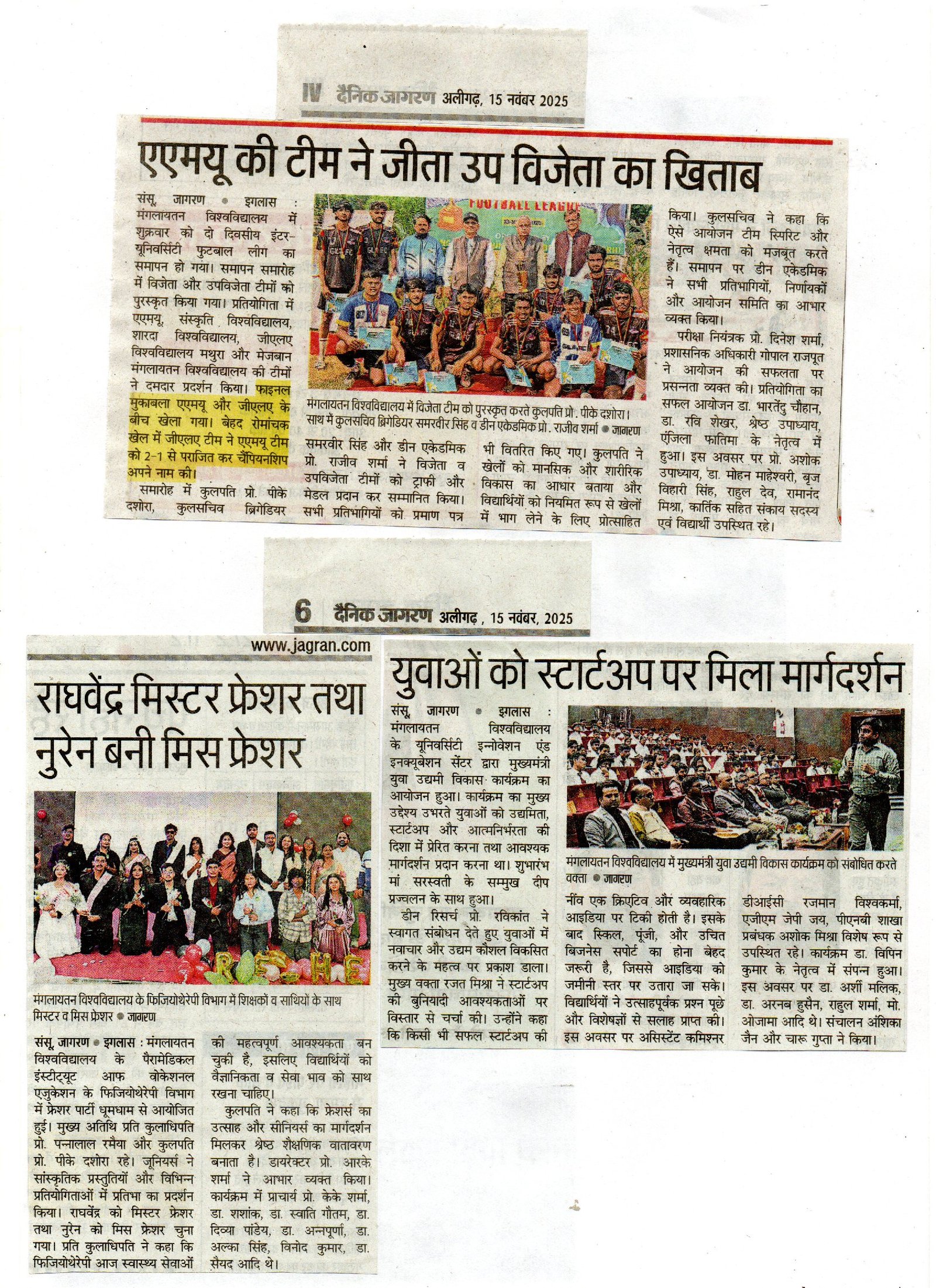Mangalayatan University garnered significant attention in media with a feature highlighting departmental programs, community initiatives and activities. The article praised the university's commitment to academic excellence and its role in empowering academic units and their students through various skill development workshops and internships. Notably, the piece discussed the institution's efforts in promoting sustainable practices on campus, including eco-friendly initiatives that resonate with the university's mission to foster responsible citizens.This press clipping not only reflects the university's achievements but also its dedication to creating a vibrant learning environment, positioning Mangalayatan University as a cornerstone of educational development in the region. The coverage has sparked interest among prospective students and parents alike.