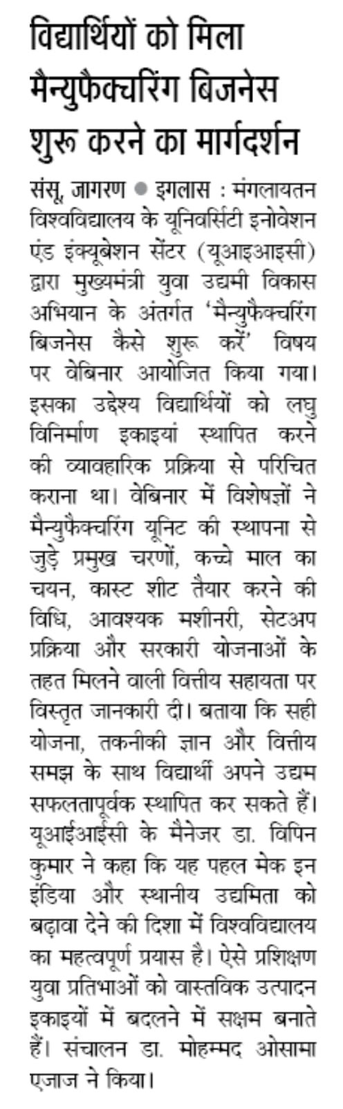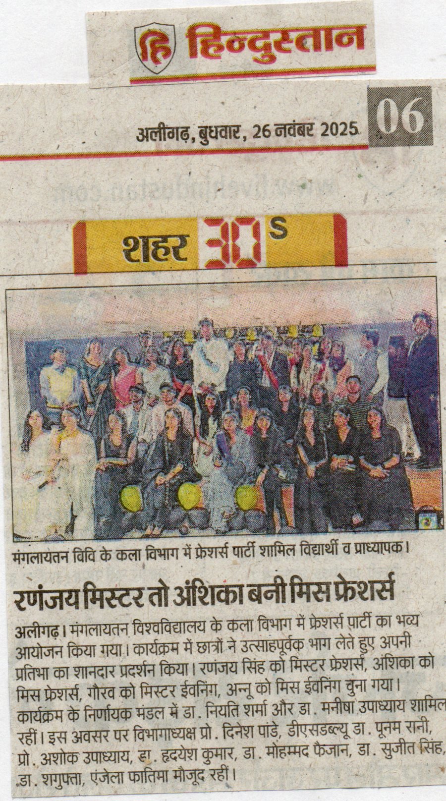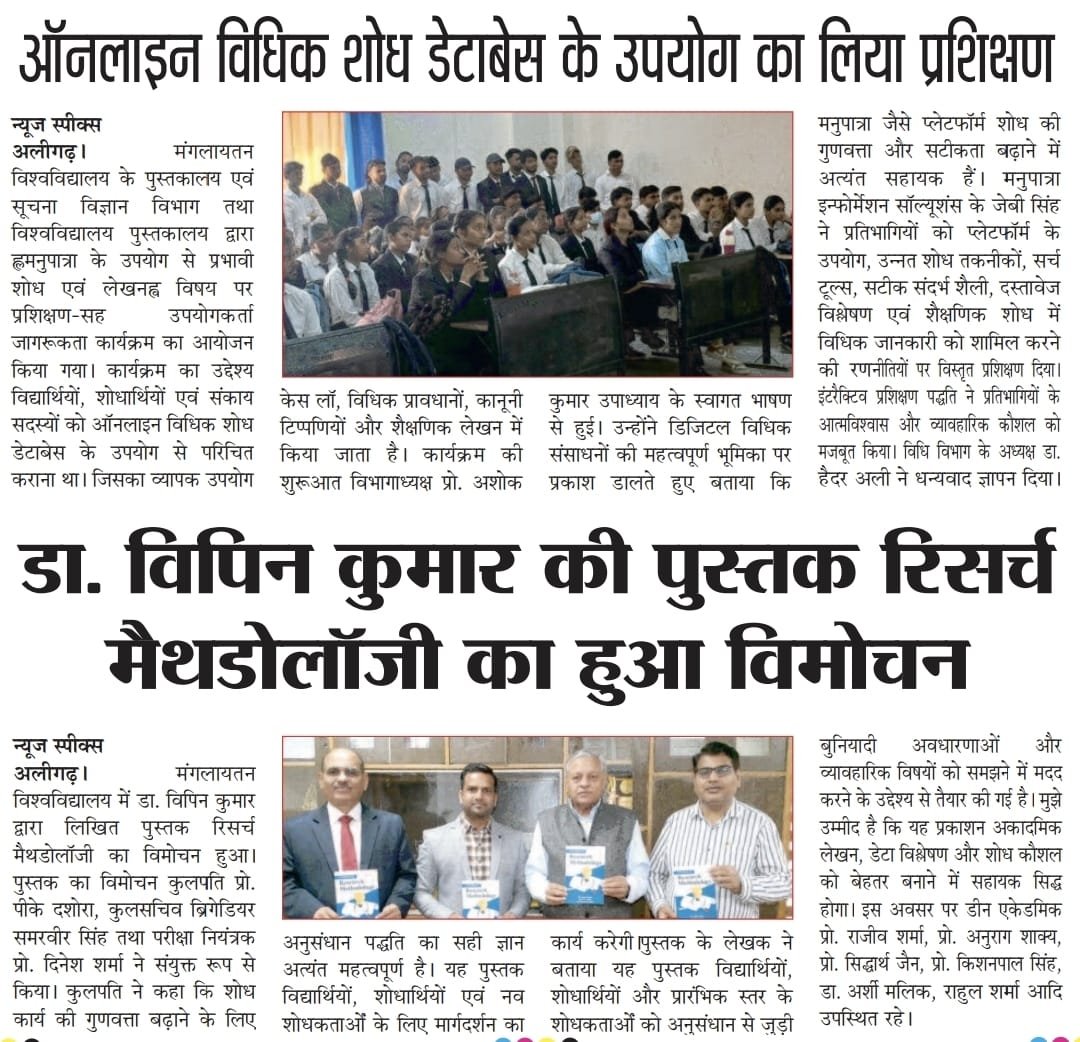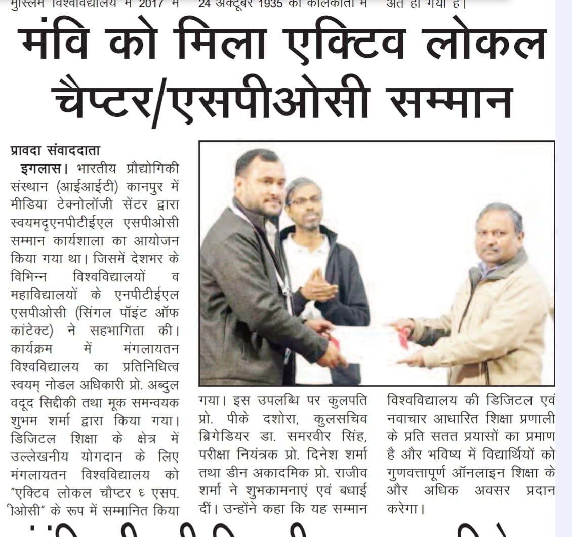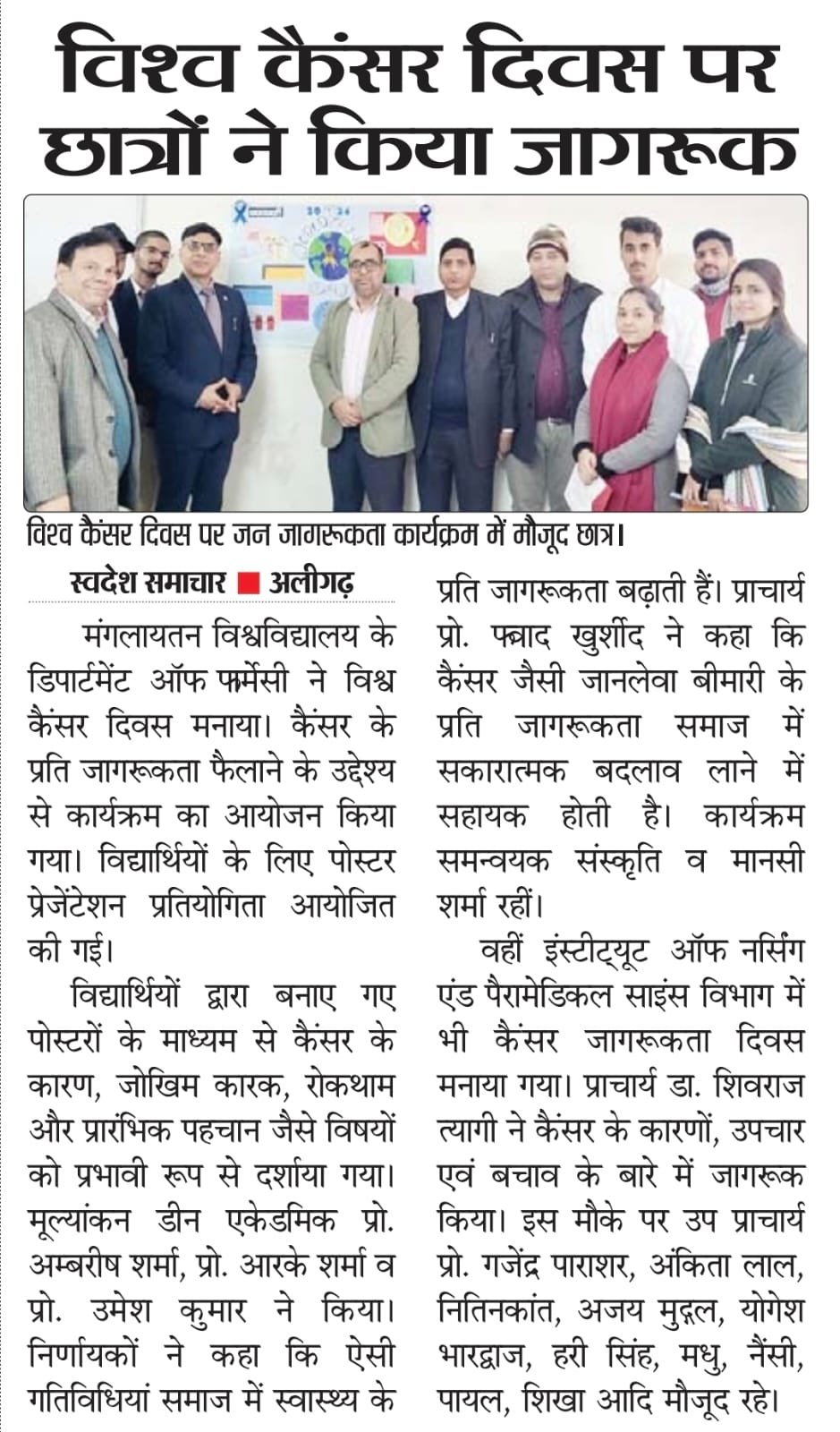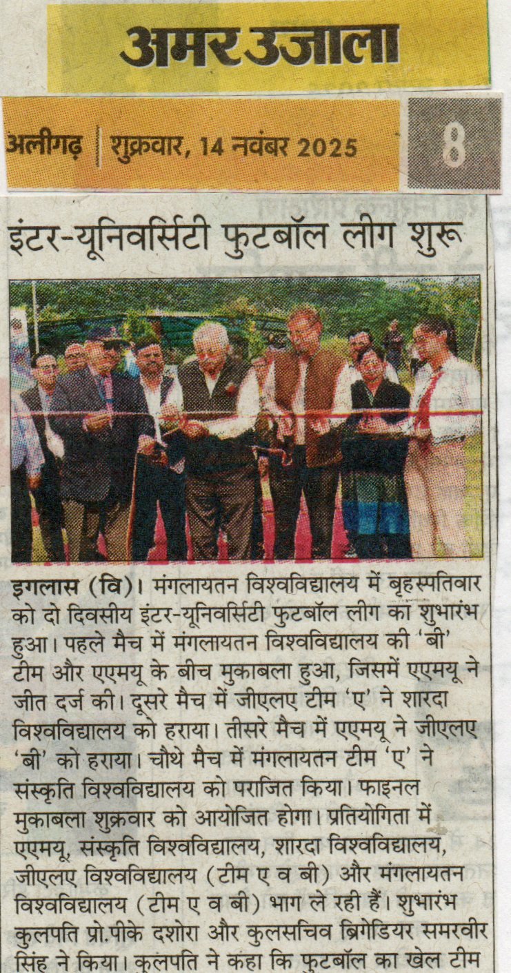 Mangalayatan University garnered significant attention in media with a feature highlighting departmental programs, community initiatives and activities. The article praised the university's commitment to academic excellence and its role in empowering academic units and their students through various skill development workshops and internships. Notably, the piece discussed the institution's efforts in promoting sustainable practices on campus, including eco-friendly initiatives that resonate with the university's mission to foster responsible citizens.This press clipping not only reflects the university's achievements but also its dedication to creating a vibrant learning environment, positioning Mangalayatan University as a cornerstone of educational development in the region. The coverage has sparked interest among prospective students and parents alike.