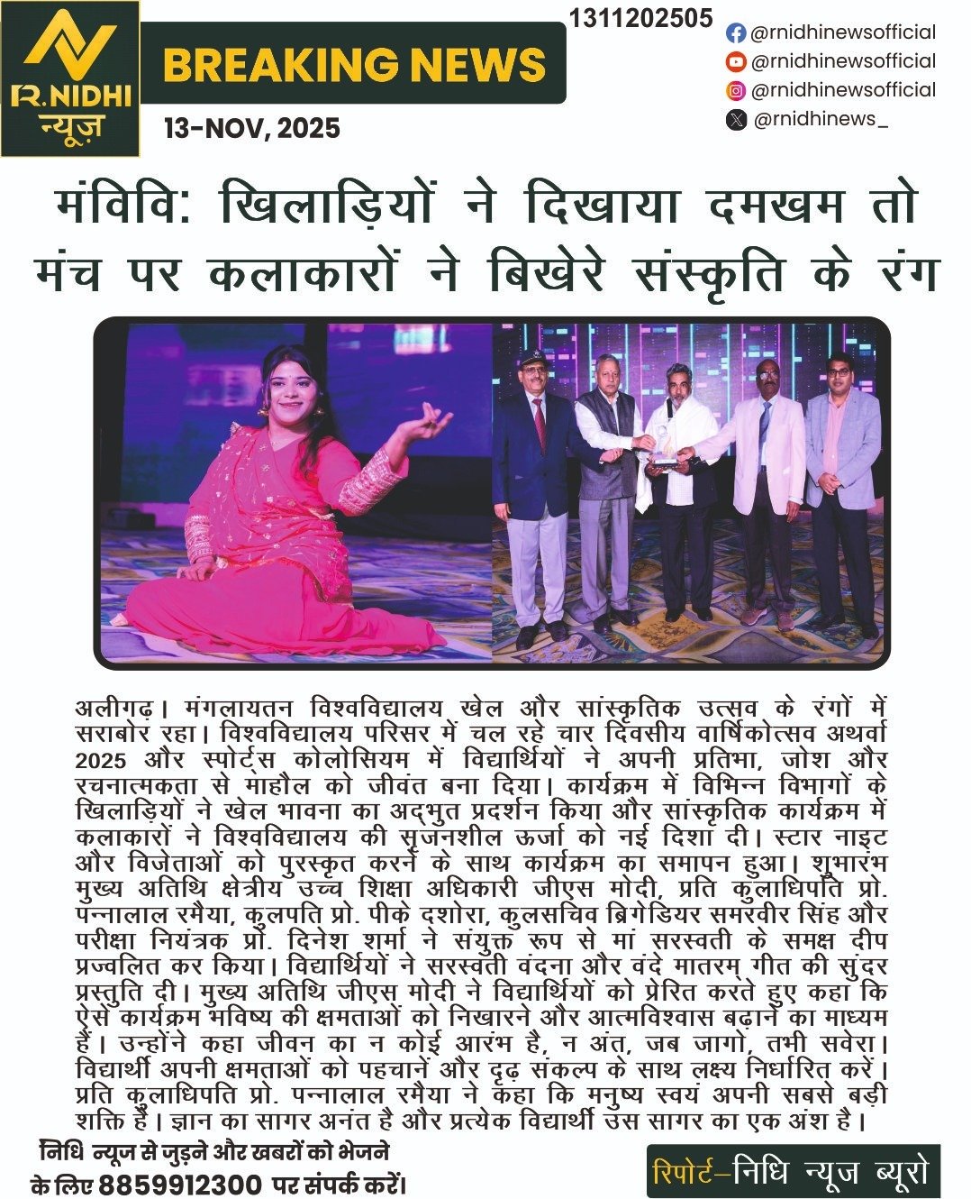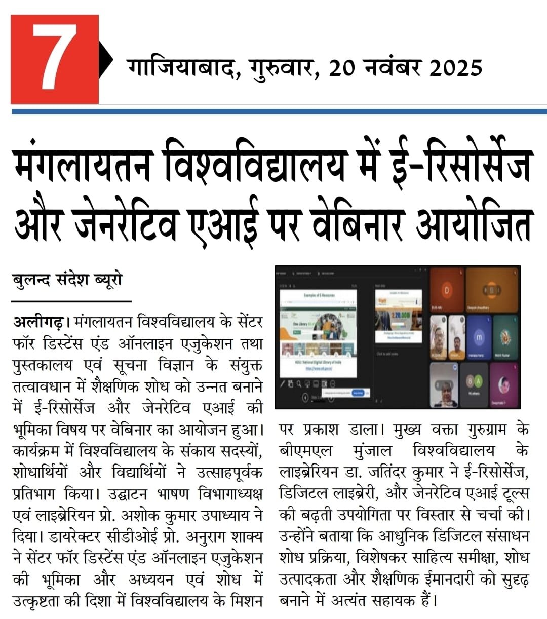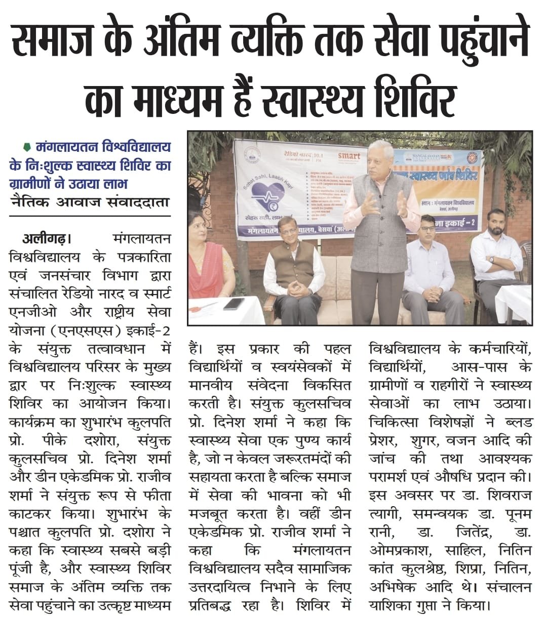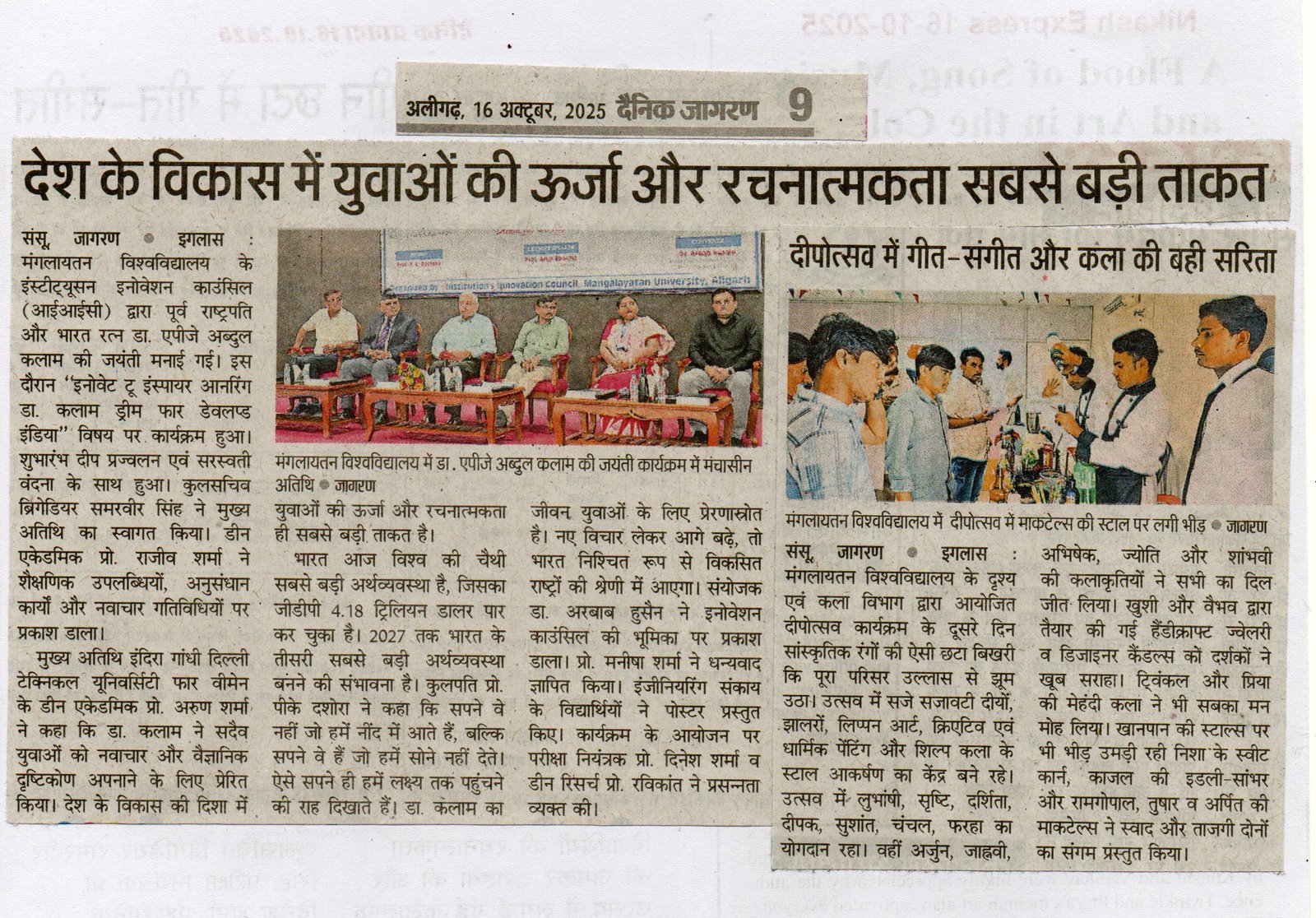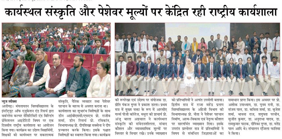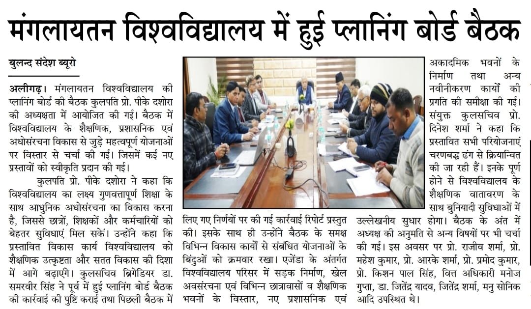 Mangalayatan University garnered significant attention in media with a feature highlighting departmental programs, community initiatives and activities. The article praised the university's commitment to academic excellence and its role in empowering academic units and their students through various skill development workshops and internships. Notably, the piece discussed the institution's efforts in promoting sustainable practices on campus, including eco-friendly initiatives that resonate with the university's mission to foster responsible citizens.This press clipping not only reflects the university's achievements but also its dedication to creating a vibrant learning environment, positioning Mangalayatan University as a cornerstone of educational development in the region. The coverage has sparked interest among prospective students and parents alike.