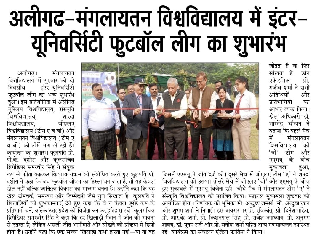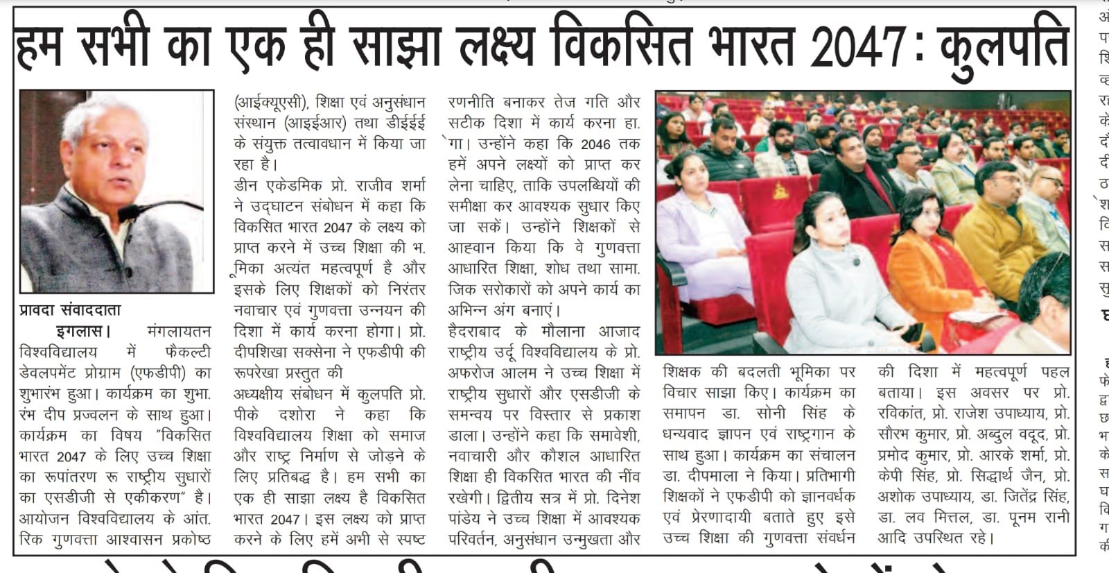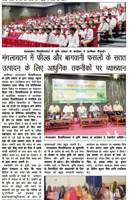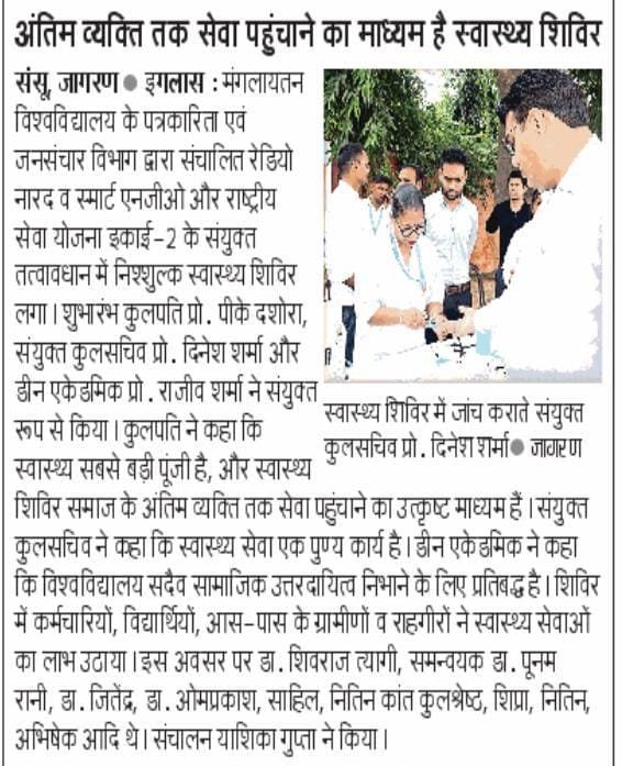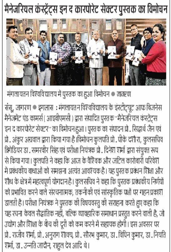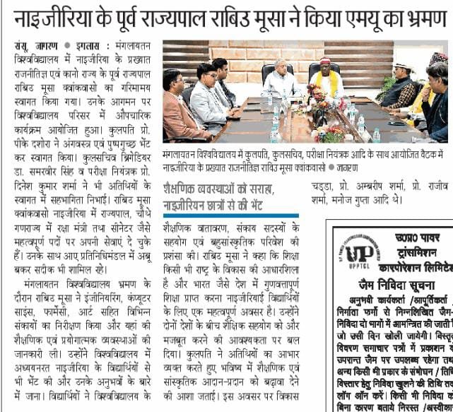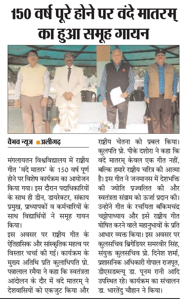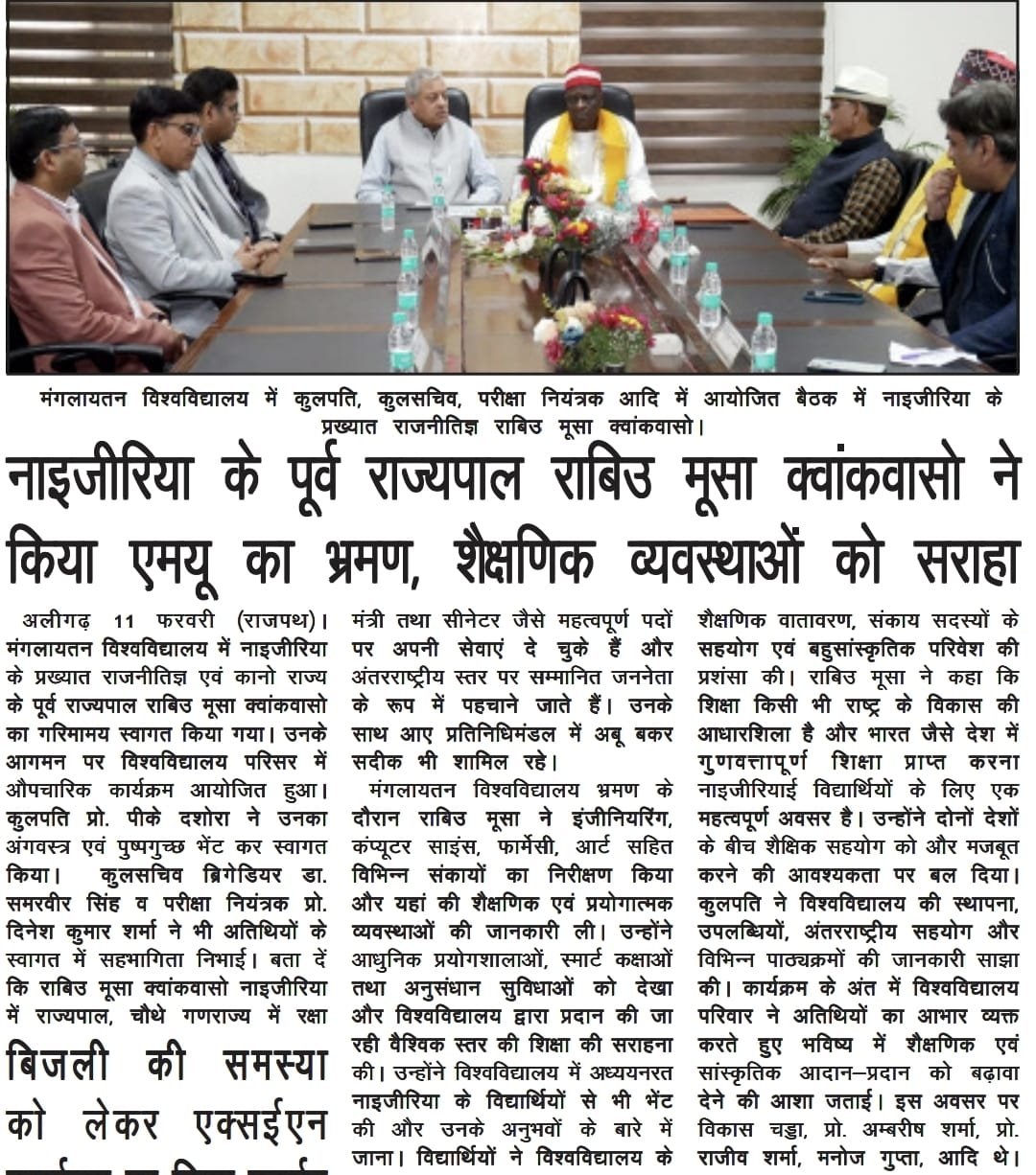 Mangalayatan University garnered significant attention in media with a feature highlighting departmental programs, community initiatives and activities. The article praised the university's commitment to academic excellence and its role in empowering academic units and their students through various skill development workshops and internships. Notably, the piece discussed the institution's efforts in promoting sustainable practices on campus, including eco-friendly initiatives that resonate with the university's mission to foster responsible citizens.This press clipping not only reflects the university's achievements but also its dedication to creating a vibrant learning environment, positioning Mangalayatan University as a cornerstone of educational development in the region. The coverage has sparked interest among prospective students and parents alike.