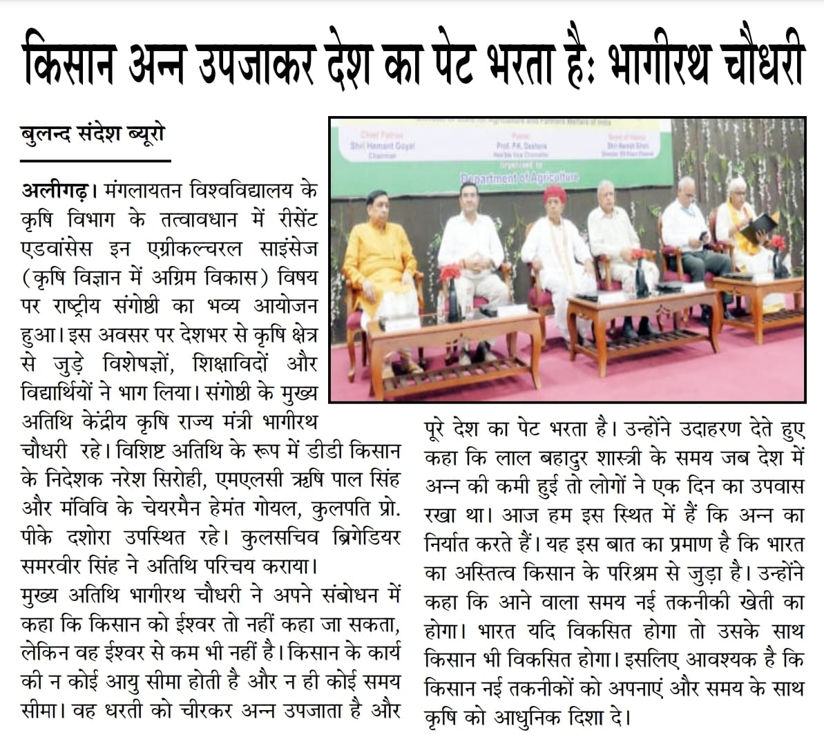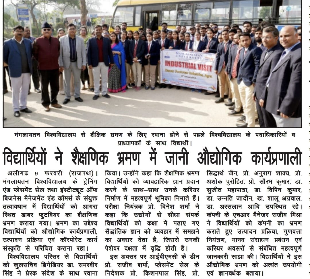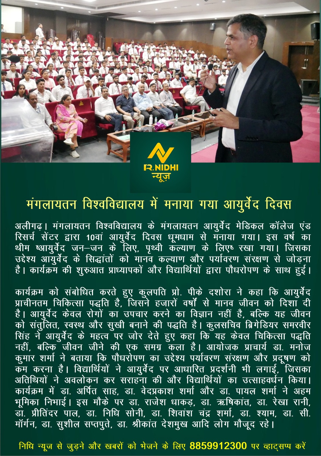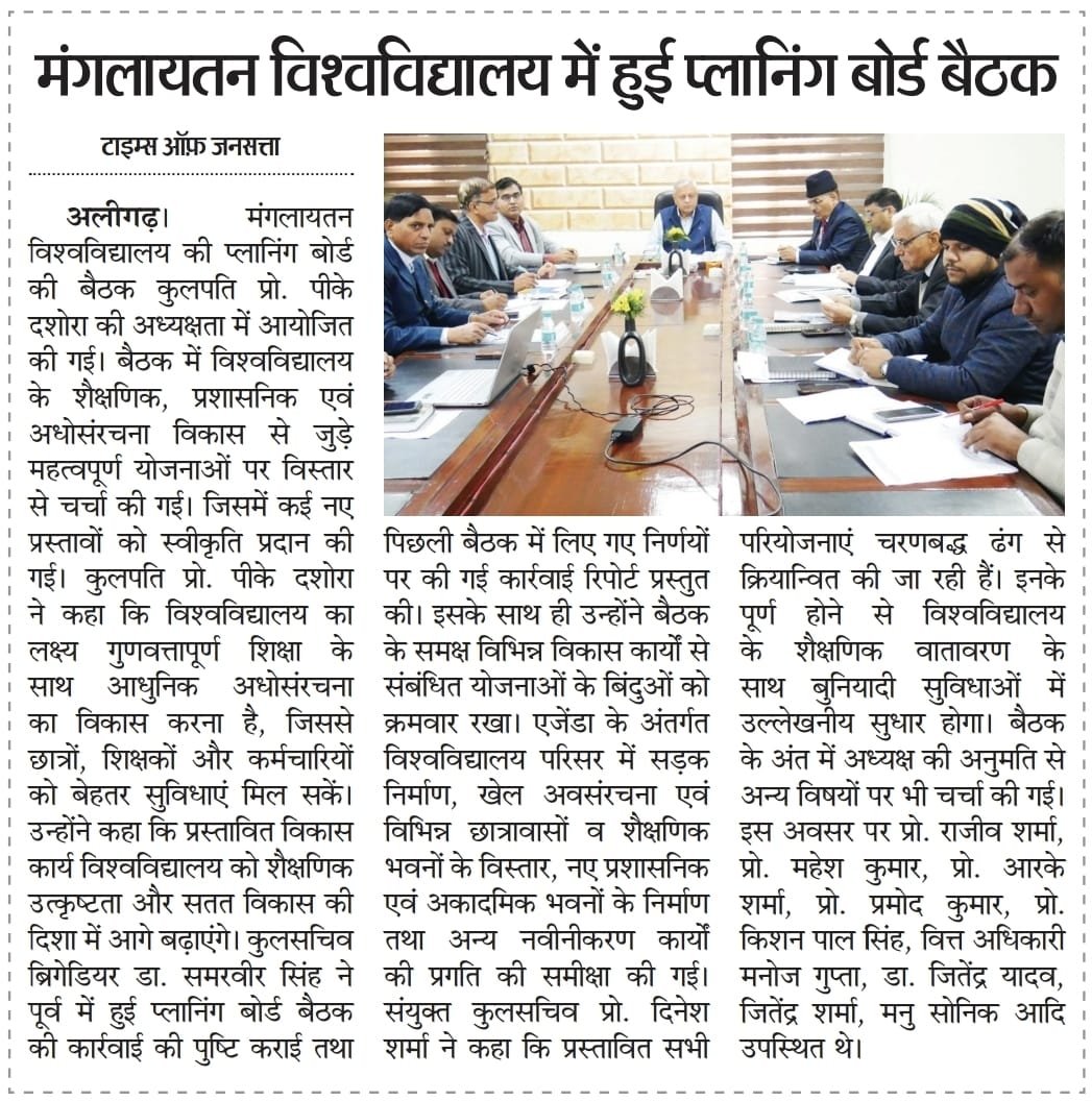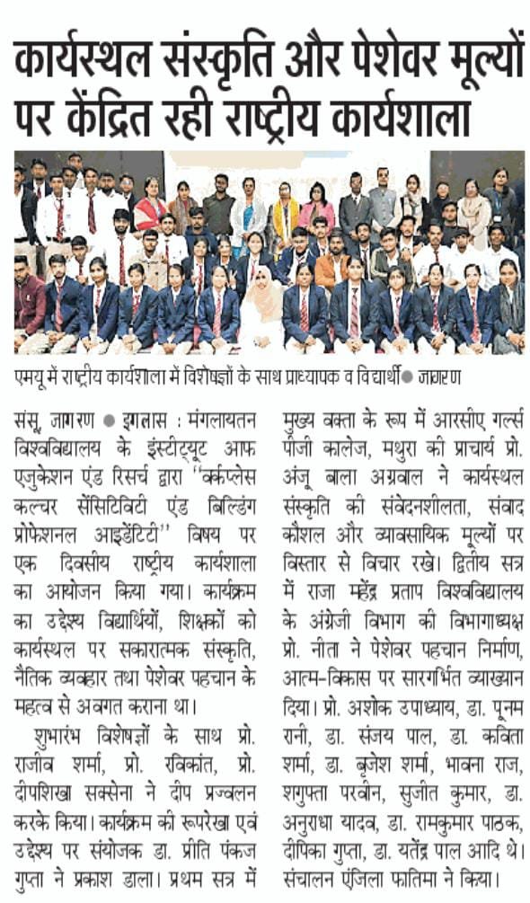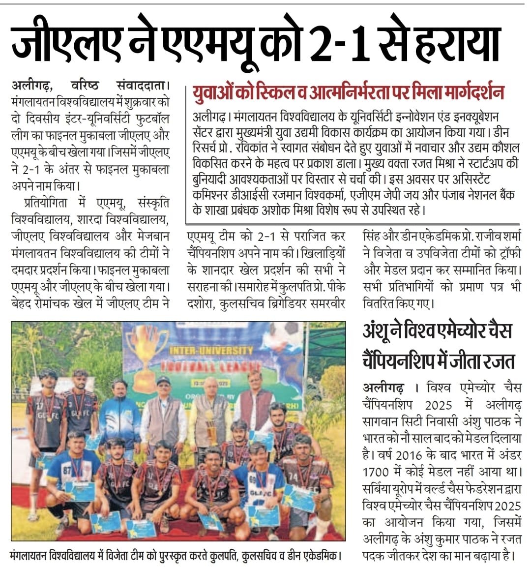 Mangalayatan University garnered significant attention in media with a feature highlighting departmental programs, community initiatives and activities. The article praised the university's commitment to academic excellence and its role in empowering academic units and their students through various skill development workshops and internships. Notably, the piece discussed the institution's efforts in promoting sustainable practices on campus, including eco-friendly initiatives that resonate with the university's mission to foster responsible citizens.This press clipping not only reflects the university's achievements but also its dedication to creating a vibrant learning environment, positioning Mangalayatan University as a cornerstone of educational development in the region. The coverage has sparked interest among prospective students and parents alike.