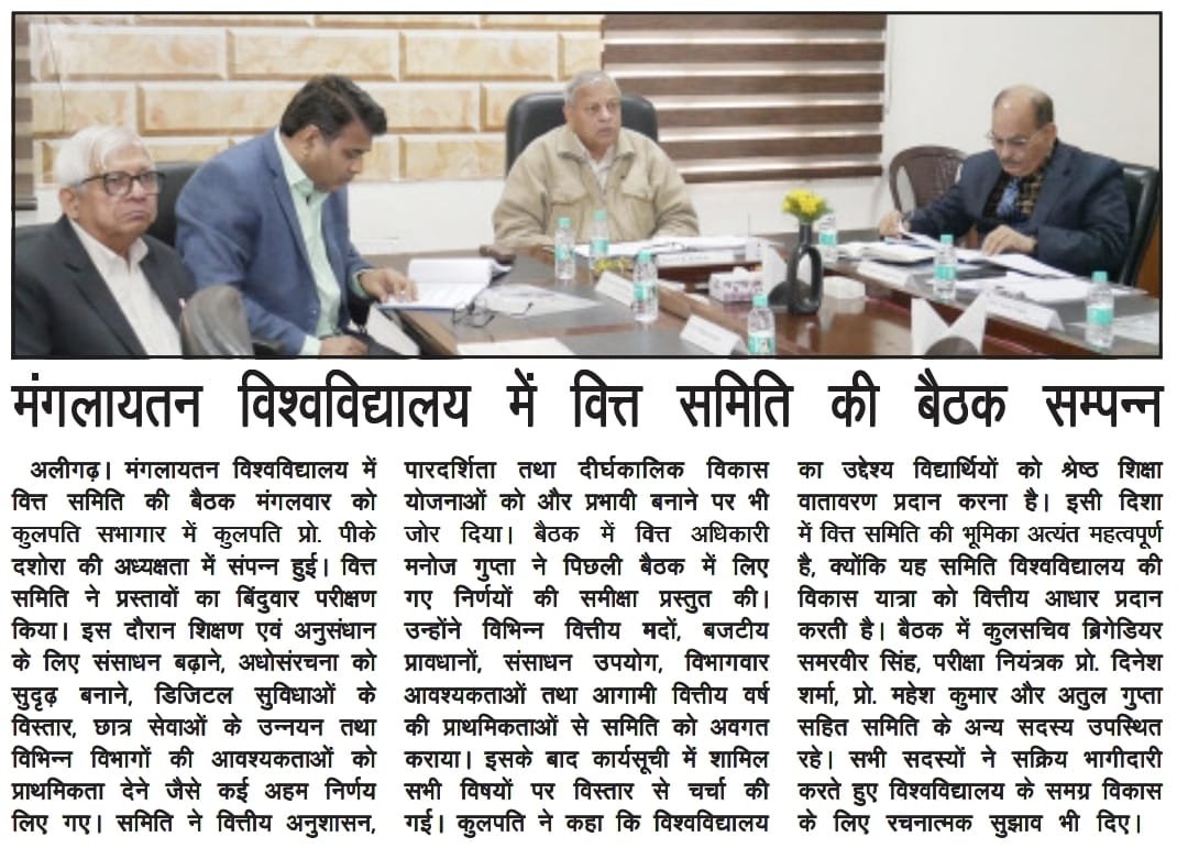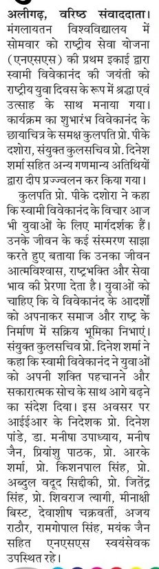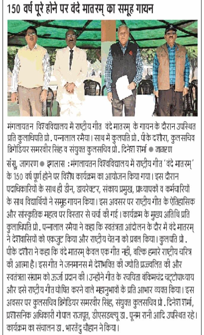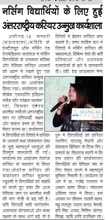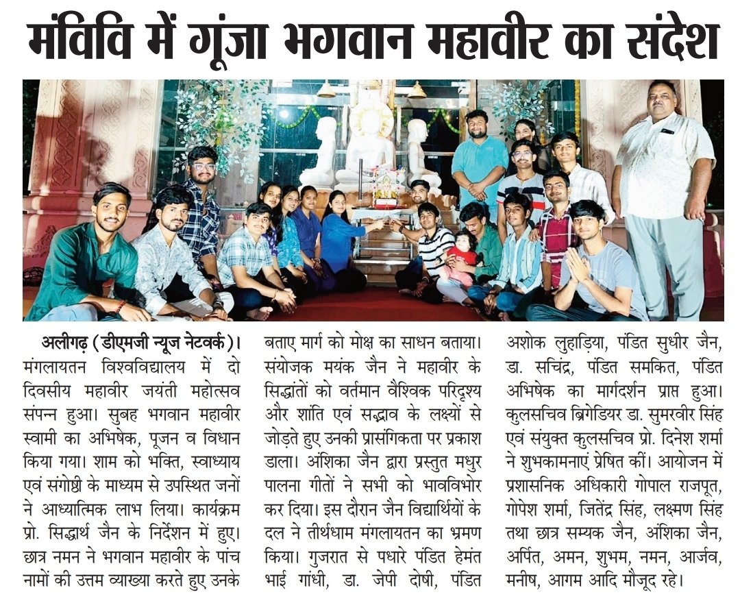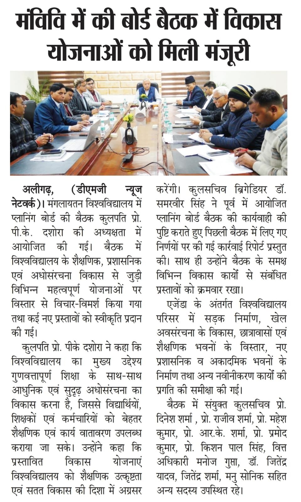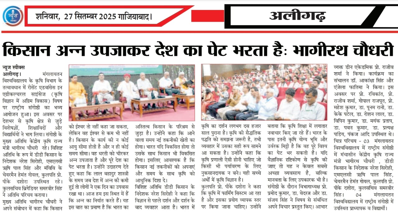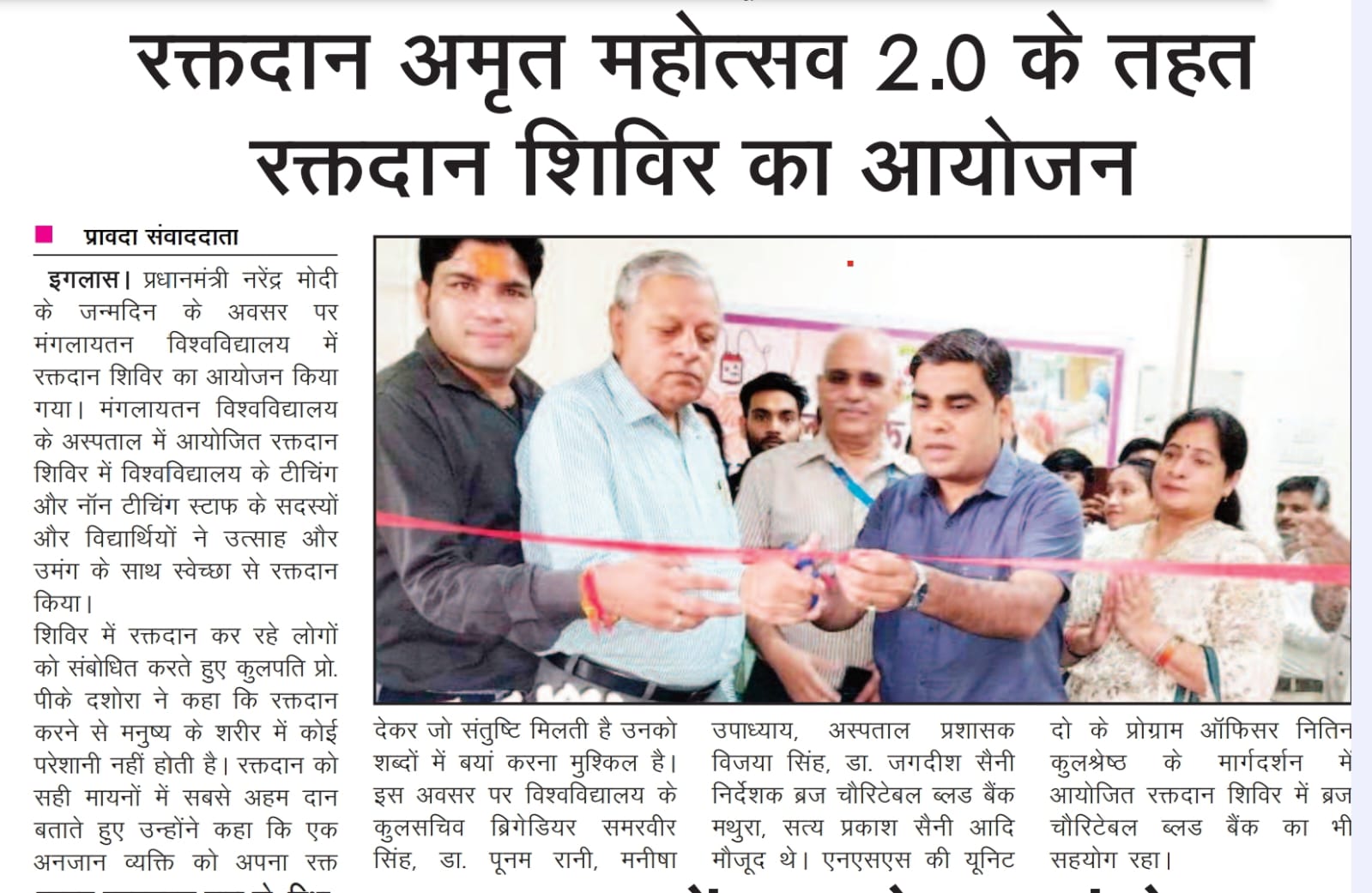 Mangalayatan University garnered significant attention in media with a feature highlighting departmental programs, community initiatives and activities. The article praised the university's commitment to academic excellence and its role in empowering academic units and their students through various skill development workshops and internships. Notably, the piece discussed the institution's efforts in promoting sustainable practices on campus, including eco-friendly initiatives that resonate with the university's mission to foster responsible citizens.This press clipping not only reflects the university's achievements but also its dedication to creating a vibrant learning environment, positioning Mangalayatan University as a cornerstone of educational development in the region. The coverage has sparked interest among prospective students and parents alike.