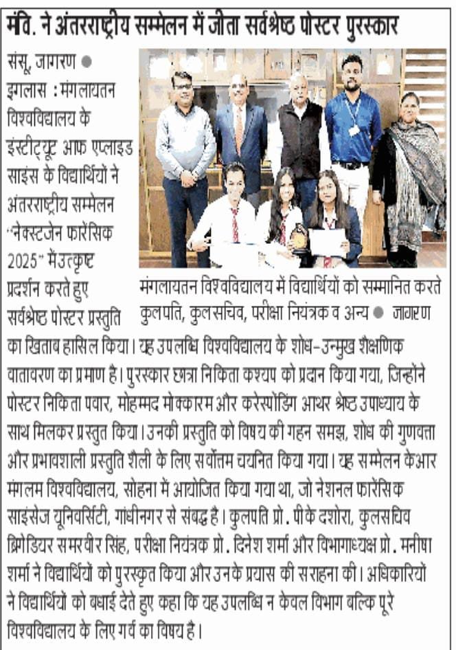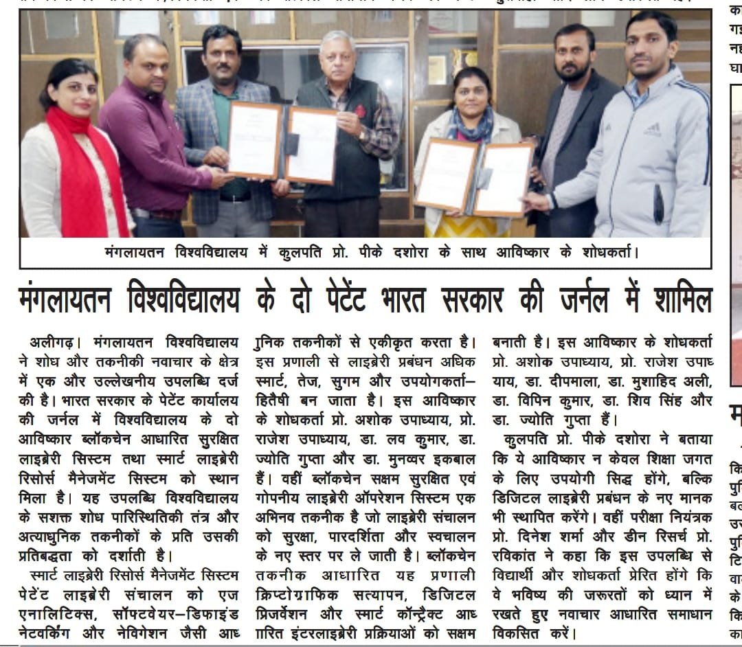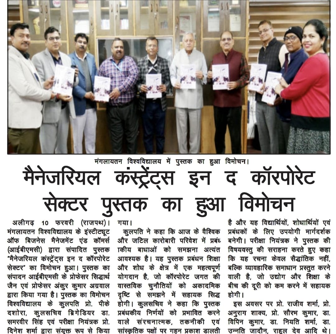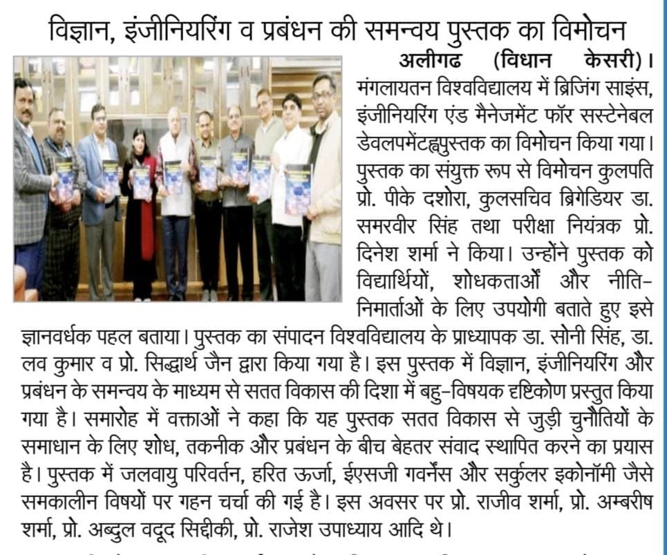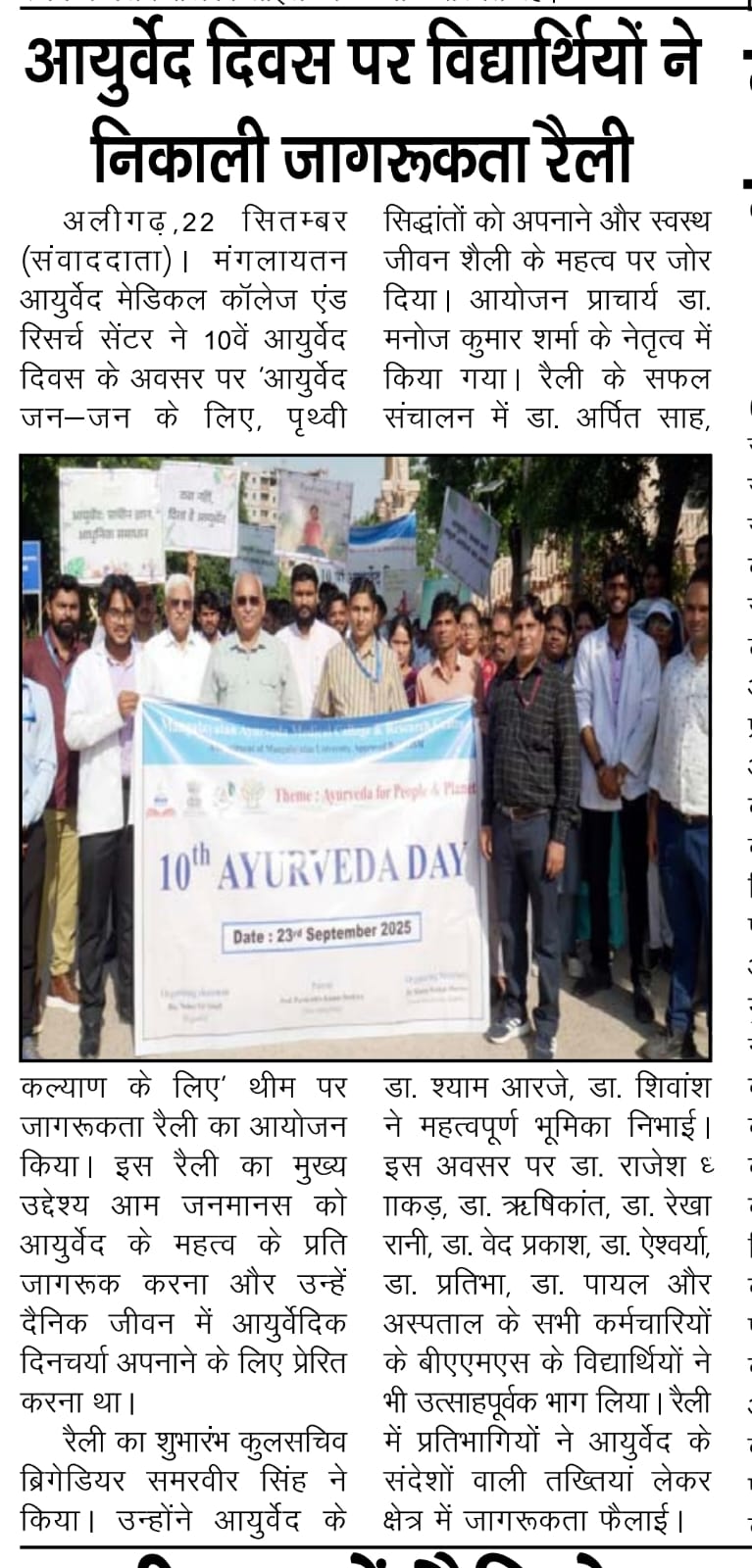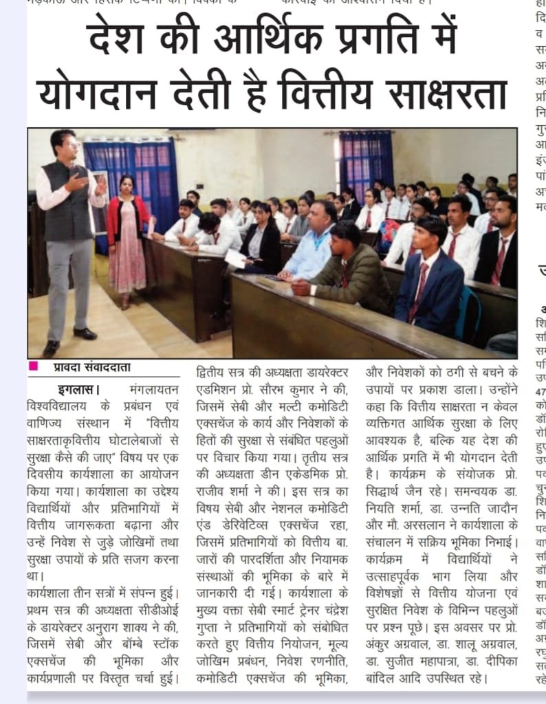 Mangalayatan University garnered significant attention in media with a feature highlighting departmental programs, community initiatives and activities. The article praised the university's commitment to academic excellence and its role in empowering academic units and their students through various skill development workshops and internships. Notably, the piece discussed the institution's efforts in promoting sustainable practices on campus, including eco-friendly initiatives that resonate with the university's mission to foster responsible citizens.This press clipping not only reflects the university's achievements but also its dedication to creating a vibrant learning environment, positioning Mangalayatan University as a cornerstone of educational development in the region. The coverage has sparked interest among prospective students and parents alike.