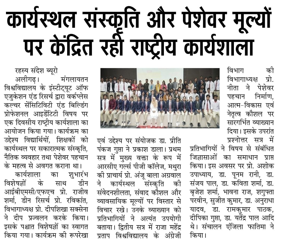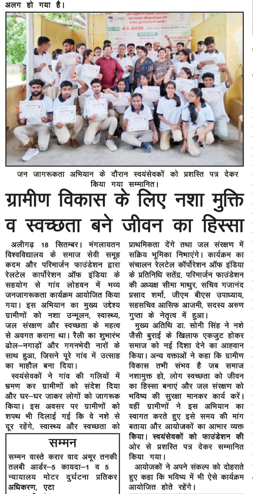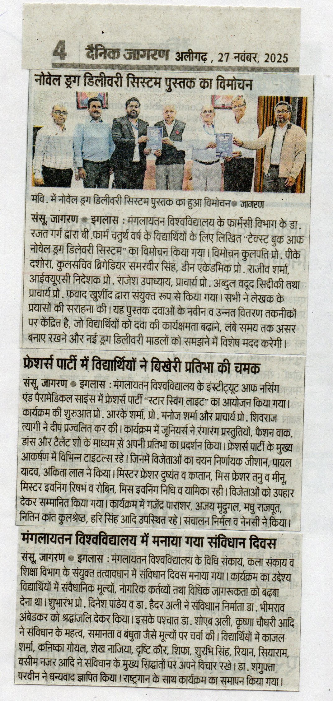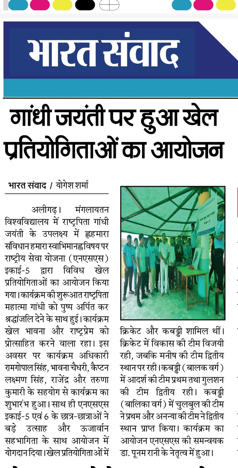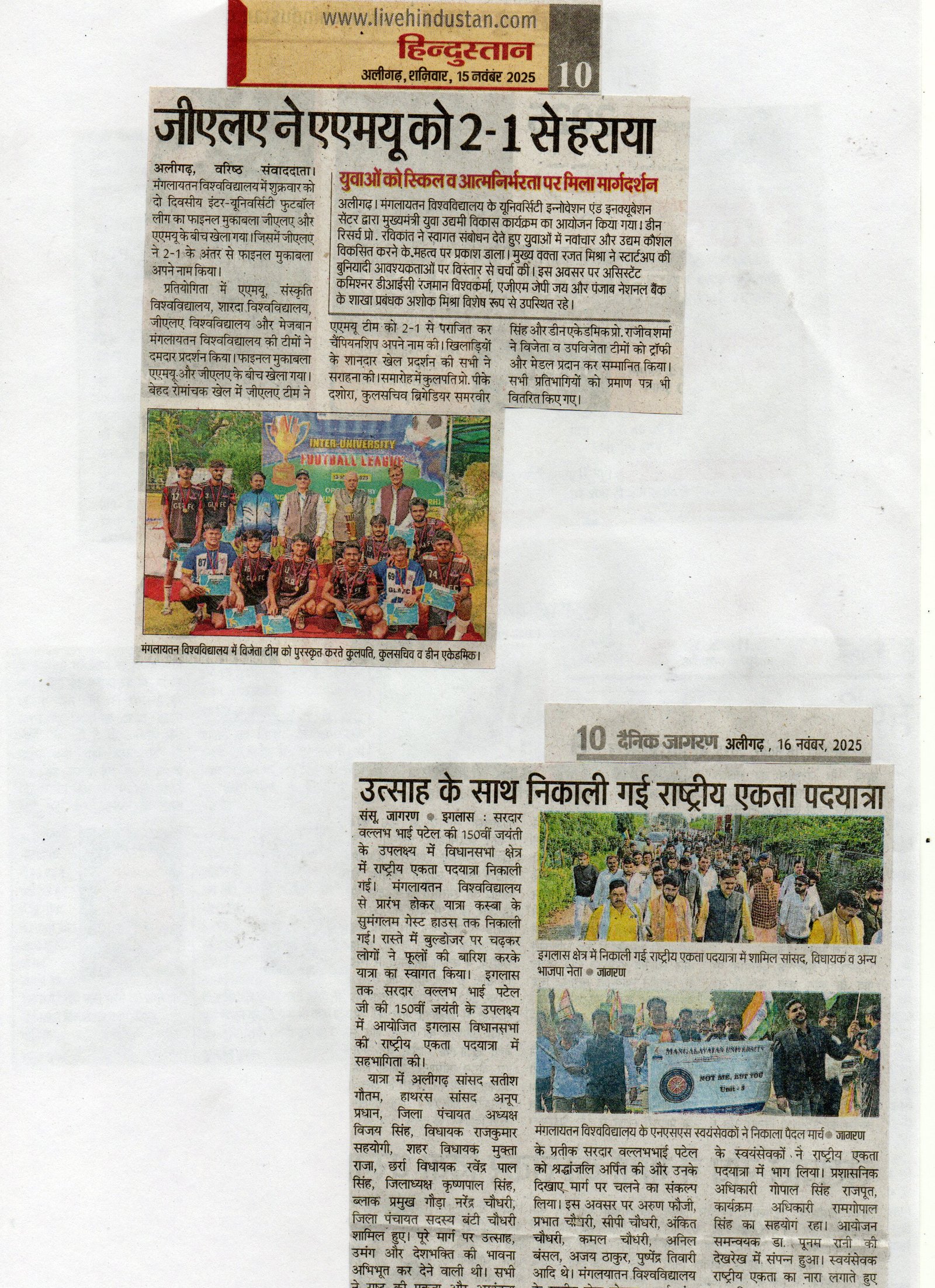 Mangalayatan University garnered significant attention in media with a feature highlighting departmental programs, community initiatives and activities. The article praised the university's commitment to academic excellence and its role in empowering academic units and their students through various skill development workshops and internships. Notably, the piece discussed the institution's efforts in promoting sustainable practices on campus, including eco-friendly initiatives that resonate with the university's mission to foster responsible citizens.This press clipping not only reflects the university's achievements but also its dedication to creating a vibrant learning environment, positioning Mangalayatan University as a cornerstone of educational development in the region. The coverage has sparked interest among prospective students and parents alike.