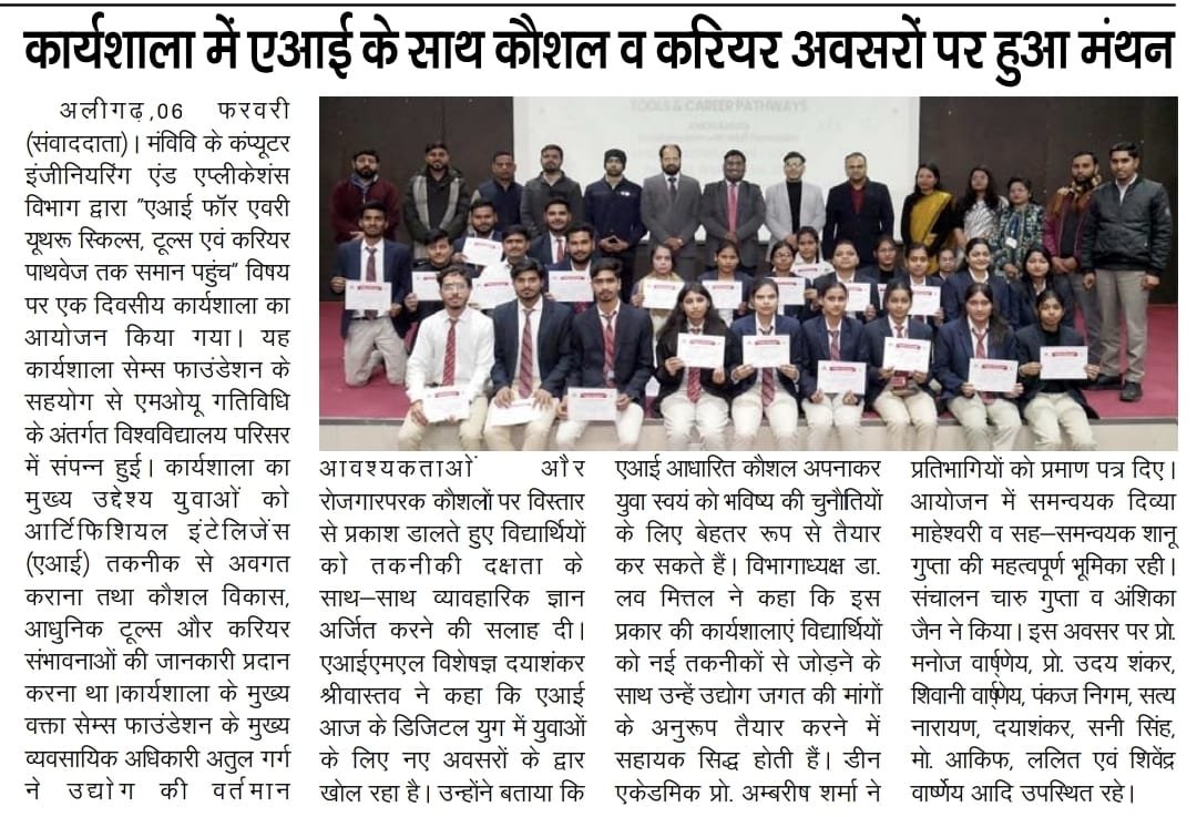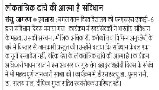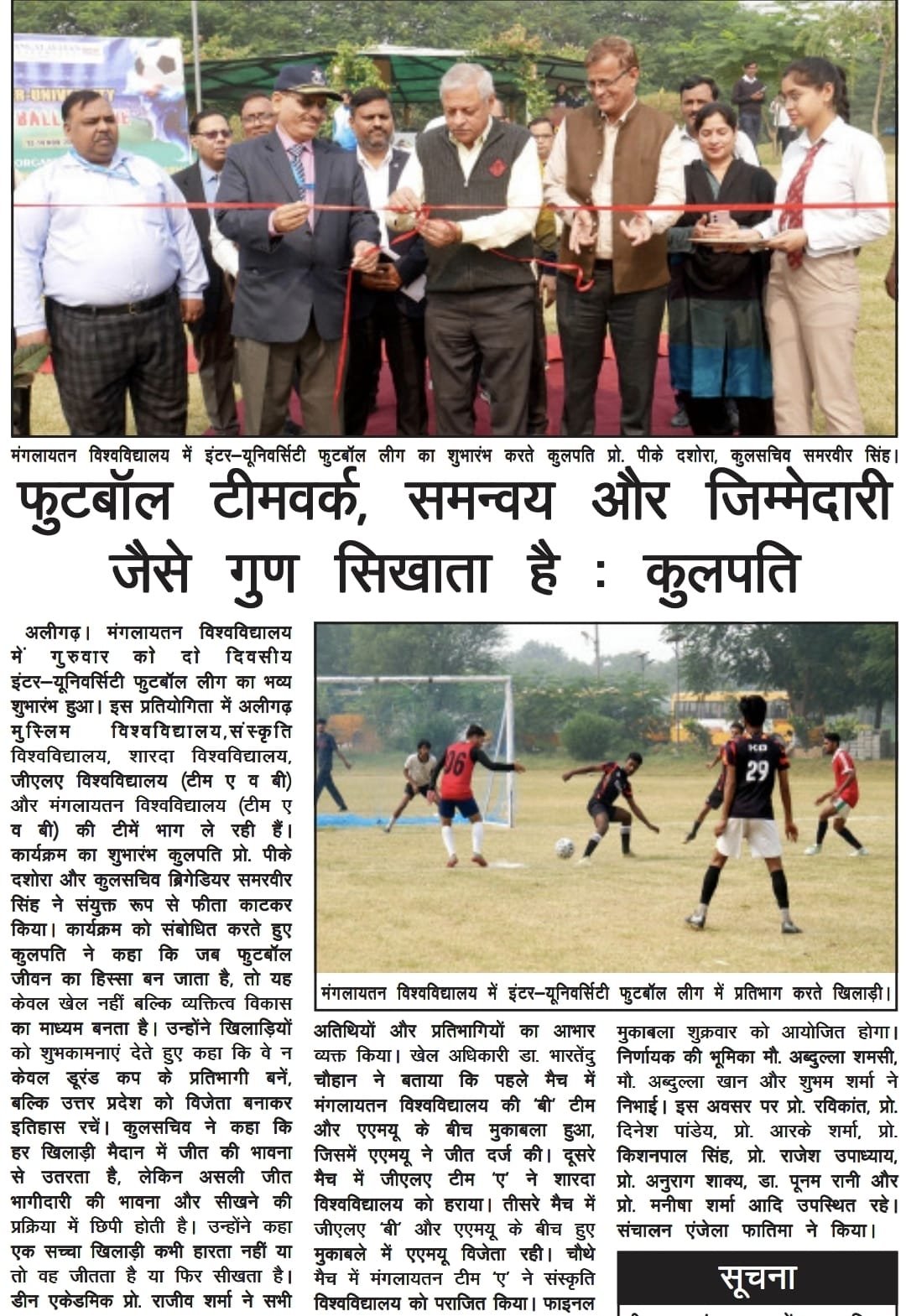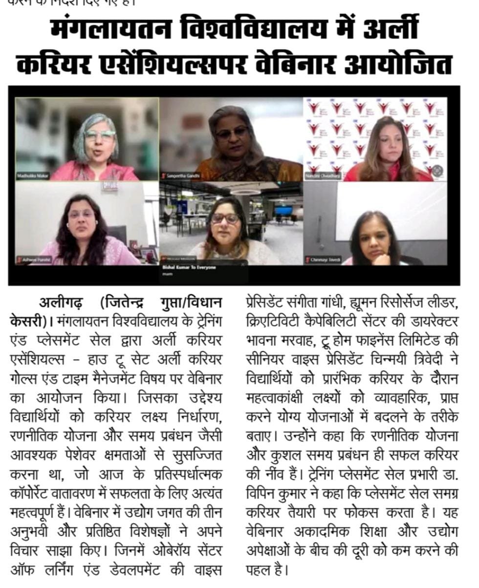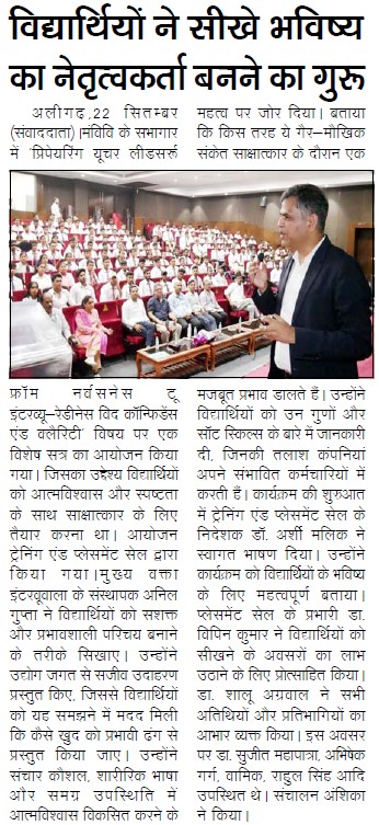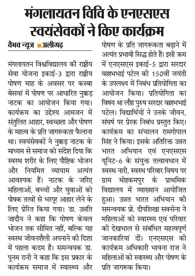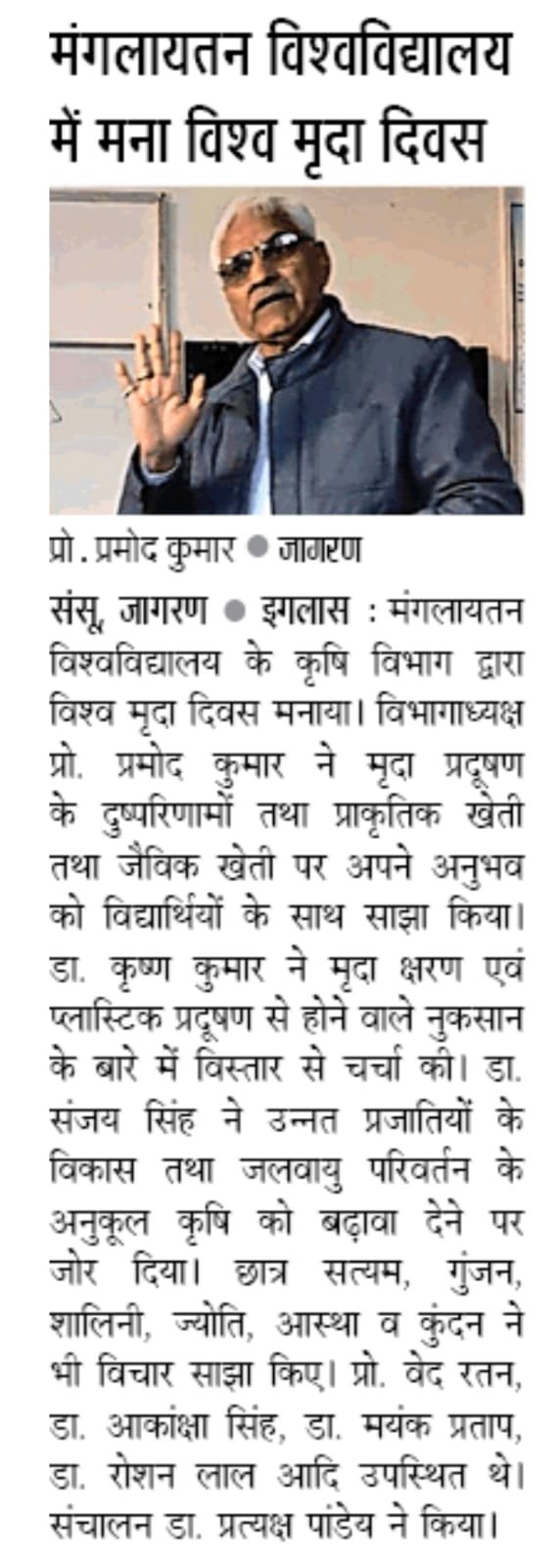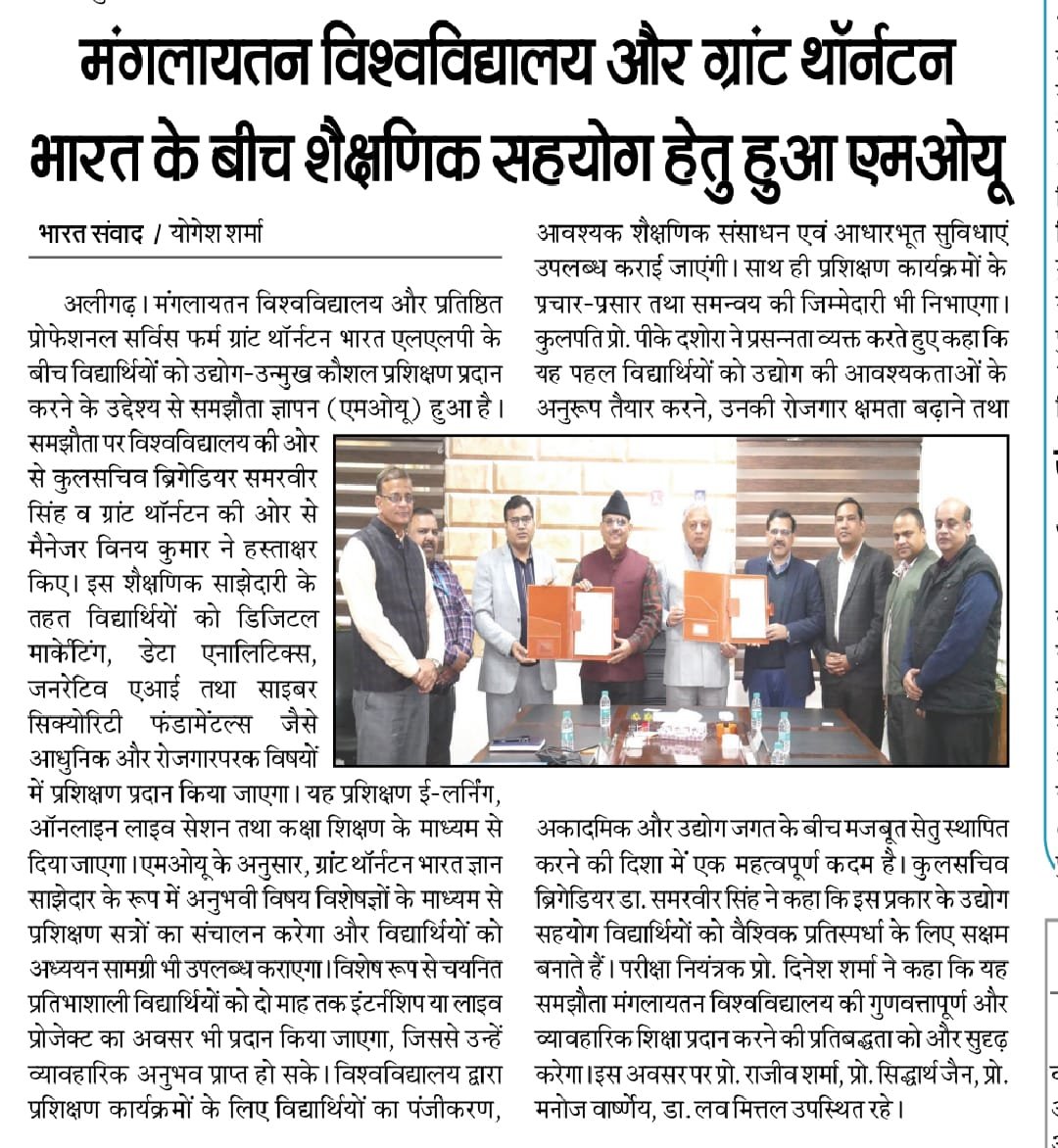 Mangalayatan University garnered significant attention in media with a feature highlighting departmental programs, community initiatives and activities. The article praised the university's commitment to academic excellence and its role in empowering academic units and their students through various skill development workshops and internships. Notably, the piece discussed the institution's efforts in promoting sustainable practices on campus, including eco-friendly initiatives that resonate with the university's mission to foster responsible citizens.This press clipping not only reflects the university's achievements but also its dedication to creating a vibrant learning environment, positioning Mangalayatan University as a cornerstone of educational development in the region. The coverage has sparked interest among prospective students and parents alike.