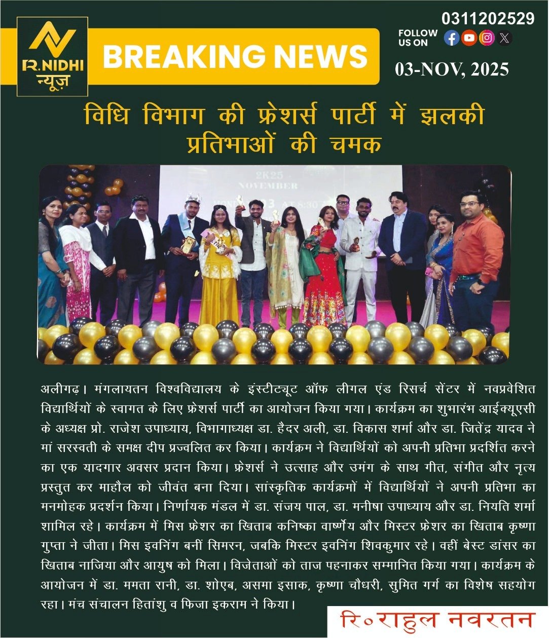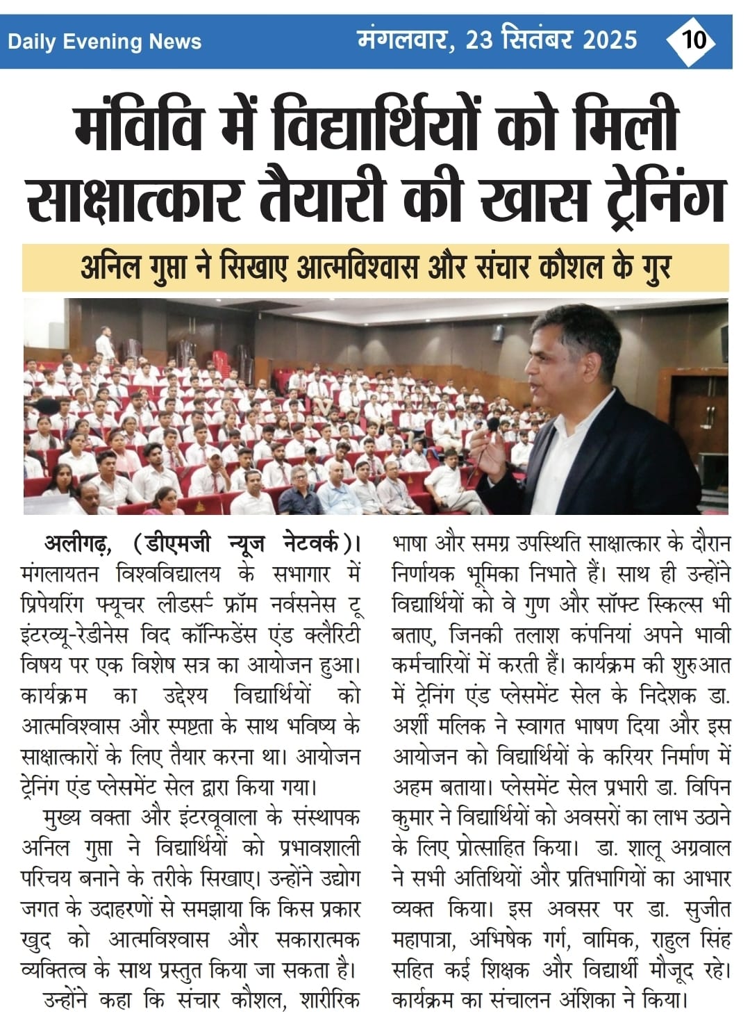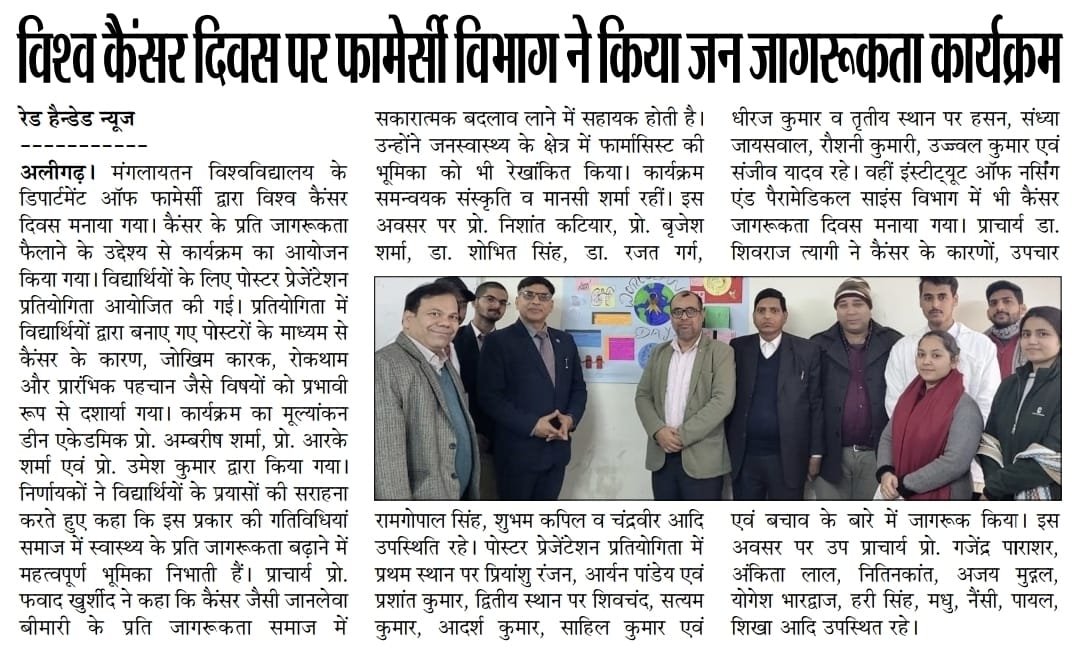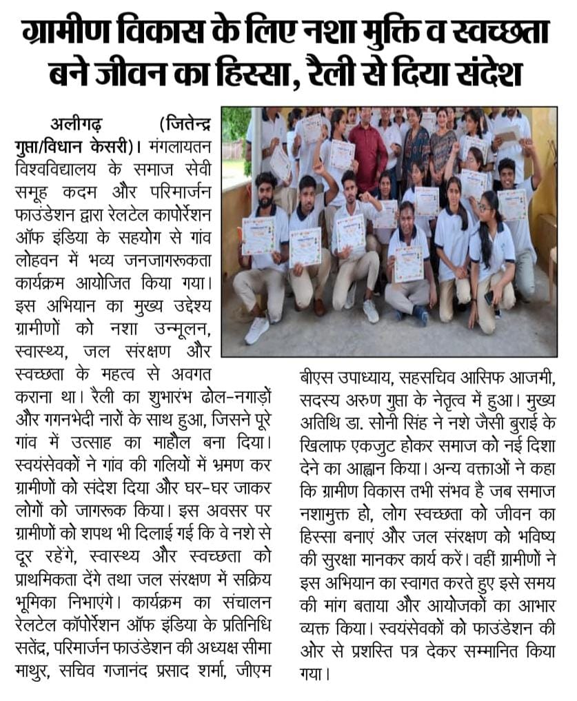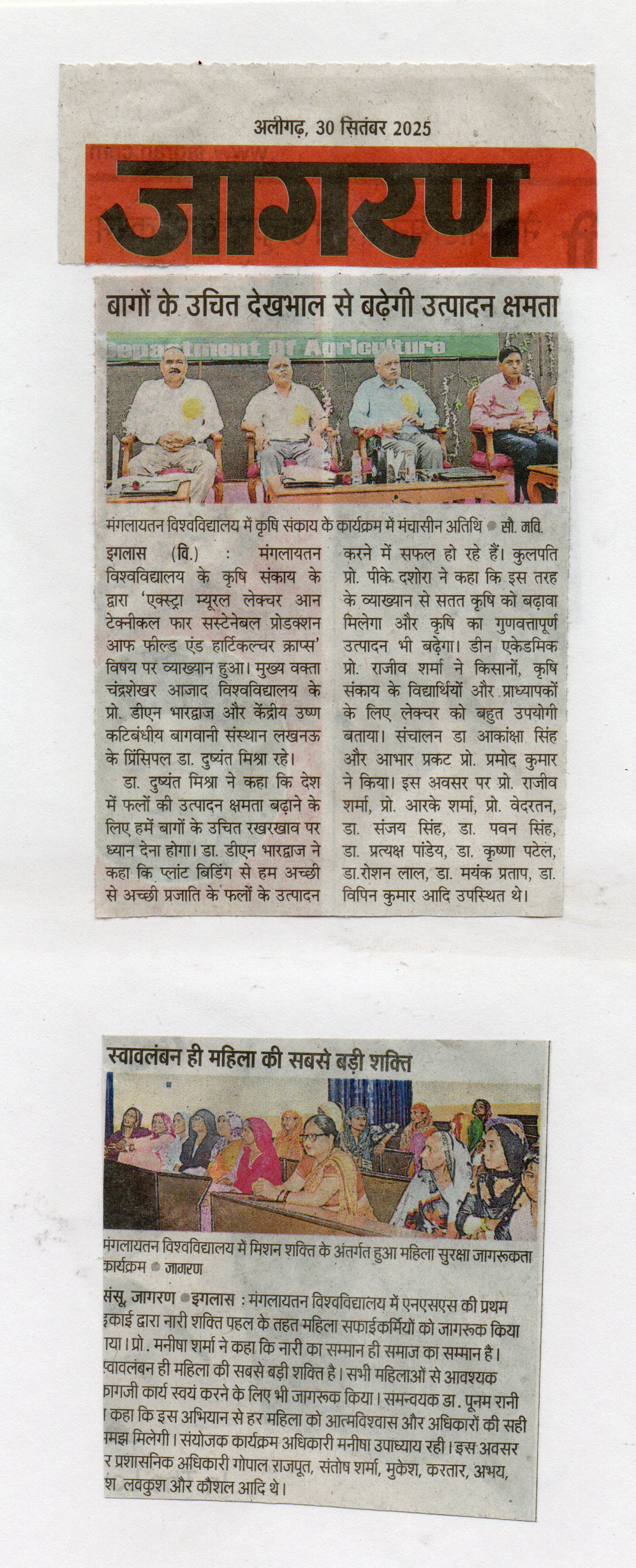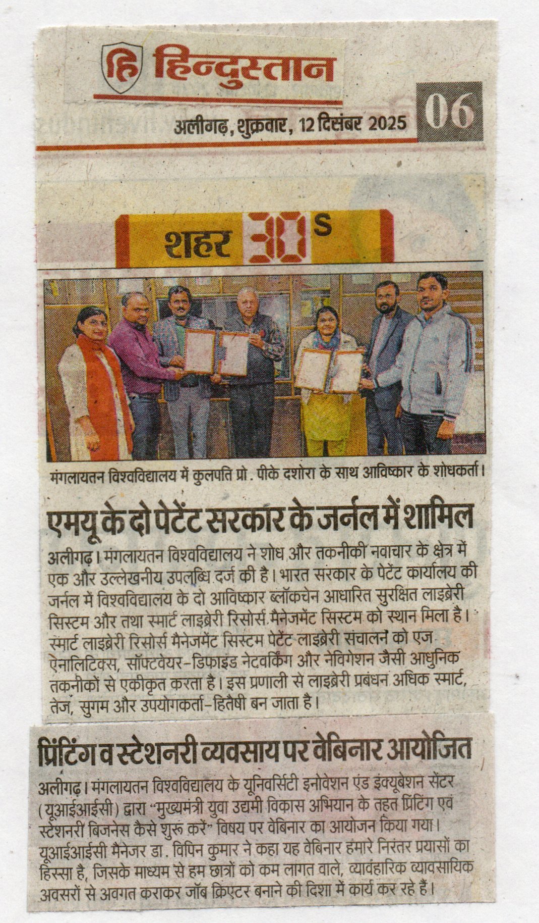 Mangalayatan University garnered significant attention in media with a feature highlighting departmental programs, community initiatives and activities. The article praised the university's commitment to academic excellence and its role in empowering academic units and their students through various skill development workshops and internships. Notably, the piece discussed the institution's efforts in promoting sustainable practices on campus, including eco-friendly initiatives that resonate with the university's mission to foster responsible citizens.This press clipping not only reflects the university's achievements but also its dedication to creating a vibrant learning environment, positioning Mangalayatan University as a cornerstone of educational development in the region. The coverage has sparked interest among prospective students and parents alike.
