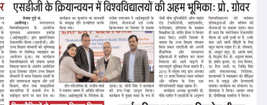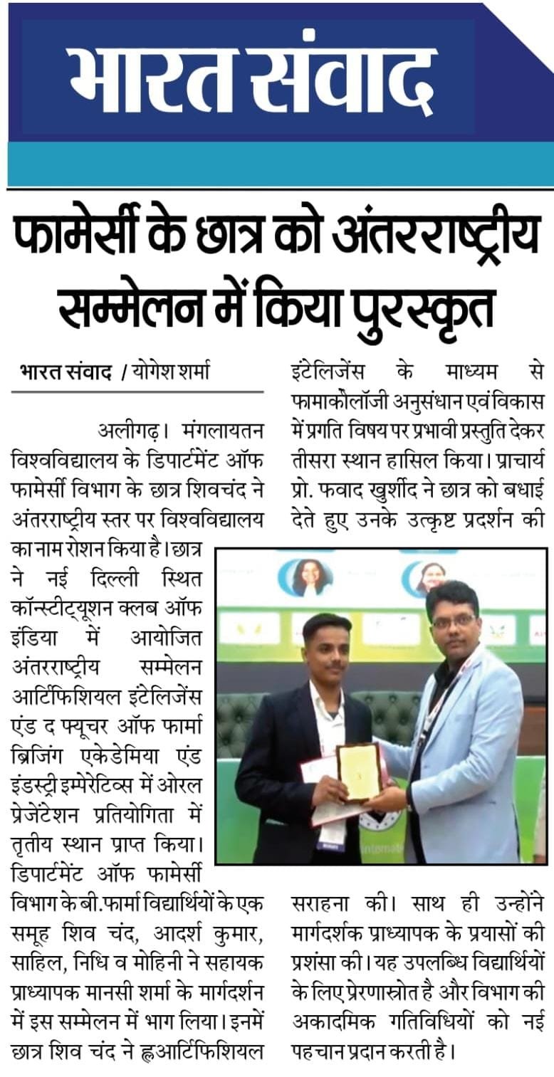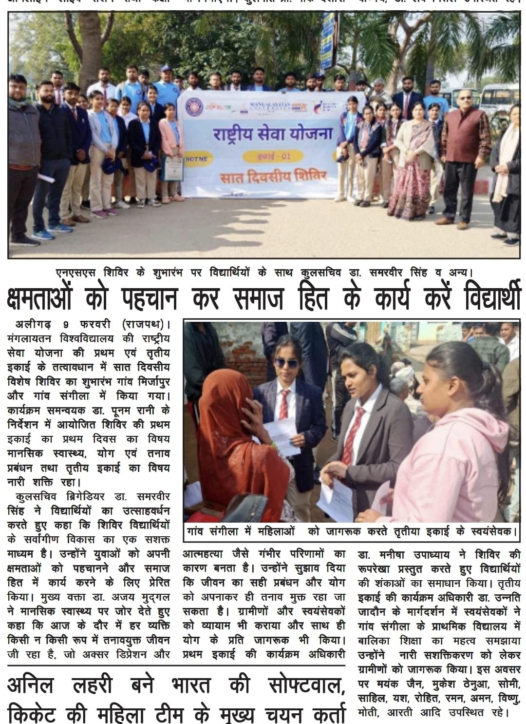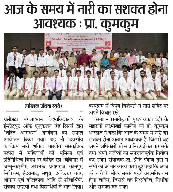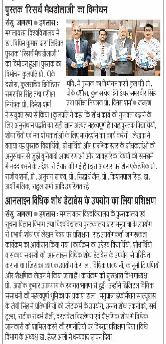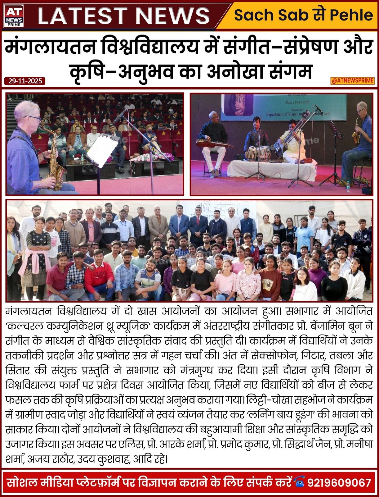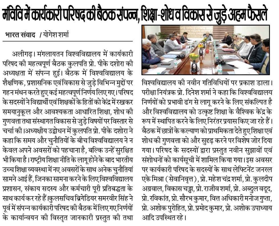 Mangalayatan University garnered significant attention in media with a feature highlighting departmental programs, community initiatives and activities. The article praised the university's commitment to academic excellence and its role in empowering academic units and their students through various skill development workshops and internships. Notably, the piece discussed the institution's efforts in promoting sustainable practices on campus, including eco-friendly initiatives that resonate with the university's mission to foster responsible citizens.This press clipping not only reflects the university's achievements but also its dedication to creating a vibrant learning environment, positioning Mangalayatan University as a cornerstone of educational development in the region. The coverage has sparked interest among prospective students and parents alike.