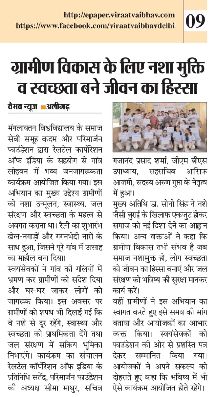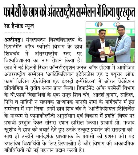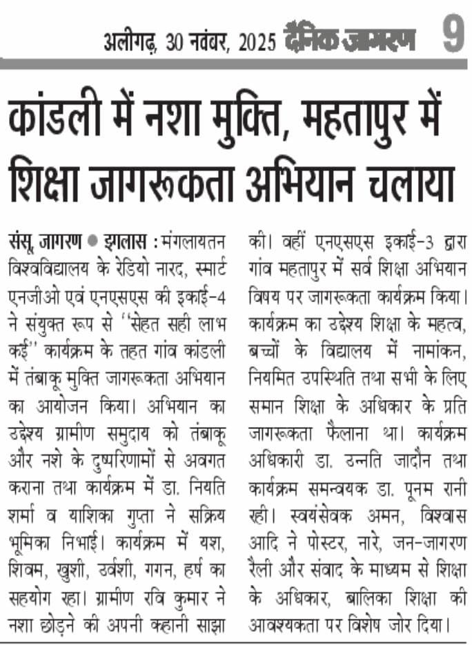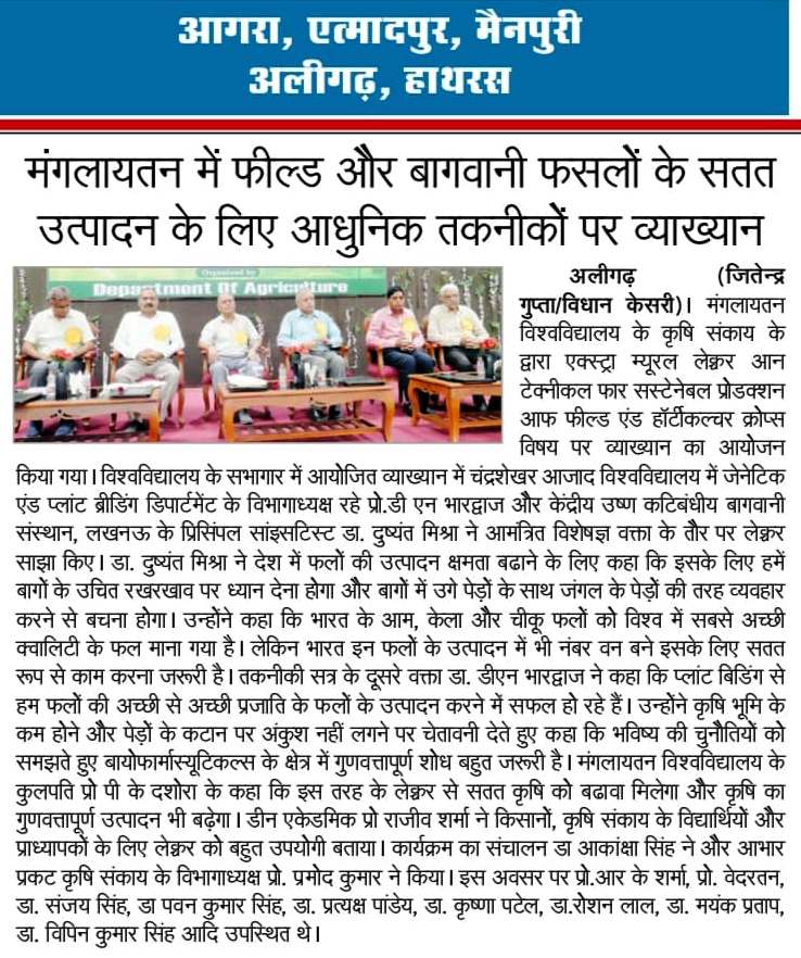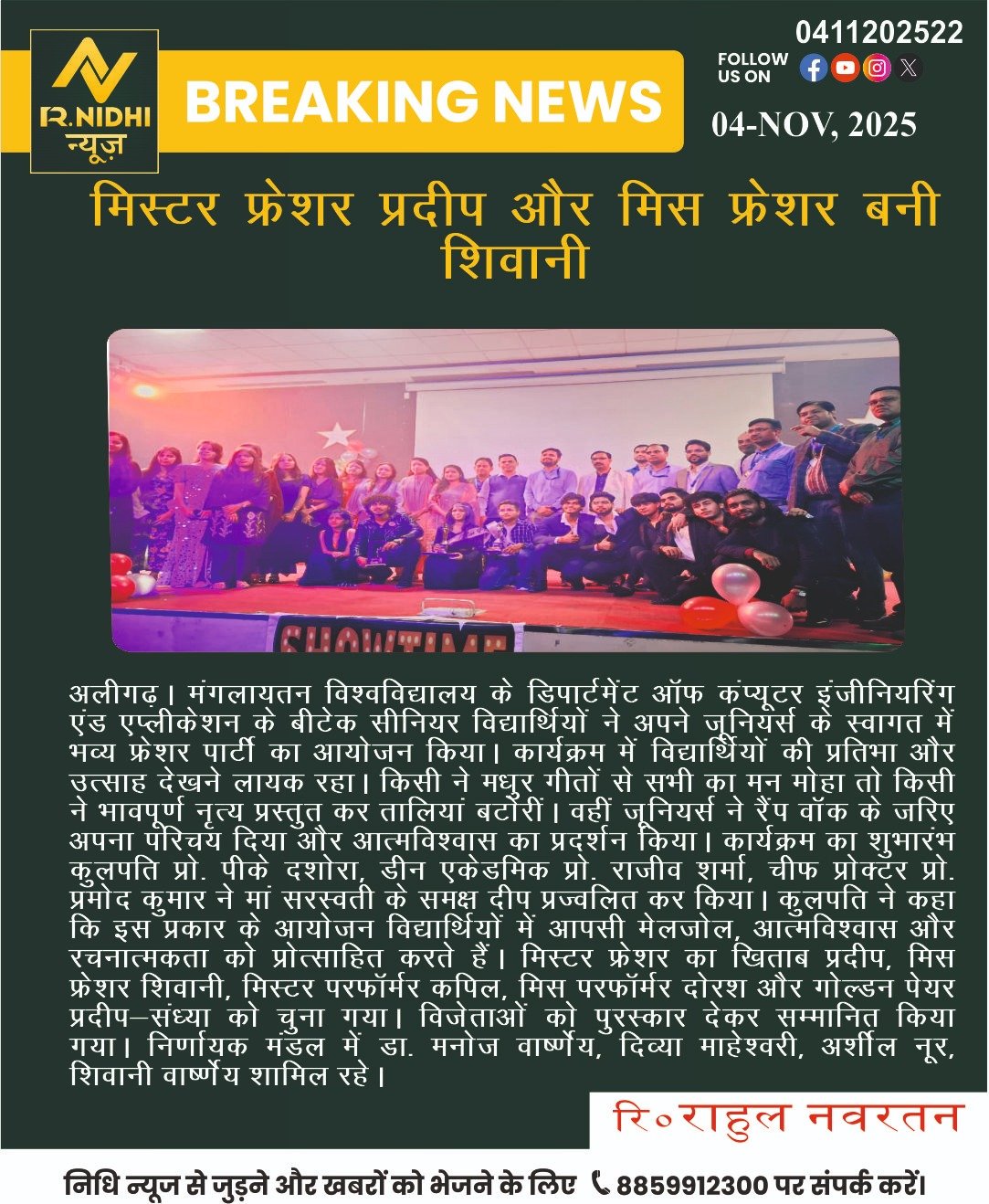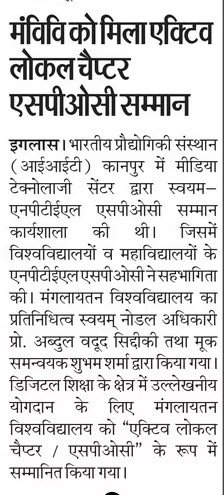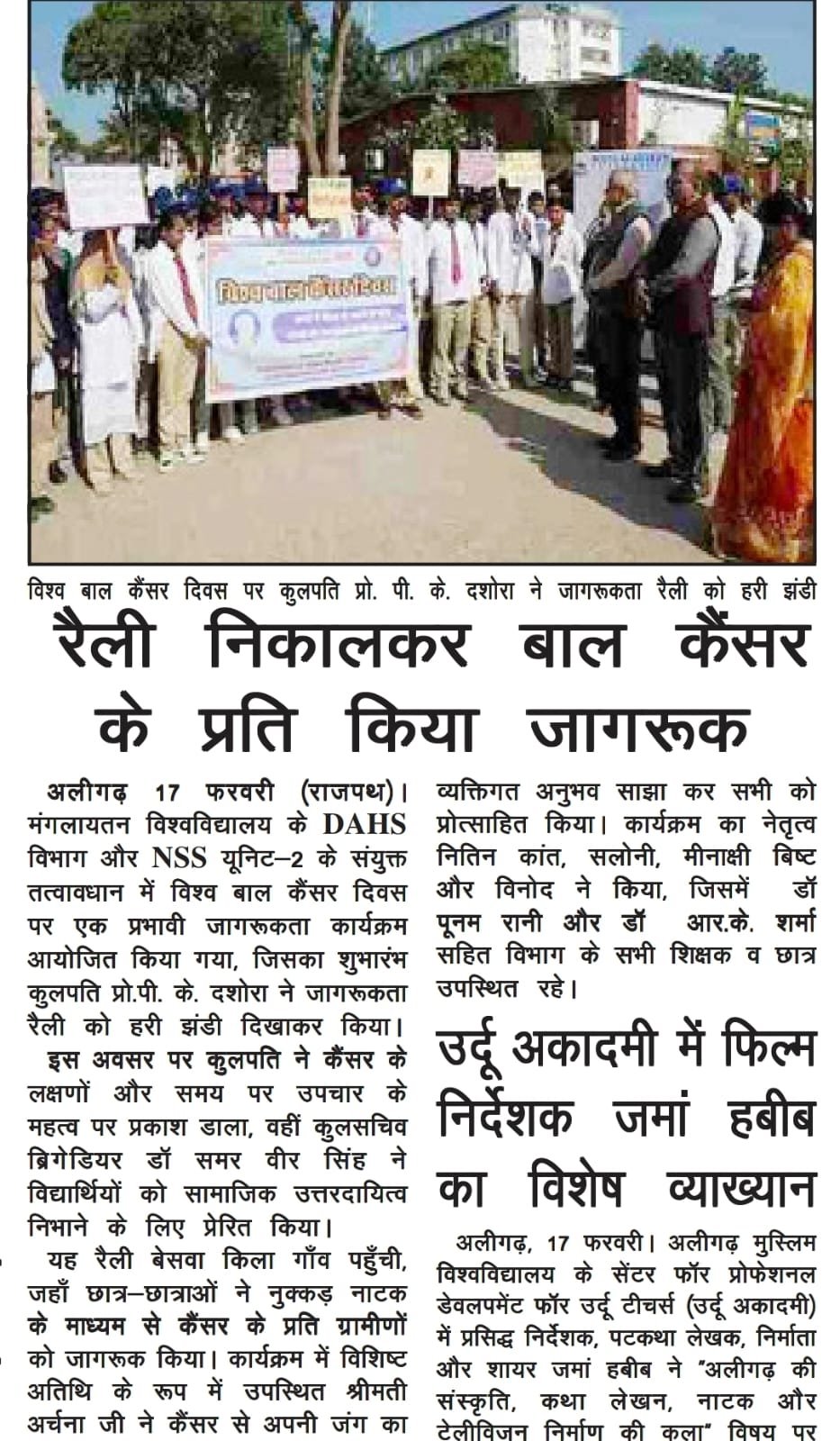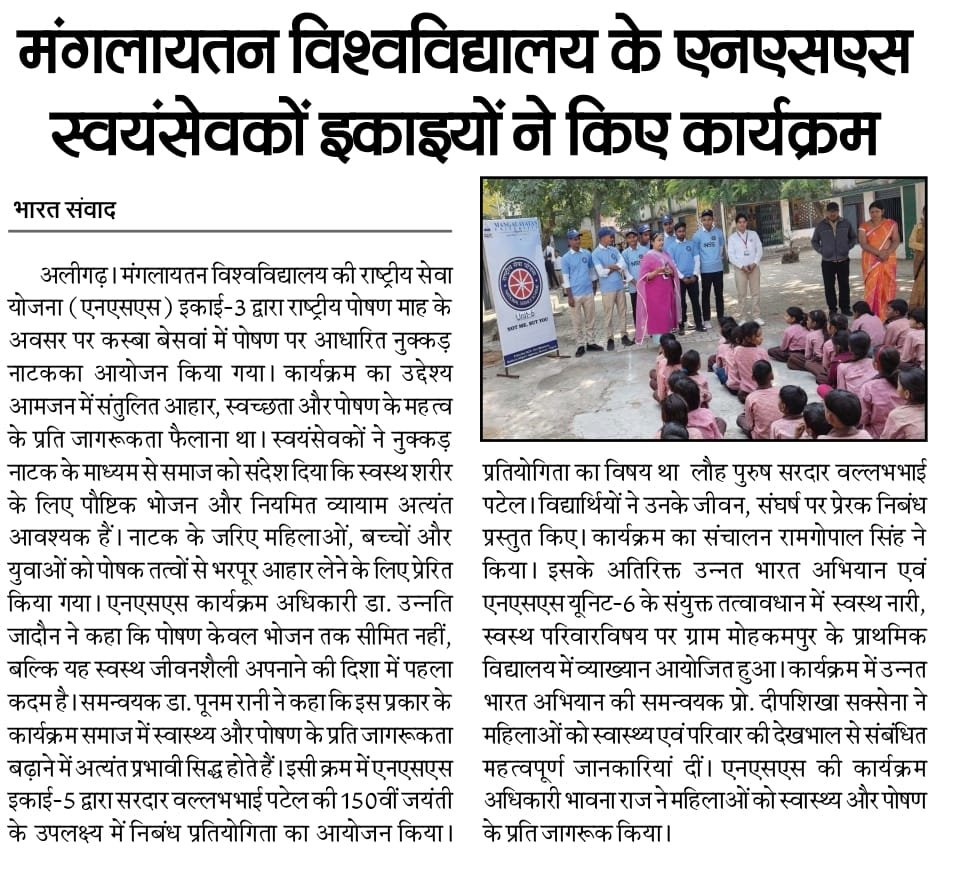Mangalayatan University garnered significant attention in media with a feature highlighting departmental programs, community initiatives and activities. The article praised the university's commitment to academic excellence and its role in empowering academic units and their students through various skill development workshops and internships. Notably, the piece discussed the institution's efforts in promoting sustainable practices on campus, including eco-friendly initiatives that resonate with the university's mission to foster responsible citizens.This press clipping not only reflects the university's achievements but also its dedication to creating a vibrant learning environment, positioning Mangalayatan University as a cornerstone of educational development in the region. The coverage has sparked interest among prospective students and parents alike.