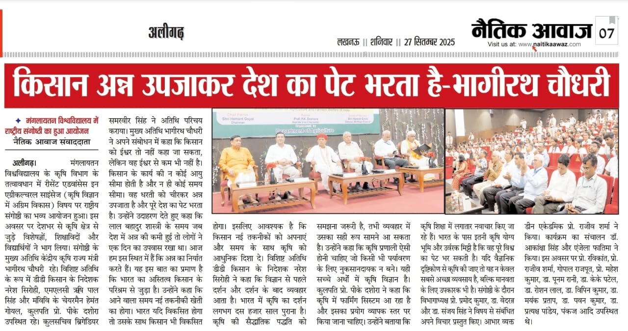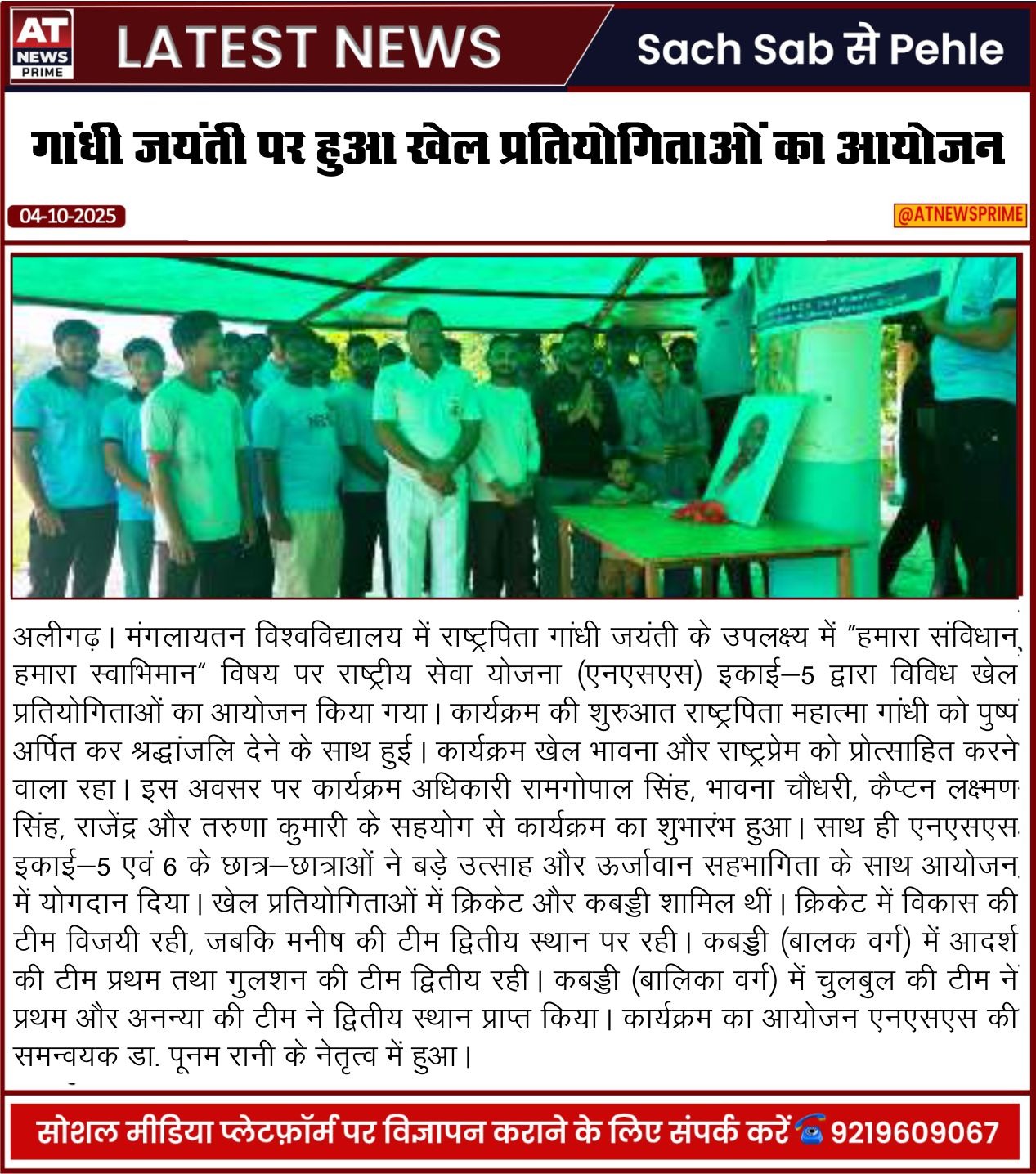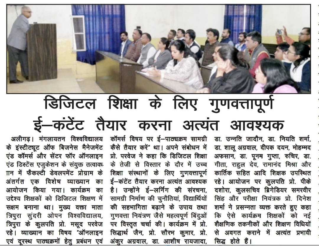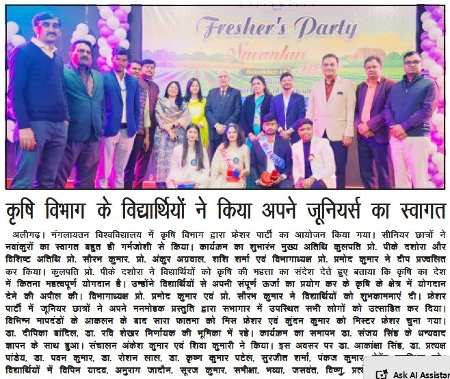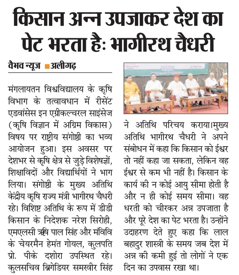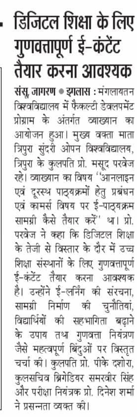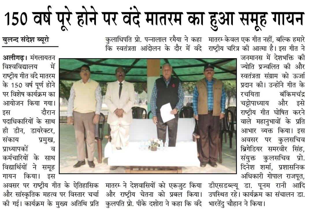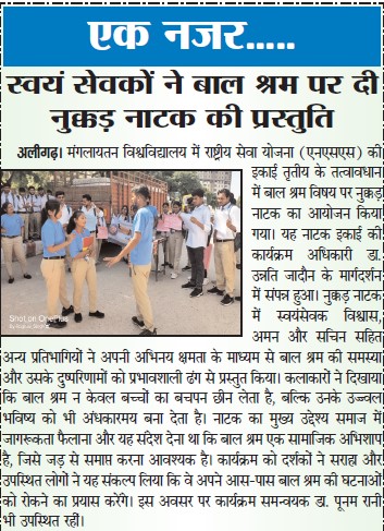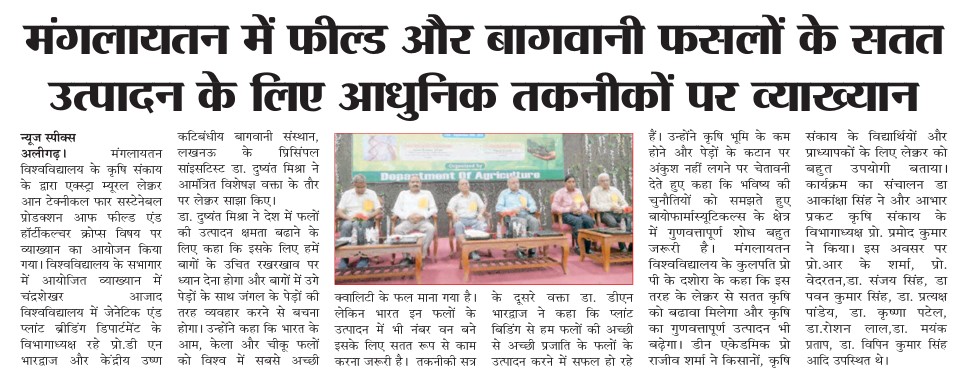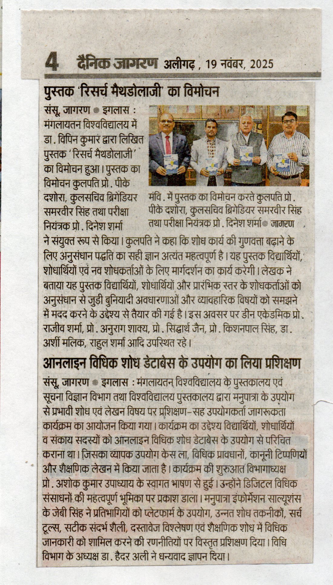 Mangalayatan University garnered significant attention in media with a feature highlighting departmental programs, community initiatives and activities. The article praised the university's commitment to academic excellence and its role in empowering academic units and their students through various skill development workshops and internships. Notably, the piece discussed the institution's efforts in promoting sustainable practices on campus, including eco-friendly initiatives that resonate with the university's mission to foster responsible citizens.This press clipping not only reflects the university's achievements but also its dedication to creating a vibrant learning environment, positioning Mangalayatan University as a cornerstone of educational development in the region. The coverage has sparked interest among prospective students and parents alike.