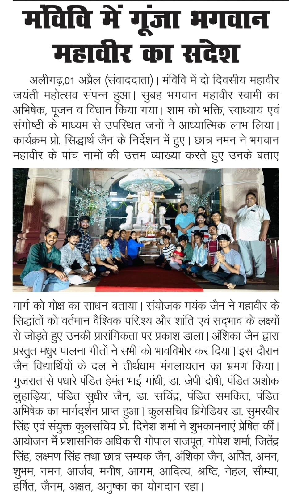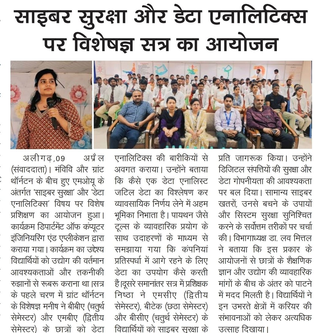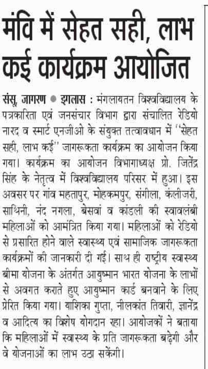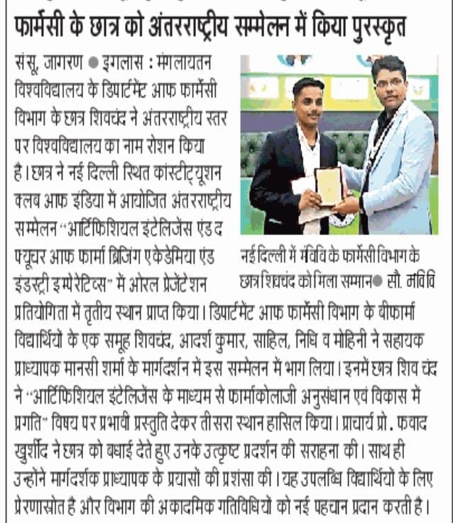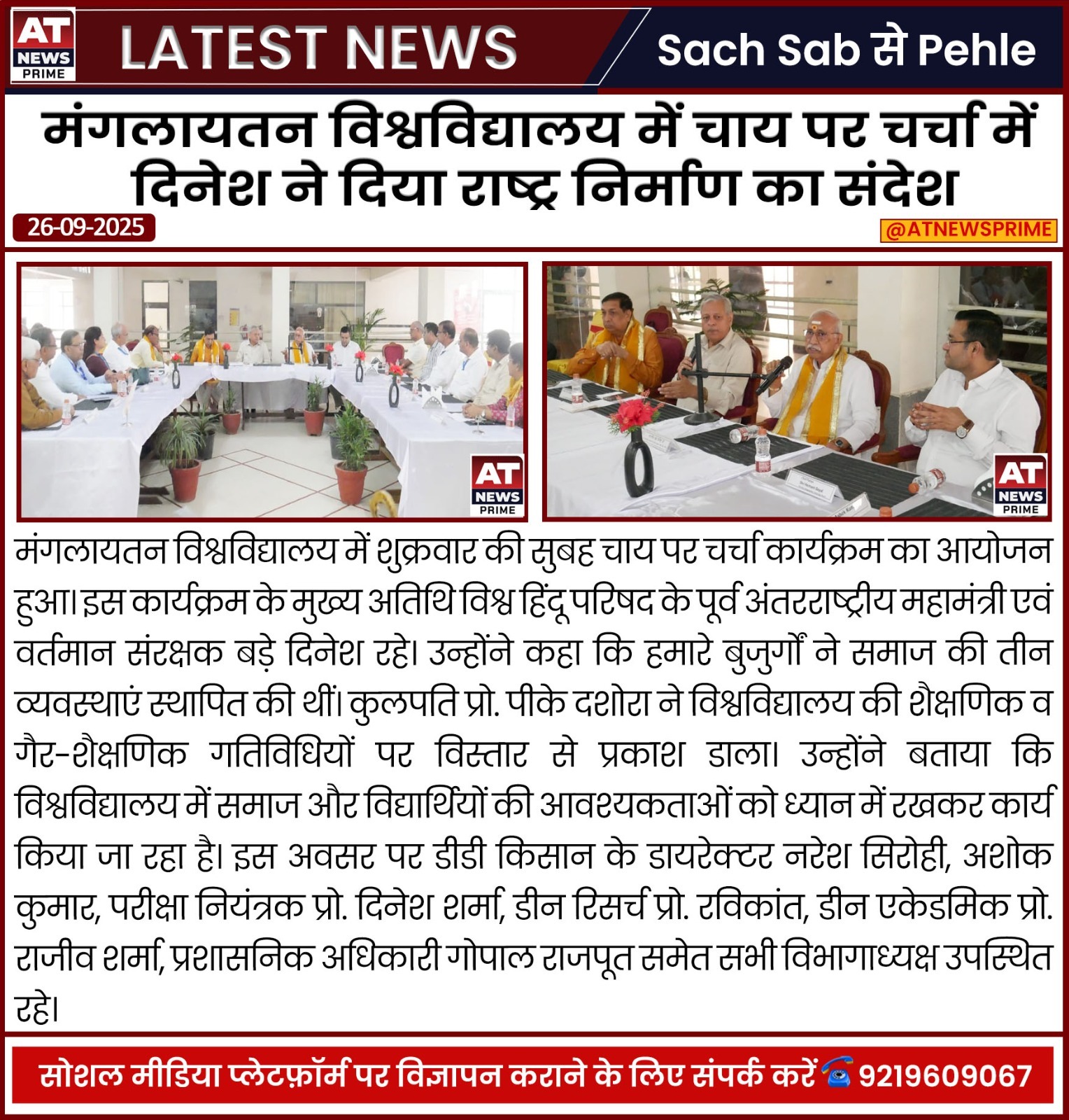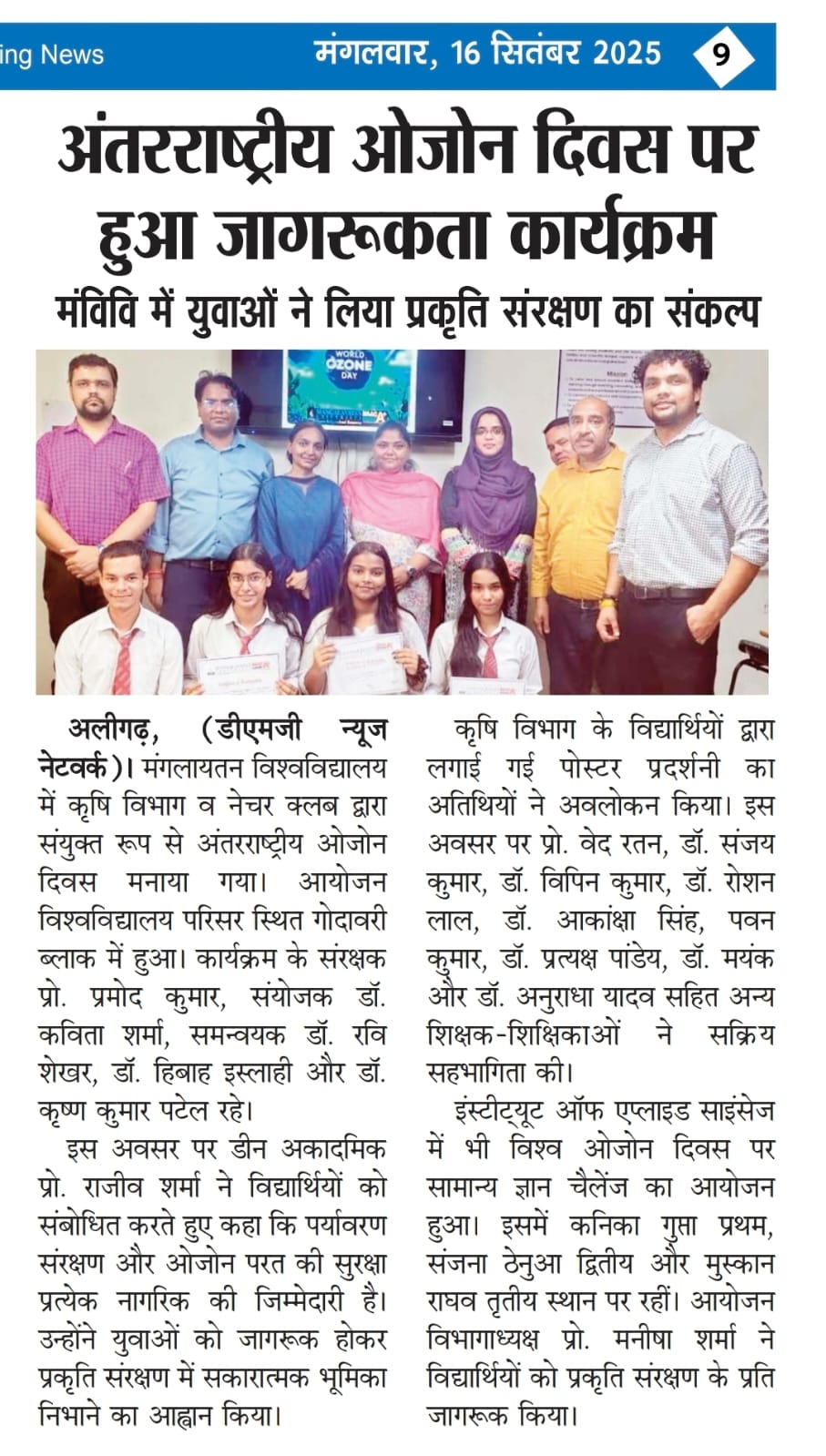 Mangalayatan University garnered significant attention in media with a feature highlighting departmental programs, community initiatives and activities. The article praised the university's commitment to academic excellence and its role in empowering academic units and their students through various skill development workshops and internships. Notably, the piece discussed the institution's efforts in promoting sustainable practices on campus, including eco-friendly initiatives that resonate with the university's mission to foster responsible citizens.This press clipping not only reflects the university's achievements but also its dedication to creating a vibrant learning environment, positioning Mangalayatan University as a cornerstone of educational development in the region. The coverage has sparked interest among prospective students and parents alike.