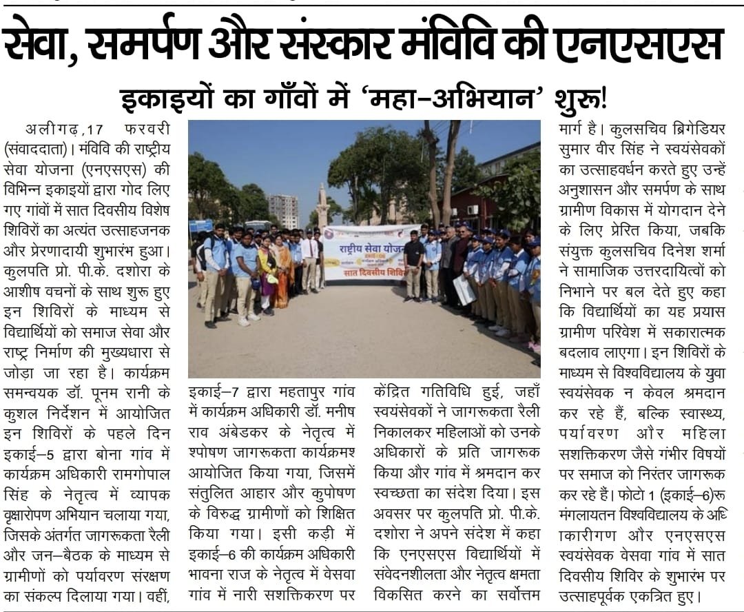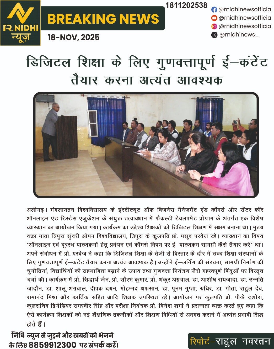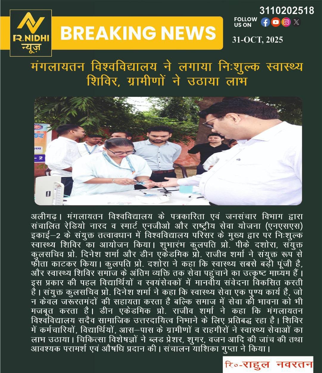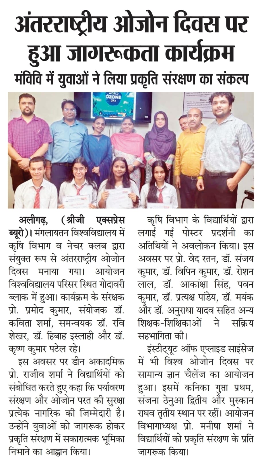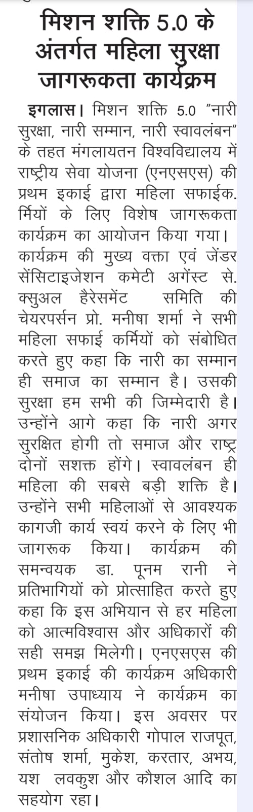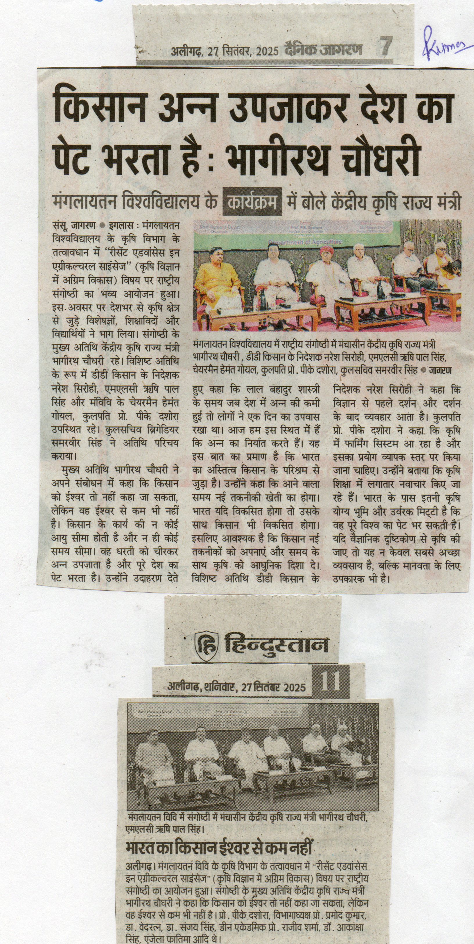 Mangalayatan University garnered significant attention in media with a feature highlighting departmental programs, community initiatives and activities. The article praised the university's commitment to academic excellence and its role in empowering academic units and their students through various skill development workshops and internships. Notably, the piece discussed the institution's efforts in promoting sustainable practices on campus, including eco-friendly initiatives that resonate with the university's mission to foster responsible citizens.This press clipping not only reflects the university's achievements but also its dedication to creating a vibrant learning environment, positioning Mangalayatan University as a cornerstone of educational development in the region. The coverage has sparked interest among prospective students and parents alike.