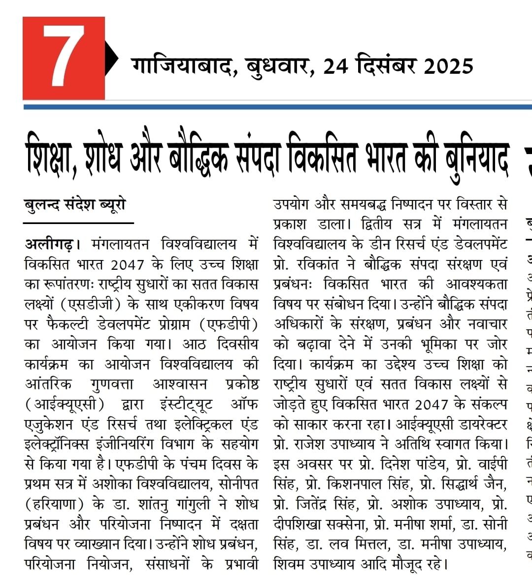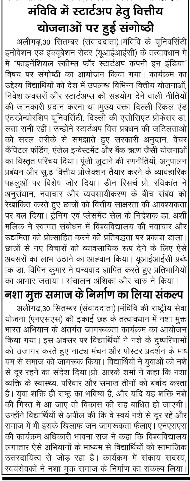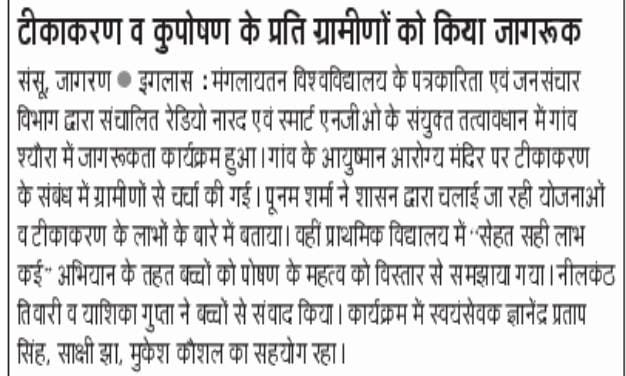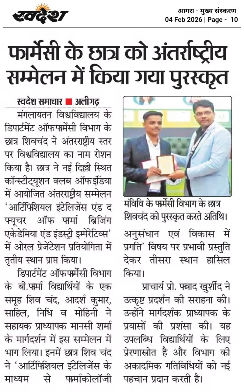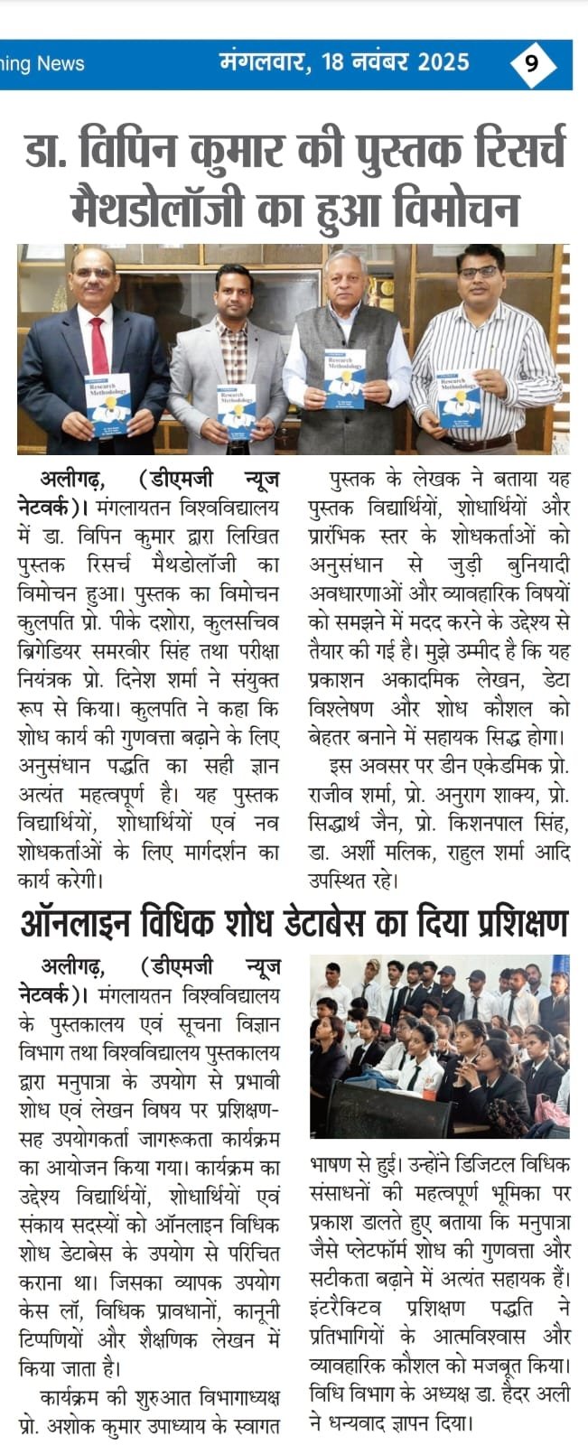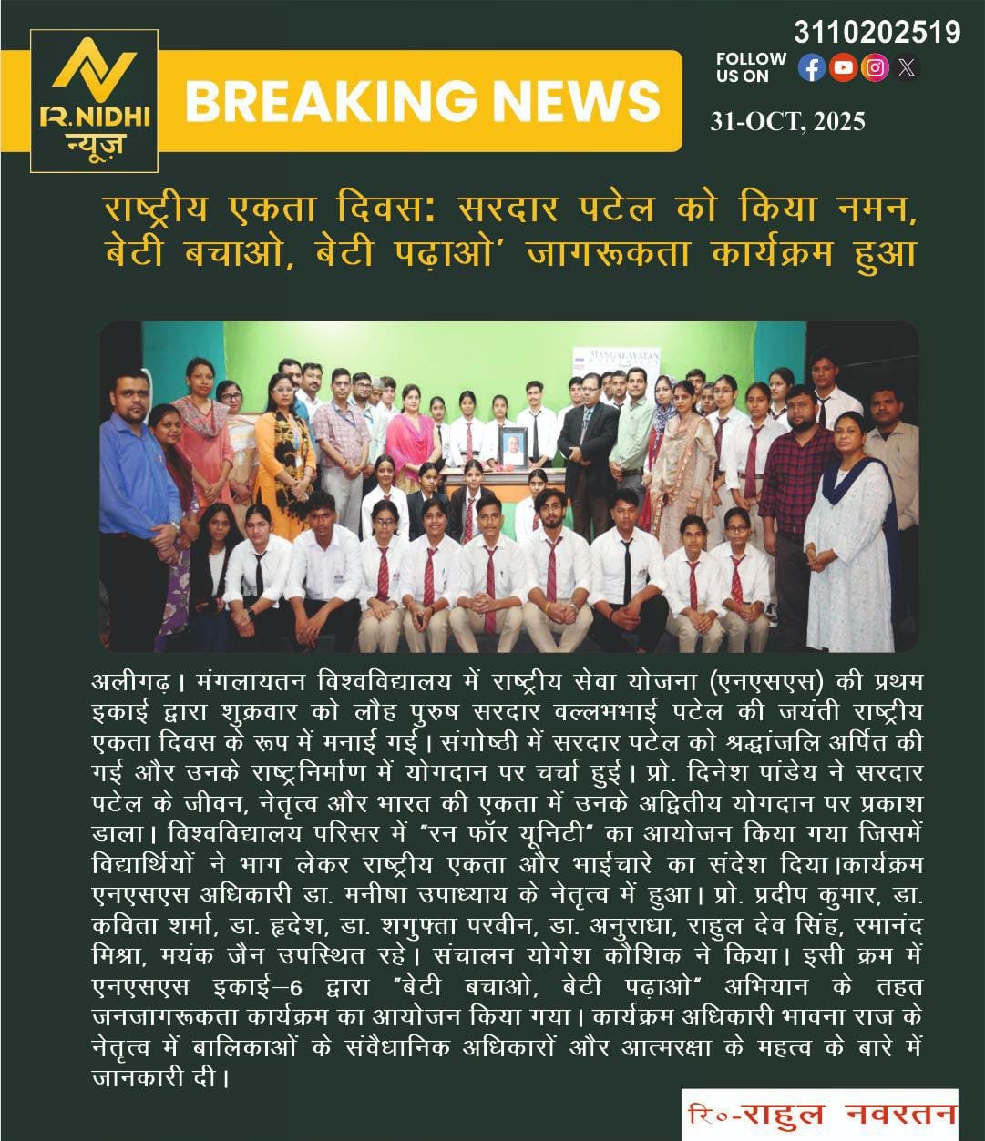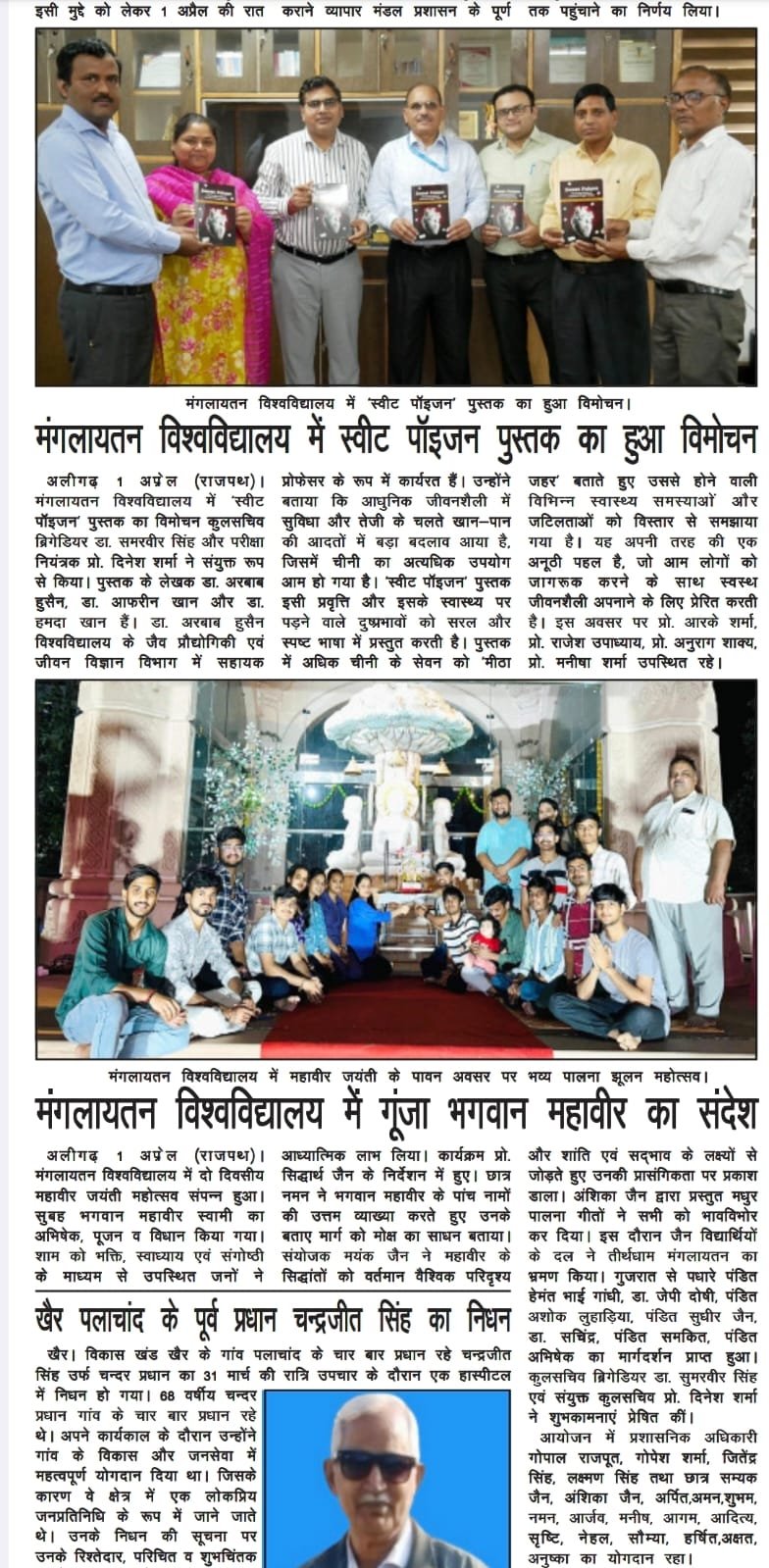 Mangalayatan University garnered significant attention in media with a feature highlighting departmental programs, community initiatives and activities. The article praised the university's commitment to academic excellence and its role in empowering academic units and their students through various skill development workshops and internships. Notably, the piece discussed the institution's efforts in promoting sustainable practices on campus, including eco-friendly initiatives that resonate with the university's mission to foster responsible citizens.This press clipping not only reflects the university's achievements but also its dedication to creating a vibrant learning environment, positioning Mangalayatan University as a cornerstone of educational development in the region. The coverage has sparked interest among prospective students and parents alike.