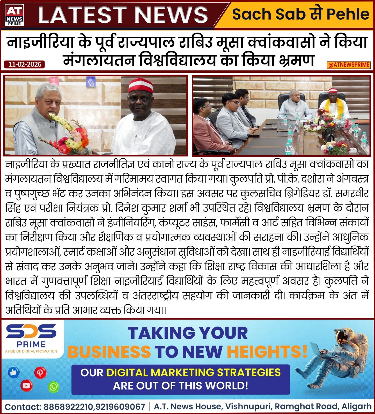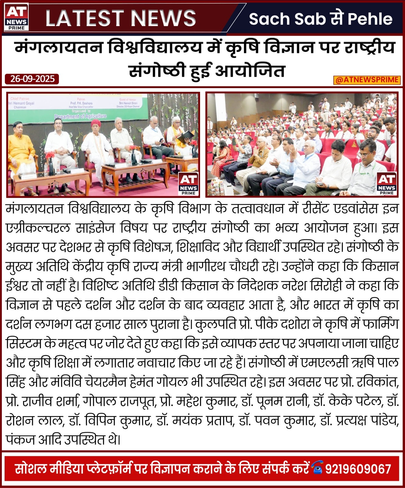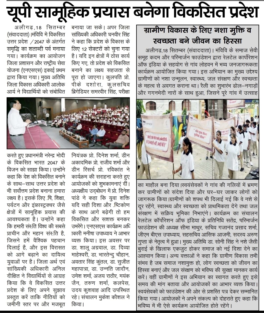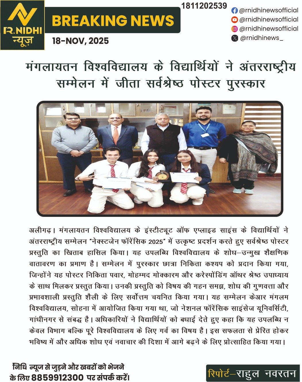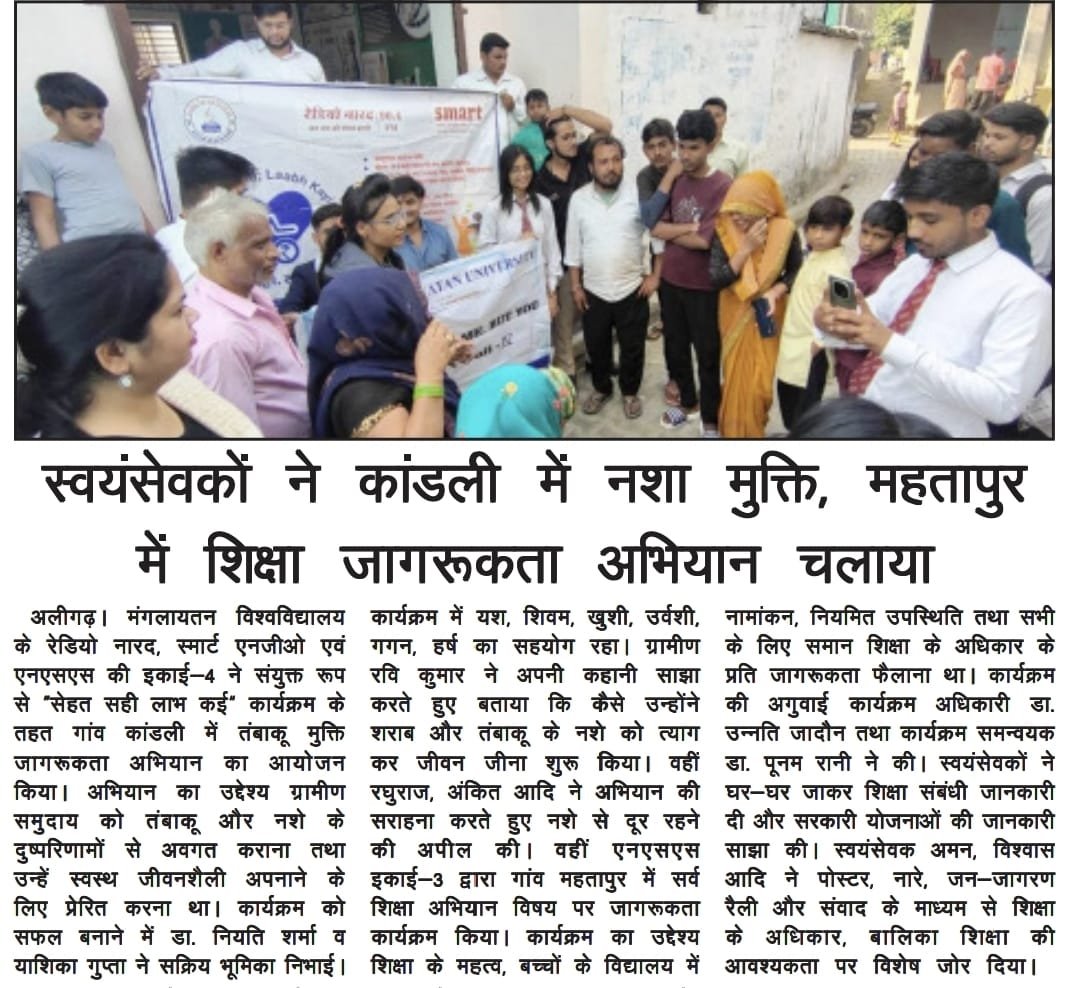 Mangalayatan University garnered significant attention in media with a feature highlighting departmental programs, community initiatives and activities. The article praised the university's commitment to academic excellence and its role in empowering academic units and their students through various skill development workshops and internships. Notably, the piece discussed the institution's efforts in promoting sustainable practices on campus, including eco-friendly initiatives that resonate with the university's mission to foster responsible citizens.This press clipping not only reflects the university's achievements but also its dedication to creating a vibrant learning environment, positioning Mangalayatan University as a cornerstone of educational development in the region. The coverage has sparked interest among prospective students and parents alike.