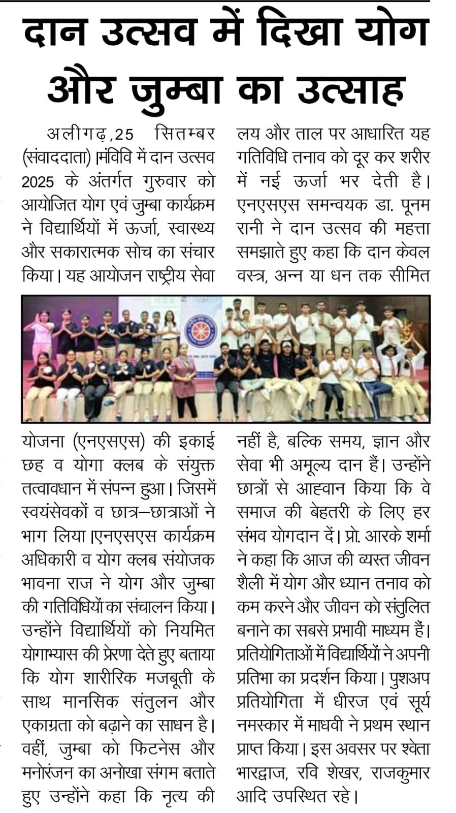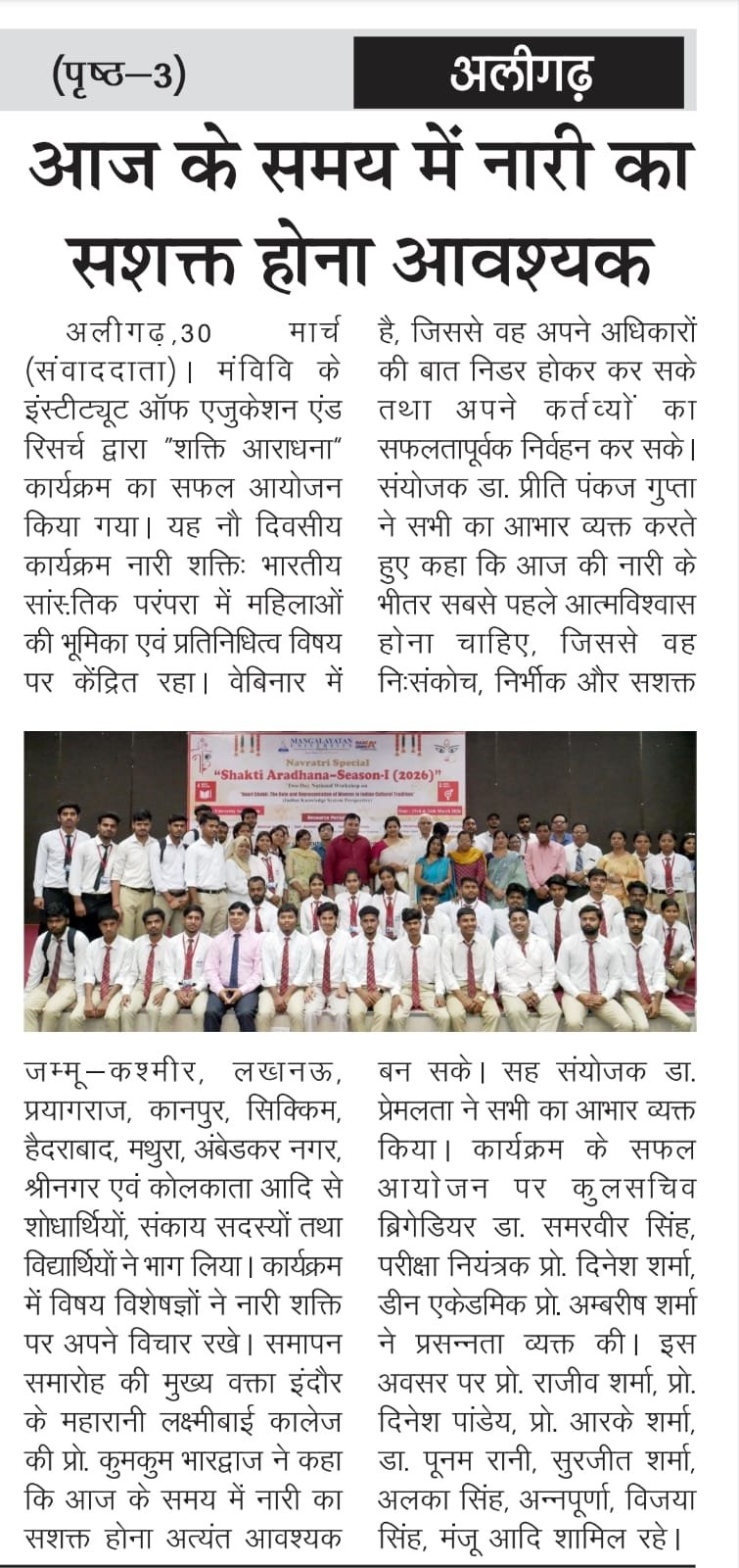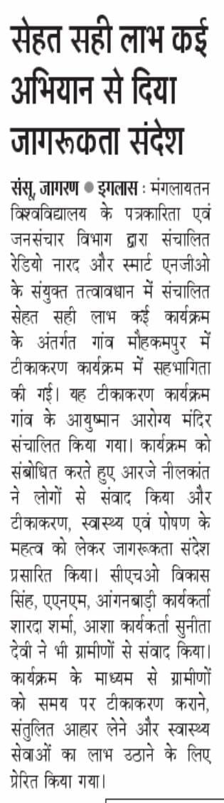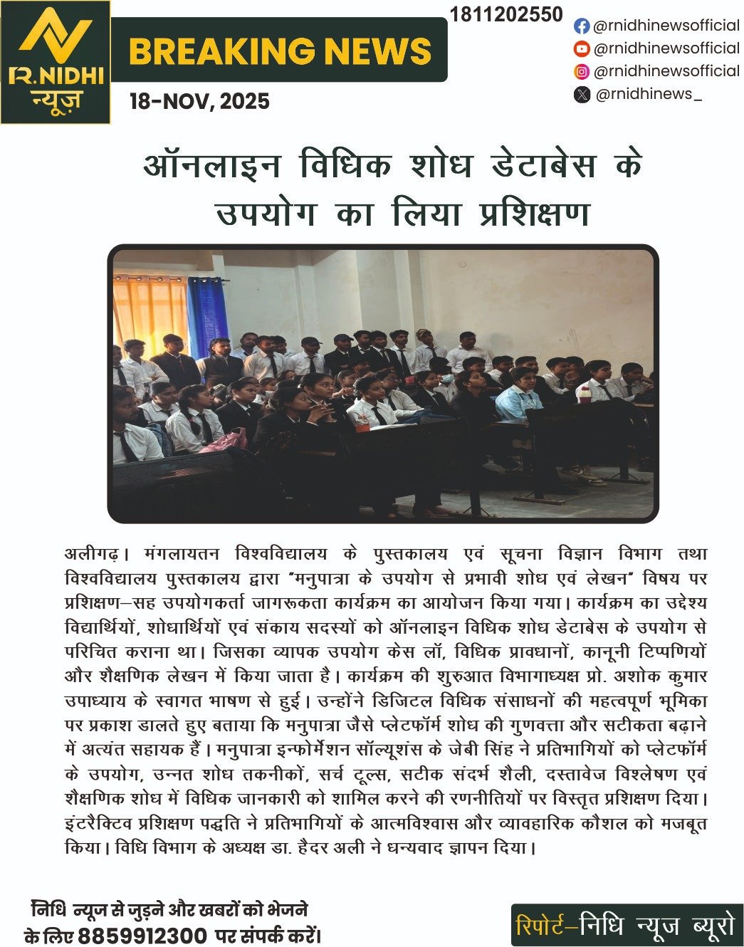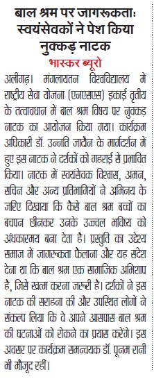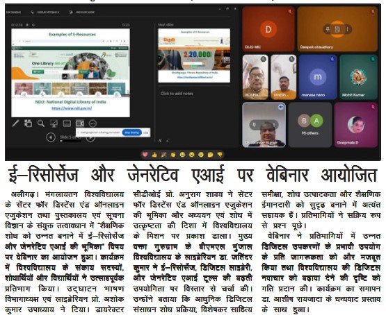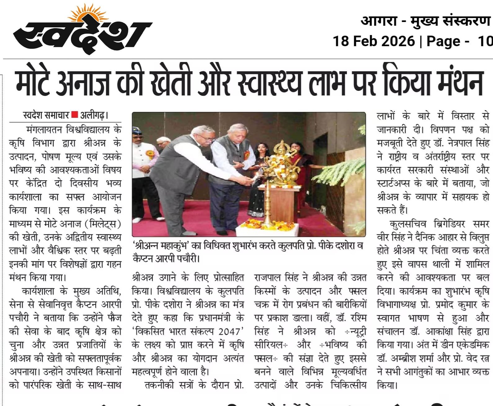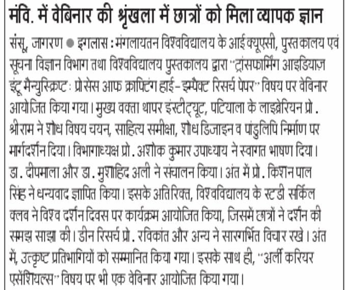 Mangalayatan University garnered significant attention in media with a feature highlighting departmental programs, community initiatives and activities. The article praised the university's commitment to academic excellence and its role in empowering academic units and their students through various skill development workshops and internships. Notably, the piece discussed the institution's efforts in promoting sustainable practices on campus, including eco-friendly initiatives that resonate with the university's mission to foster responsible citizens.This press clipping not only reflects the university's achievements but also its dedication to creating a vibrant learning environment, positioning Mangalayatan University as a cornerstone of educational development in the region. The coverage has sparked interest among prospective students and parents alike.